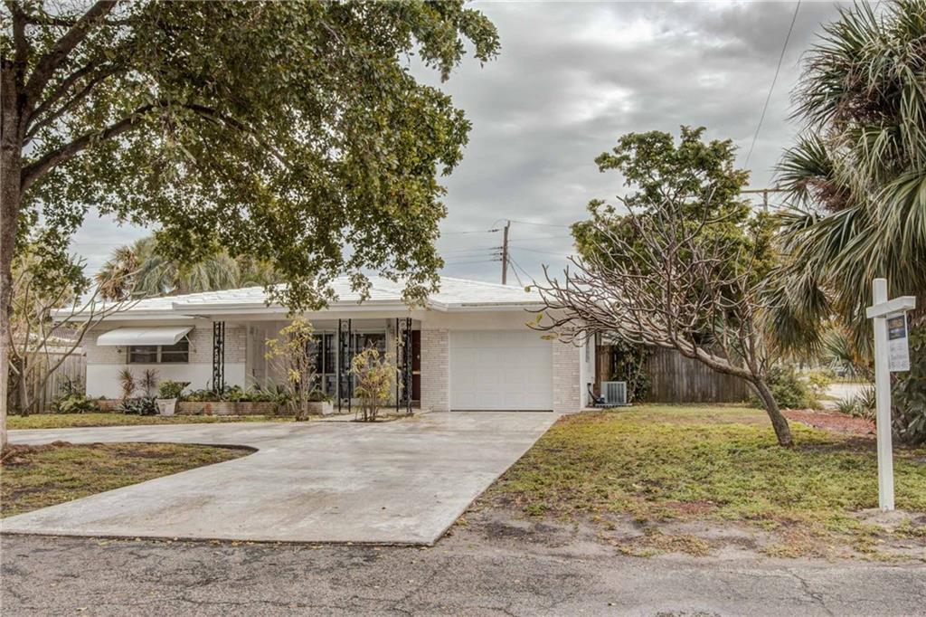 Location, Location, Location! This charming 2BD/2BA home sits on a large corner lot East of US1 and just minutes to the BEACH. The home features a spacious open living area with lots of windows & natural light and a bonus room/dining/office off the kitchen. Brand New Tile Roof will be put on by Seller prior to closing. Patio is ready for a BBQ grill and the fully fenced yard is perfect for pets. Plenty of parking with one car garage and a circular driveway. Walk to shopping, dining and even the beach which is just 15 minutes walking distance. No HOA.