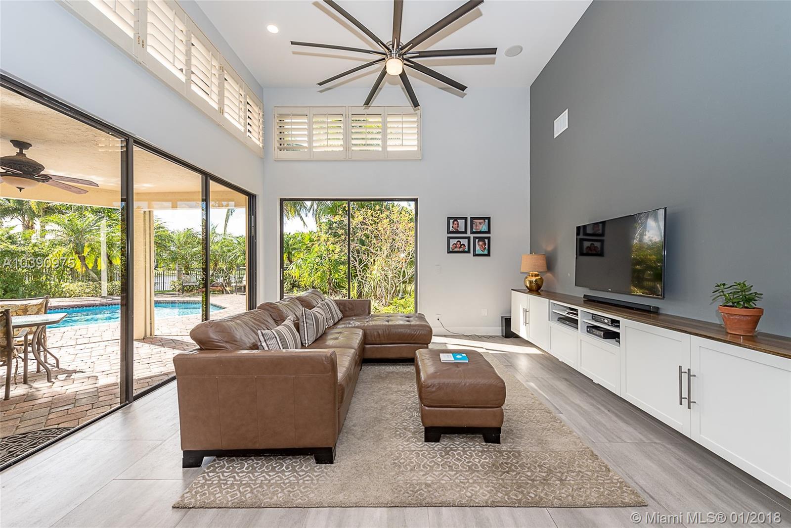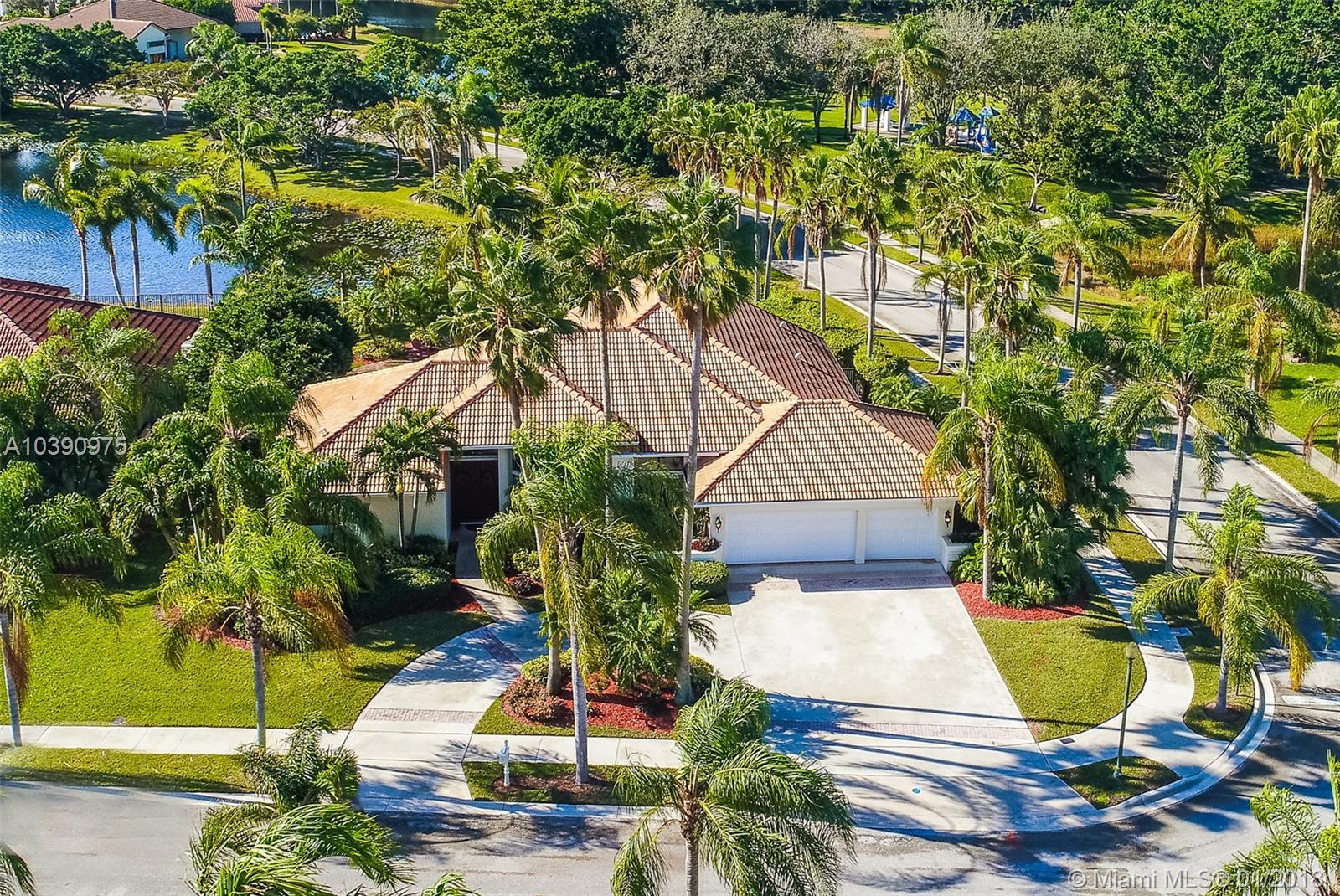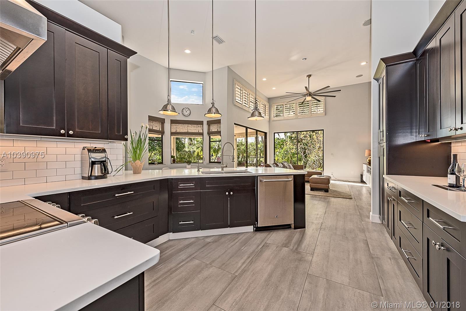 Impeccably remodeled contemporary 4 bedroom, 3 bathroom pool & lakefront home in exclusive Palm Island, on a large 19,000+ SF corner lot. Over $100K in upgrades, including all-new roof, AC, Washer/Dryer, Porcelain Italian tile floors, completely remodeled kitchen with beautiful quartz countertops & stainless steel appliances. Gorgeous landscaping with palms providing refreshing pool-side shade & privacy. Master bedroom with Brazilian hardwood floors, overlooking pool area. High ceilings with new fans, LED lighting, pendants and chandeliers. Custom entertainment center in family room. Freshly painted interior. 3-car garage and circular driveway. Guard gated community with dual access to A+ schools, parks and shopping. Ready for quick move-in; don’t miss this gorgeous property.