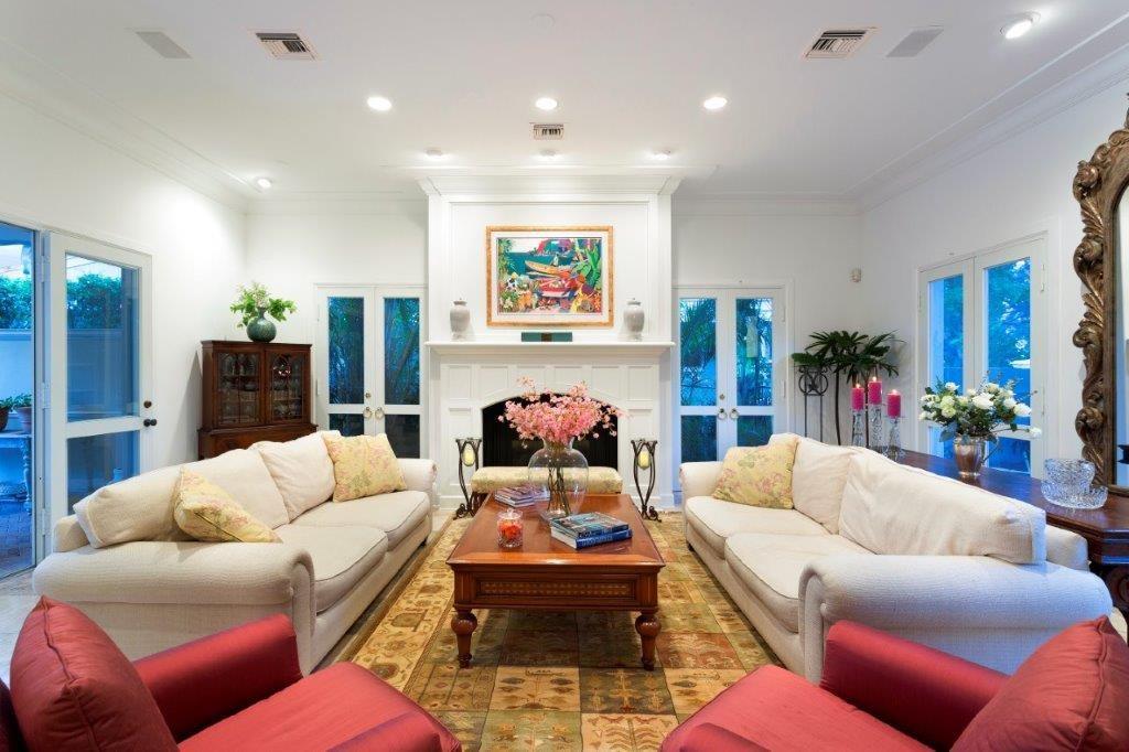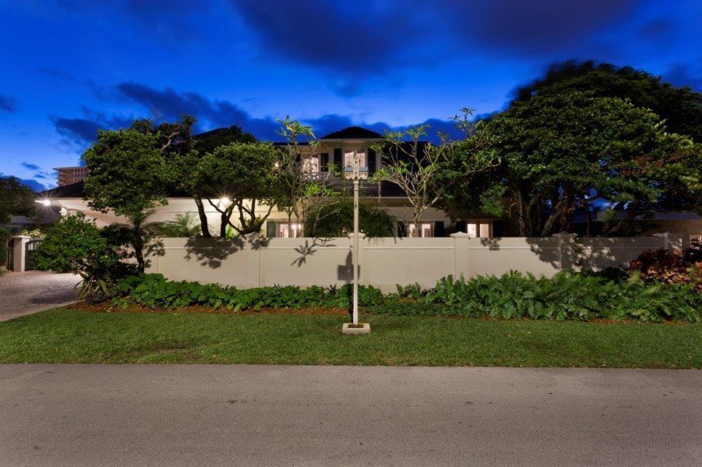 Exceptional Palm Beach Inspired Walled Estate in Gated Sunrise Intracoastal Community. Foyer entry, formal dining room, formal living room with fireplace, family room adjacent to eat in kitchen with breakfast area opens to covered sitting area overlooking pool, perfect for entertaining. Grand staircase opens to loft style room, large master suite with sitting area, 3 additional bedroom one with bath en suite, 2 bay garage & guest house with cabana bath. Pool & large fenced back yard. Bayview Elementary.