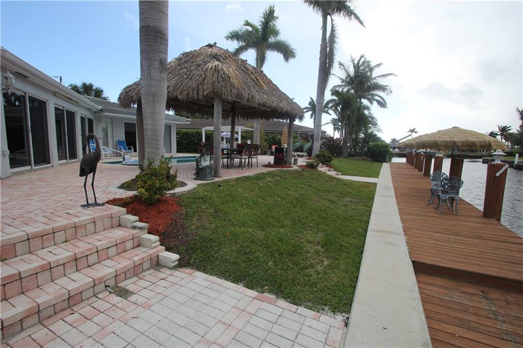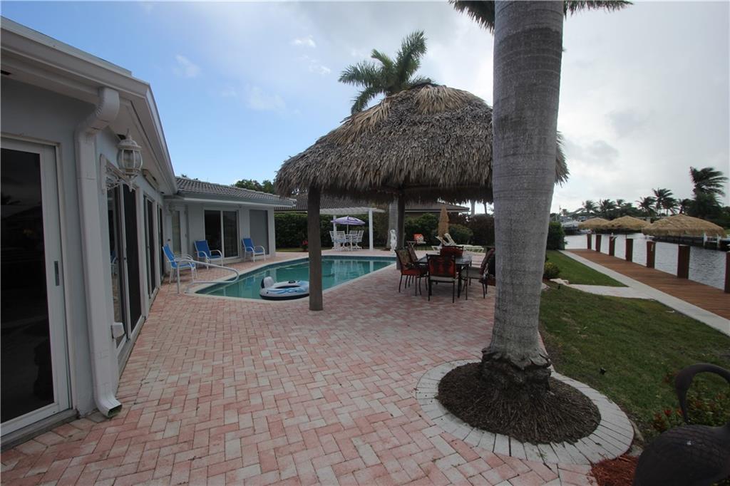 WOW! 136' OF WATERFRONT WITH ONLY 1 FIXED BRDIGE WITH HIGH CLEARANCE FOR YOUR BOAT. THIS 3 BEDROOM 2.5 BATH HOME IS COMPLETELY UPDATED. NEW KITCHEN WITH GRANITE COUNTERS, STAINLESS STEEL APPLIACNES AND NEW TILE THROUGHOUT LIVING AREAS. BATHROOMS UPDATED WITH MARBLE AND GRANITE VANITIES AND FRAMELESS SHOWERS. 3 OVERSIZED BEDROOMS WITH WALK IN CLOSETS. IMPACT WINDOWS AND DOORS THROUGHOUT. MASSIVE BACKYARD WITH POOL & TIKI HUT. 10K LB BOAT LIFT. QUICK ACCESS TO INTRACOASTAL WATERWAY. SEE 3D VIRTUAL TOUR LINK