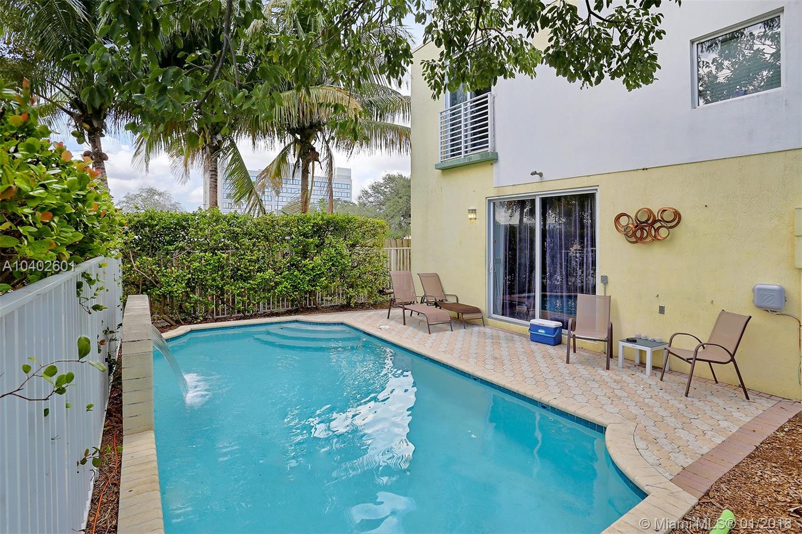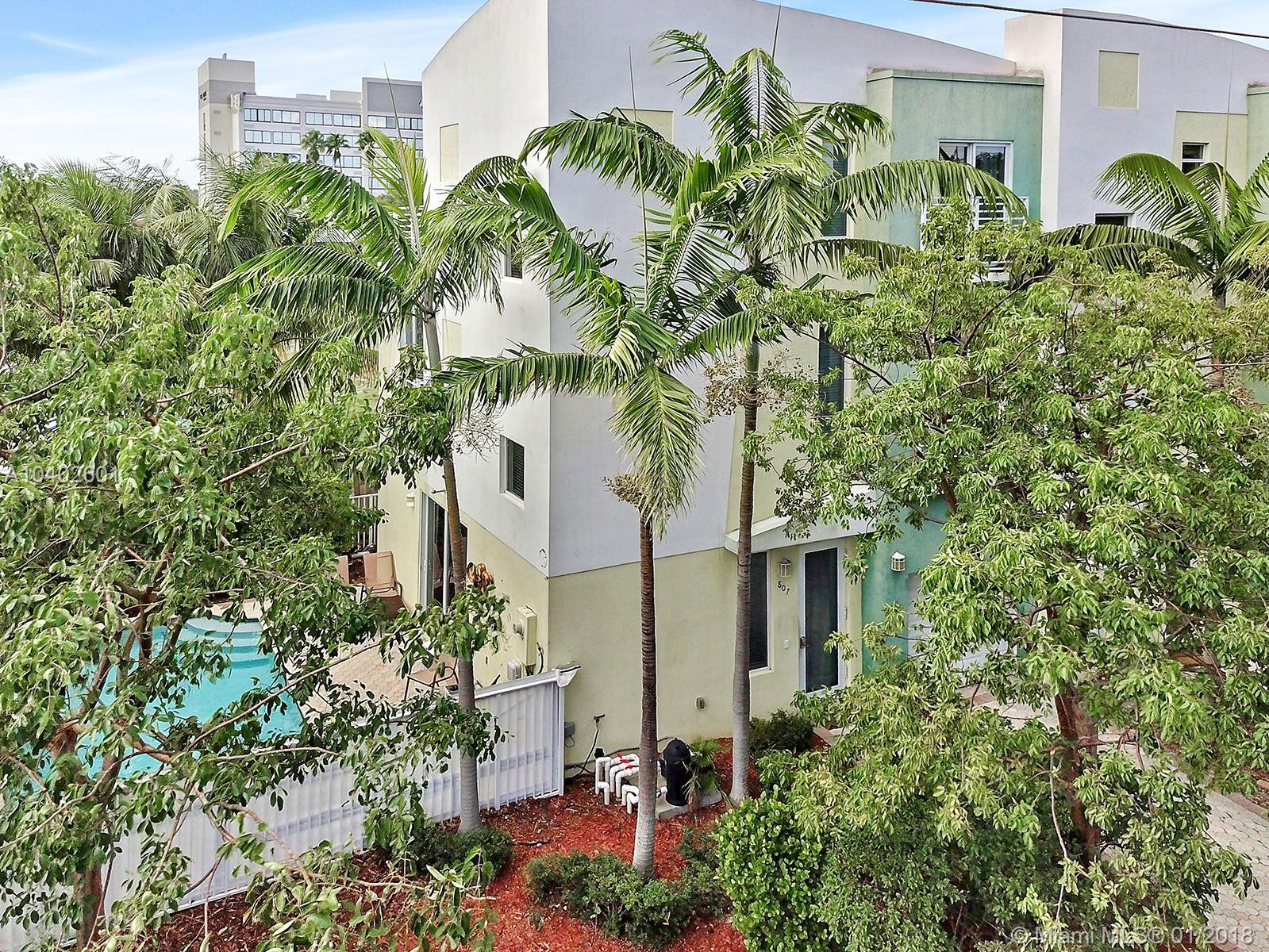 Fantastic 3 story corner townhome with private pool, large balcony on top overlooking downtown, , Travertine floors throughout the living area, kitchen features Granite counters, Stainless Steel appliances and Euro cabinets. modern bathroom finishes, impact windows and doors. Very large Master bedroom with a huge walk-in closet, newer carpet in bedrooms, open loft area on 3rd floor with its own bathroom, minutes from downtown Fort Lauderdale, Las Olas, right off 17th Street and a 5 minute drive to the airport. Great income producing property.Absolutely stunning!