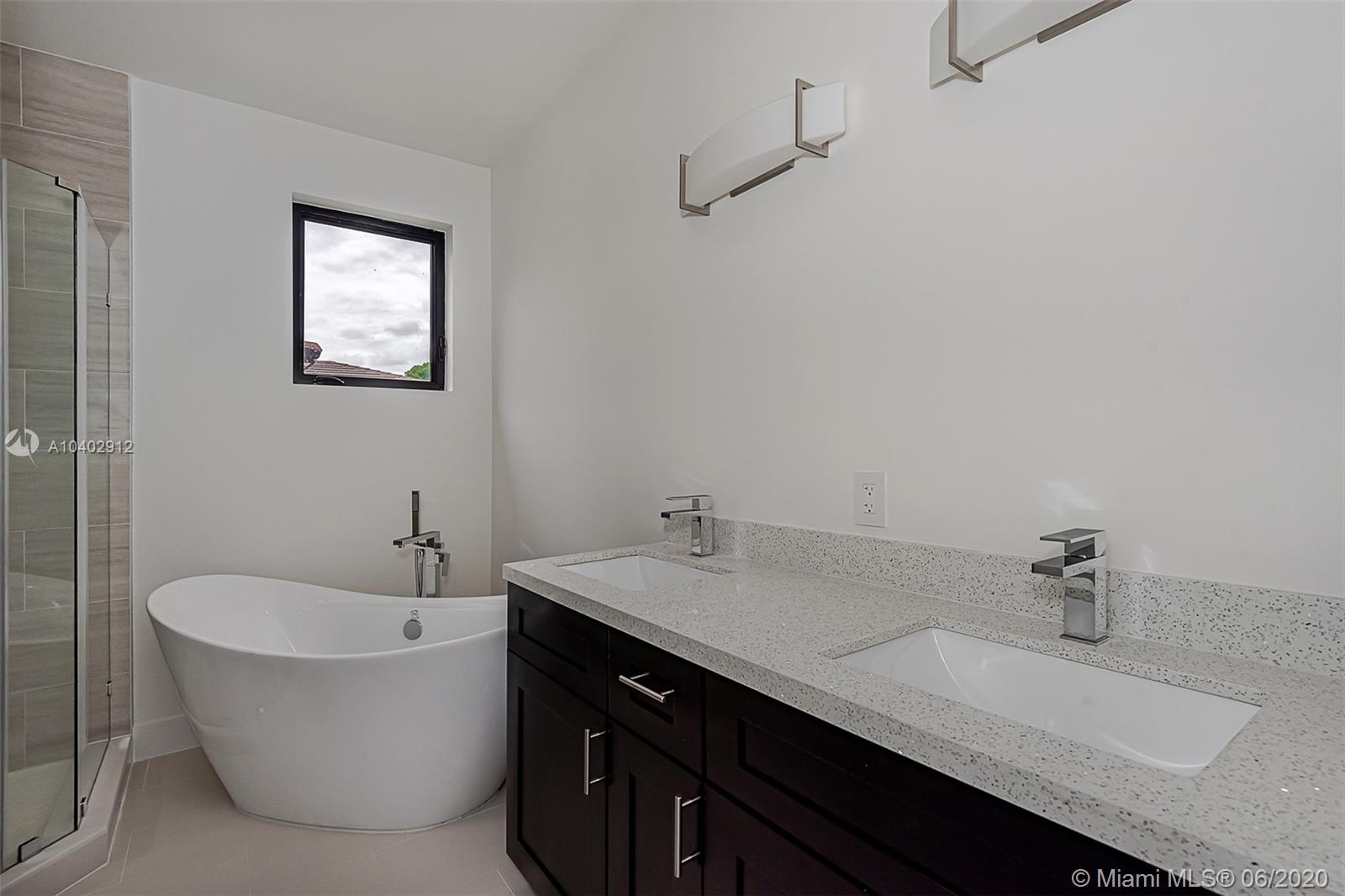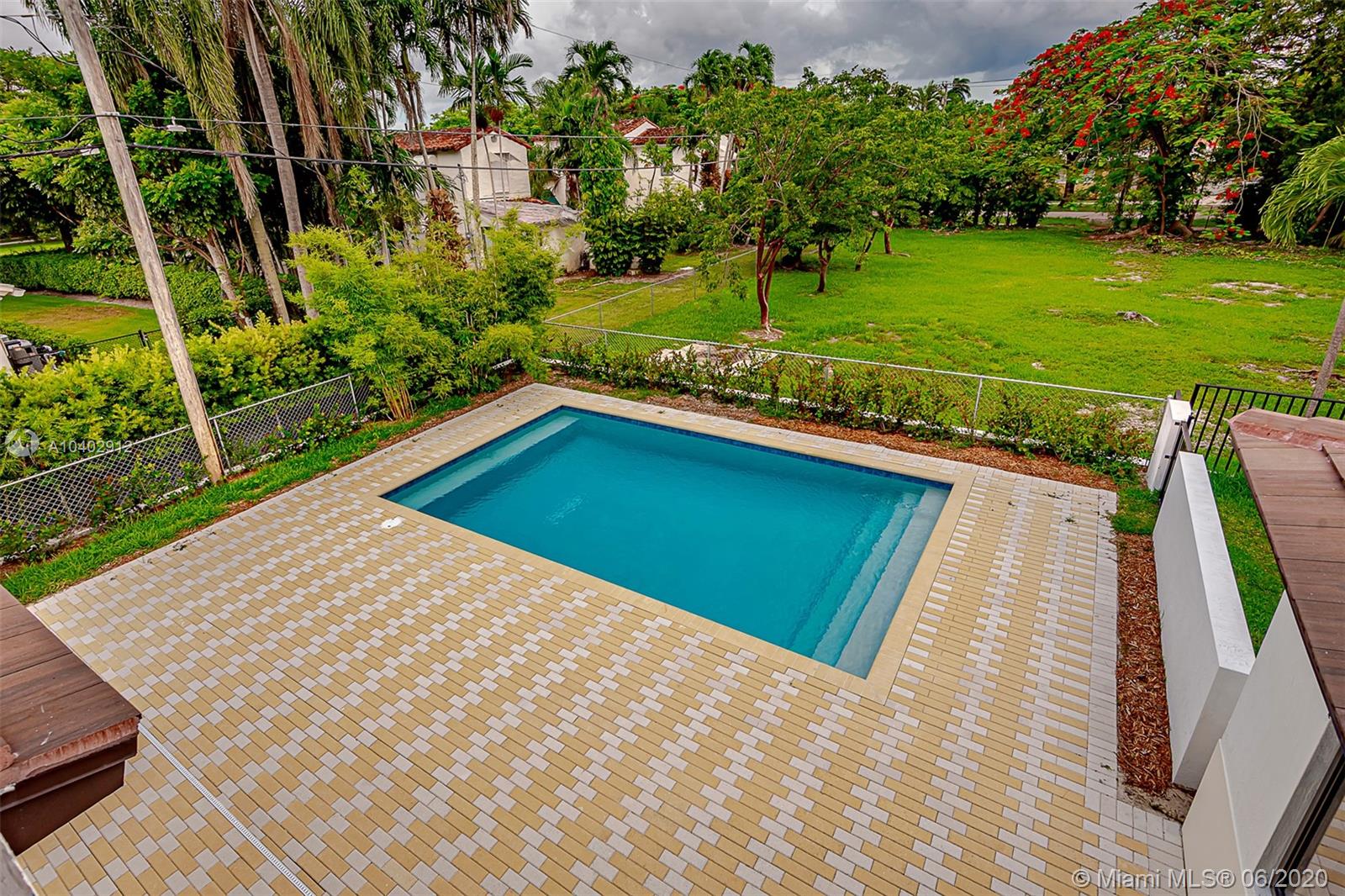 Owner says sell!!! New construction centrally located in prestigious Coral Gables. Beautiful two story, 4 bedroom, 3 1/2 bath.One bedroom, one bath on the first floor, with a terrace overlooking pool. Dramatic volume ceilings, ceramic tile throughout the first floor, living room, dining room, family room, large gourmet kitchen, crafted solid wood European style cabinetry with quartz counter tops. Patio includes, pool, deck, beautifully landscaped yard. Wood on the stairs and second floor. Full sized two-car garage. Attractive circular driveway with interlocking pavers, impact resistant windows, double entry doors and French doors to covered patio. Alarm system including two keypads and siren, contacts on all windows and doors. Fence with columns and electric gate to driveway!