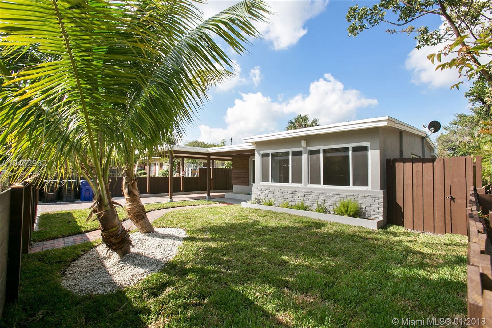 RENOVATED MODERN HOME!!East of Andrews close to Wilton Manor, Downtown and Beaches. Home features 3 bedrooms, 2 baths, beautiful and bright! Impact windows & doors, completely fenced with huge private back yard & room for your dream pool. Custom kitchen with marble counter tops & subway tiles back splash. Spacious driveway with carport and tongue & groove ceilings. Modern and expensive finishes. This one is a must see and will impress your most selective Buyer. BEST house in the neighborhood!!