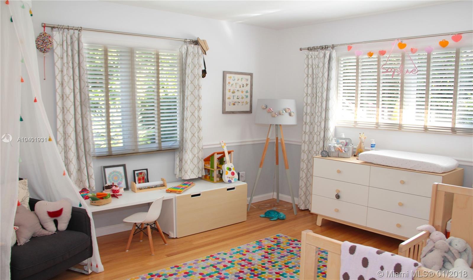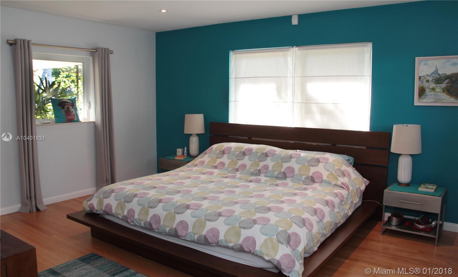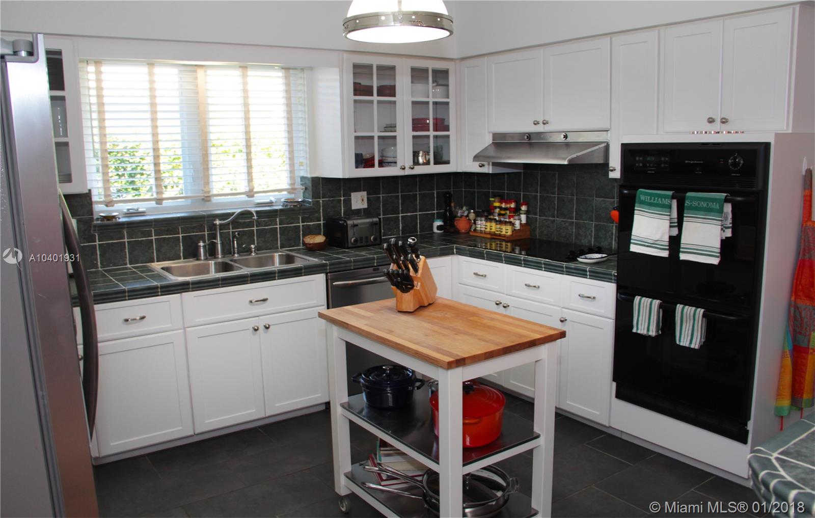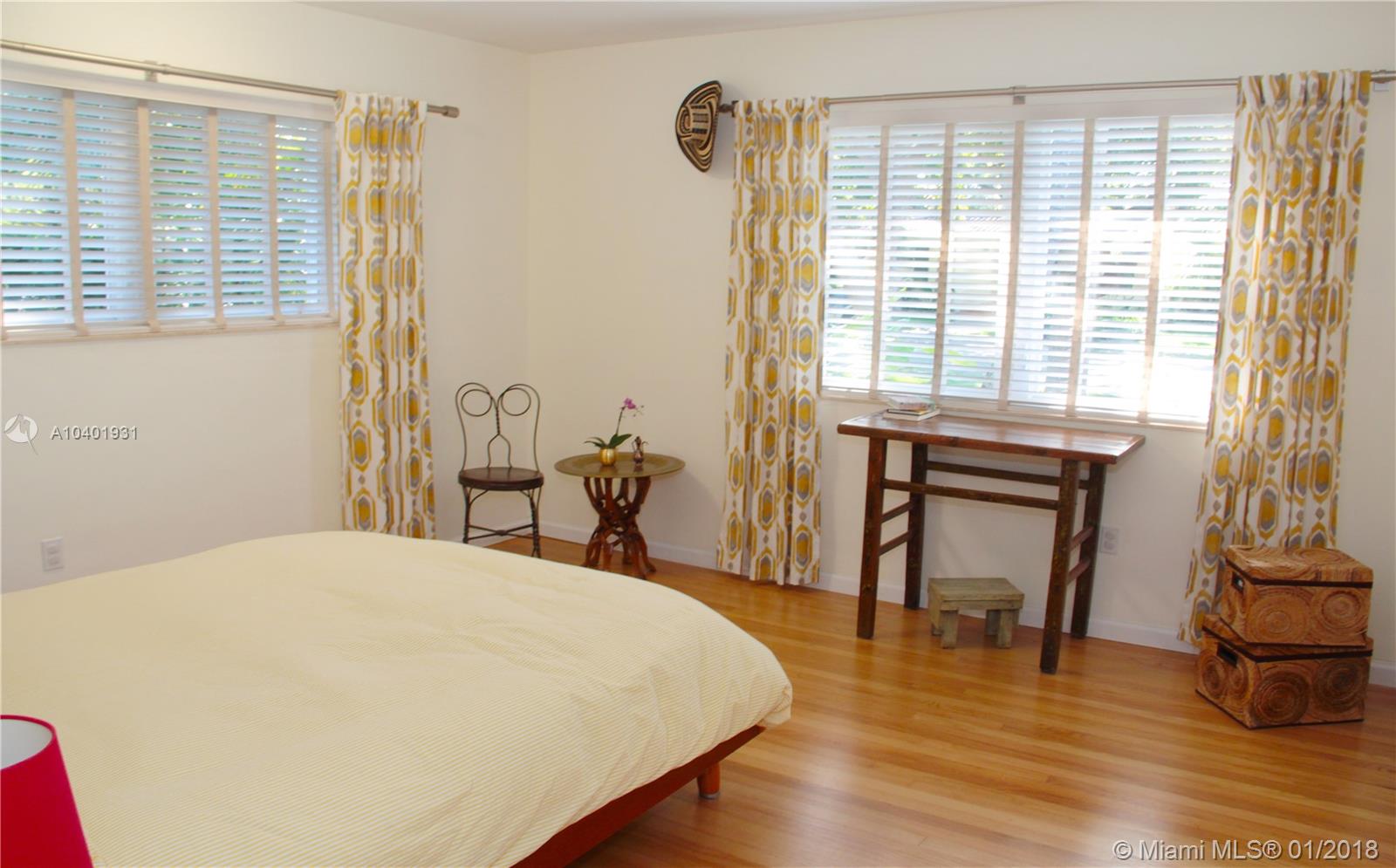 Impeccable 3/2 mid-century modern style home on a quiet street, walking distance from the neighborhood shops in downtown Miami Shores. New impact windows & doors and accordion shutters all throughout, including hurricane proof garage door. Great lay-out with refinished hardwood floors, double living space area to arrange dining room, family room and formal living room. All bedrooms are large and have very generous storage space. Large sliding door that opens to a large finished patio and a professionally landscaped back yard, making this house great for entertaining and enjoying the Miami weather. Great curb appeal with beautiful landscaping in the front and convenient access to a 2-car garage through the back alley with an electric gate. Brand new garage roof, newer tile roof and A/C.