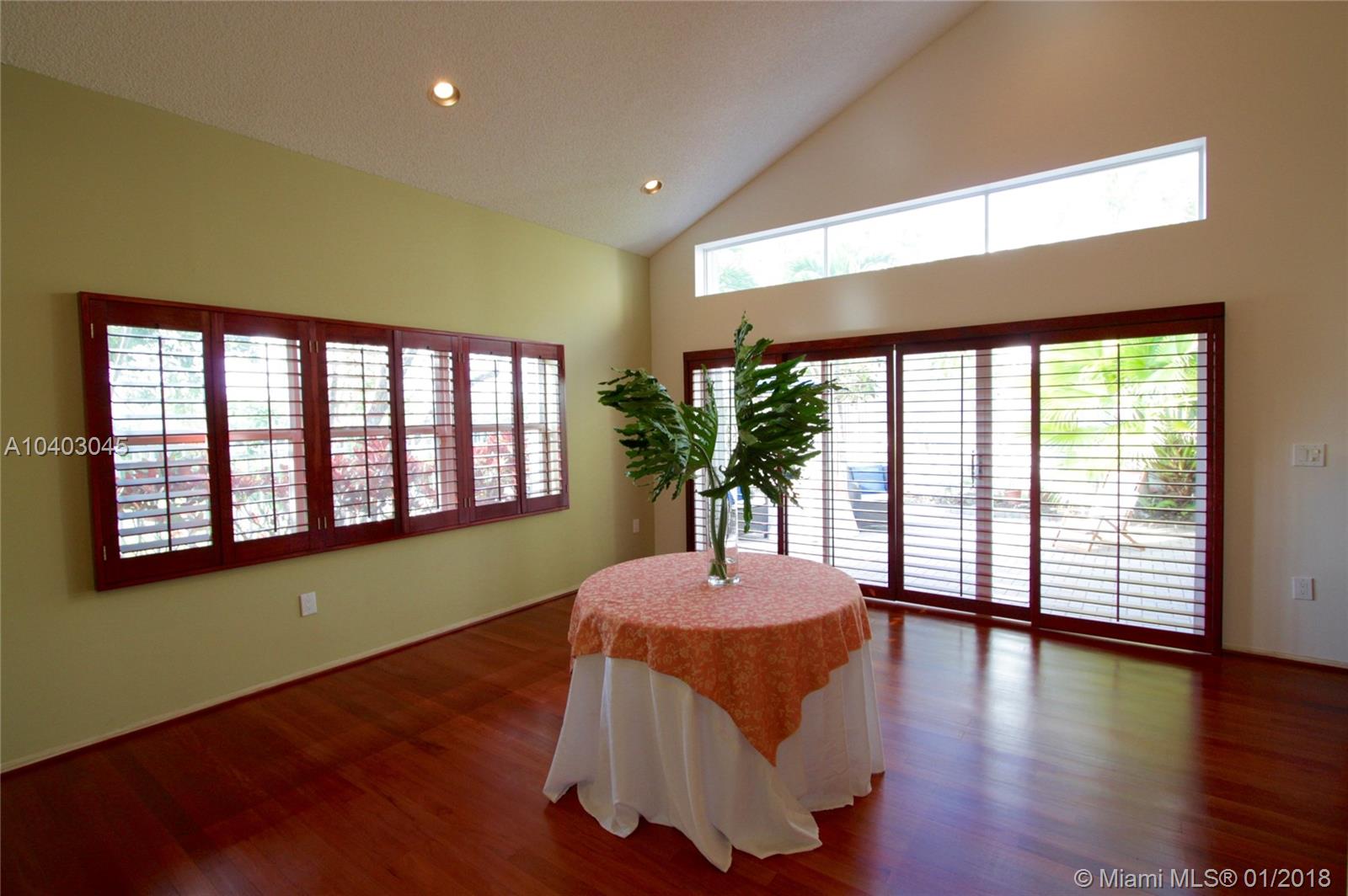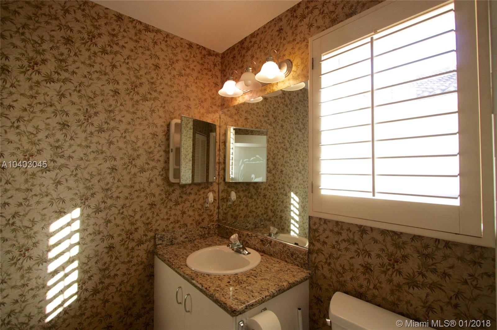 This popular three-bedroom, two-and-a-half-bath, single-family home (the DaVinci model) is on a prime, waterfront lot and has been beautifully updated. The living room features cathedral ceilings, extra windows, Brazilian Cherry hard wood floors and matching plantation shutters. The large eat-in kitchen has granite counter-tops, wood cabinets, a breakfast bar and brand-new stainless steel appliances. The bathrooms also have granite counters. There's a full set of accordian hurricane shutters. The private back yard has a large paver patio and has views of the lake and the park. (Enjoy having no back neighbors.) West Lake Village is a gated community with tennis, heated pool, hot tub, exercise room, clubhouse and a kid’s play area. It is very close to Hollywood Beach and Downtown Hollywood.