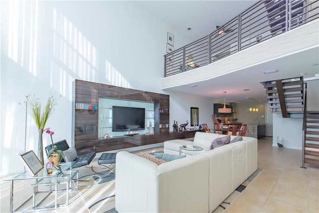 The largest and coolest townhome available in Victoria Park. Soaring double height living room, floor to ceiling windows, modern fixtures and finishes, floating staircase, and open loft. A walled entry marble paved courtyard with recently updated salt system pool and waterfall. Sleek custom built-ins. The 2nd level has spacious loft plus an immense master suite. Level 3 has a second master suite as well as a spacious full suite guest room each with balcony. Lovely interior neighborhood location.