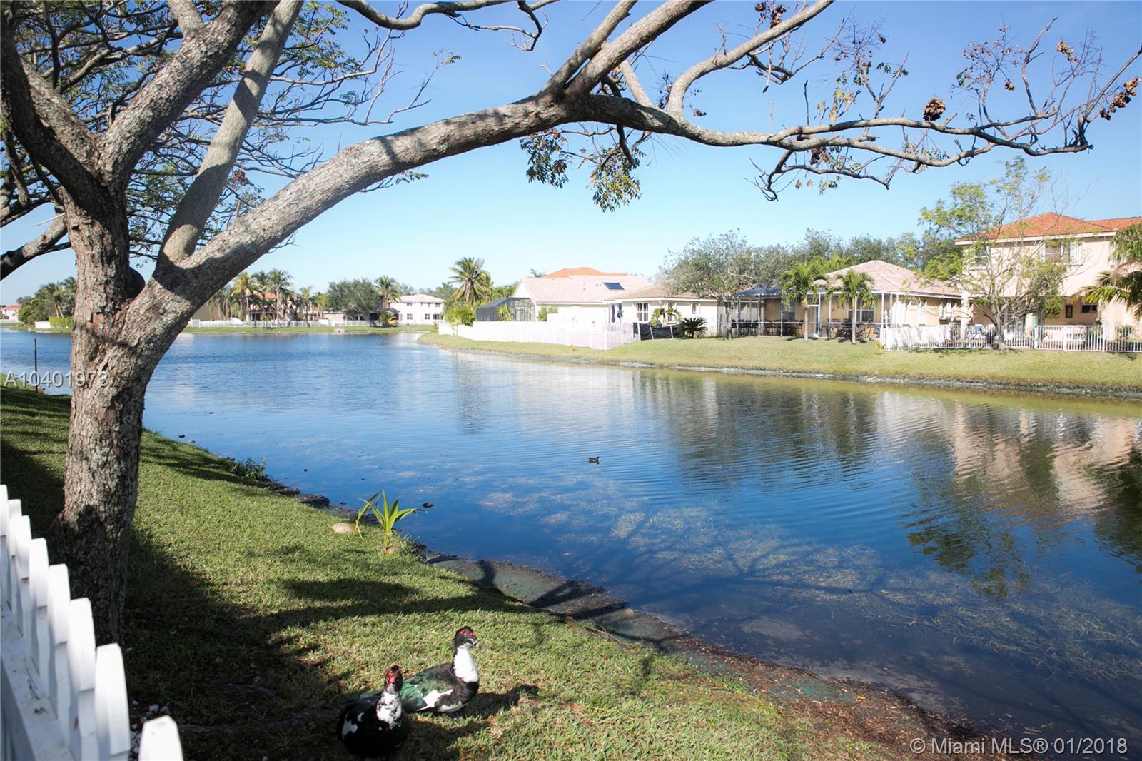 Beautiful 2 bedroom 2 bath townhome with fenced patio overlooking lake and canal. Tile and wood first floor and wood second floor. Master bedroom upstairs has a balcony overlooking the canal and lake. Two car driveway with plenty of guest parking nearby. Exterior is recently painted. Community pool and kids playground area. Easy access to I-75 and the Florida Turnpike. Part of the garage has been converted into another room.