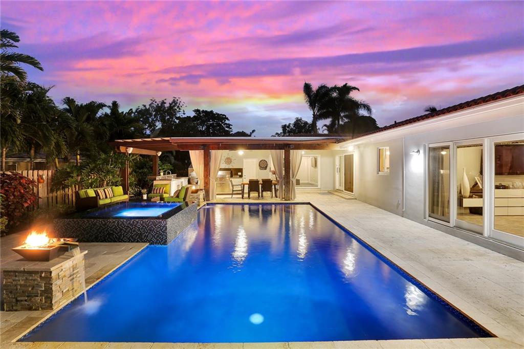 Updated 5 Bed/3 Bath Pool Home W/1-Car Garage Situated On A Quiet Corner Lot in the Heart of Coral Ridge. Split Bedroom Floor Plan W/2 Masters, An Open Concept Living Area W/Beautiful Restored Terrazzo Floors, Gourmet Kitchen W/Granite Counters And SS Appliances W/Natural Gas Stove & New Bamboo Floors in 3 Bedrooms. Step Outside To The Ultimate Backyard Experience W/Large Covered Pergola, Updated W/New Heated Pool & Spa, Travertine Pavers, Outdoor Speakers & Full Outdoor Kitchen W/Built-In Gas Grill, Fridge, Cooler, Sink & Charcoal Grill. Home Features Include; New Salt System, Impact Windows & Doors Throughout, 2 Propane Tanks, Speakers In Master Bedroom & Kitchen, Designer Finishes Throughout And New Doors in Guest Bedrooms. Located In Bayview School District.