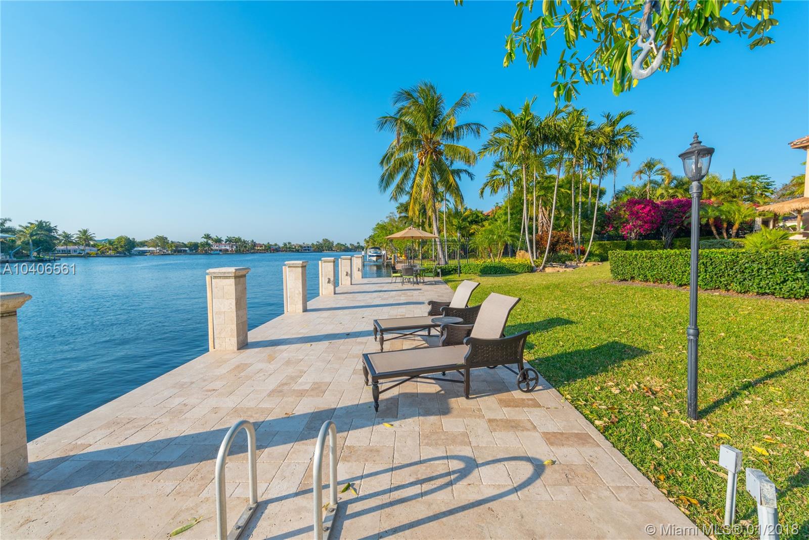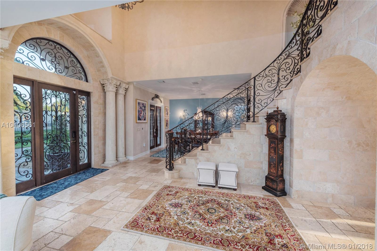 Mediterranean Estate on the Middle River in Coral Ridge, 6 bedrooms, 5.5 bathrooms, separate mother in law / guest suite; Her walk in closet must be seen! 102 ft waterfront, 19380 sf lot. Dream huge backyard, all fenced. Extra wide concrete dock, all tiled, boat lift, Chicago brick patio, very large 40 ft. heated pool, summer kitchen with wet bar, television & music. Grand foyer, formal dining room, butler pantry, professional gourmet kitchen. 2 automatic iron gates, Chicago brick driveway. Most furniture & electronics included. 1 minute to Bayview elementary, very close to Cardinal Gibbons, PineCrest and St. Thomas schools; 3 minutes to Galleria Mall, 5 minutes to the ocean and the beach and 15 minutes to Fort Lauderdale International Airport. The perfect home for the whole family.