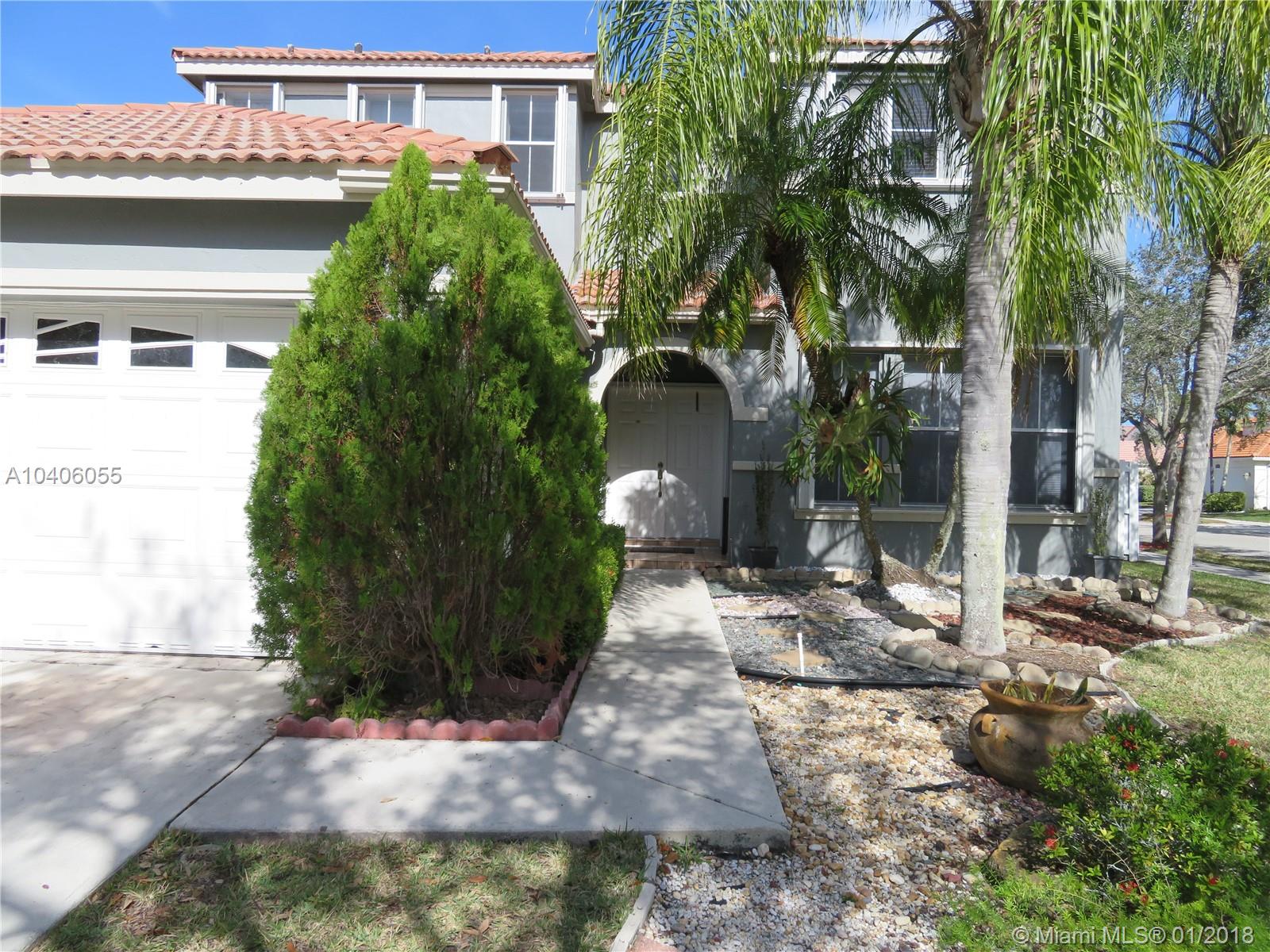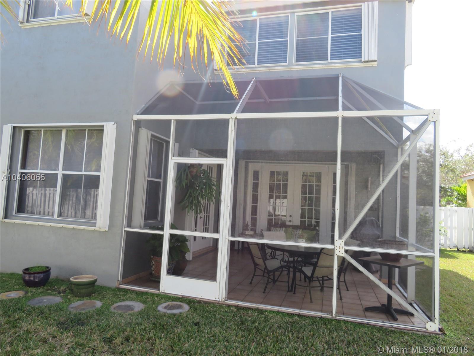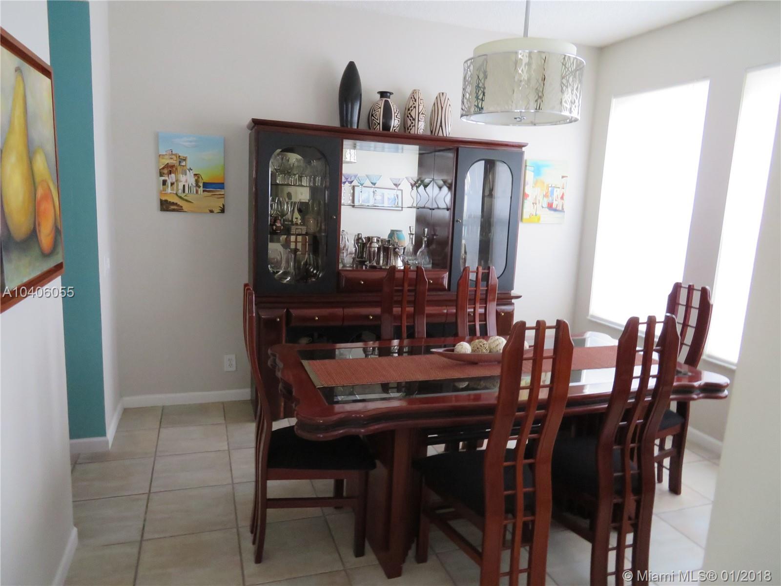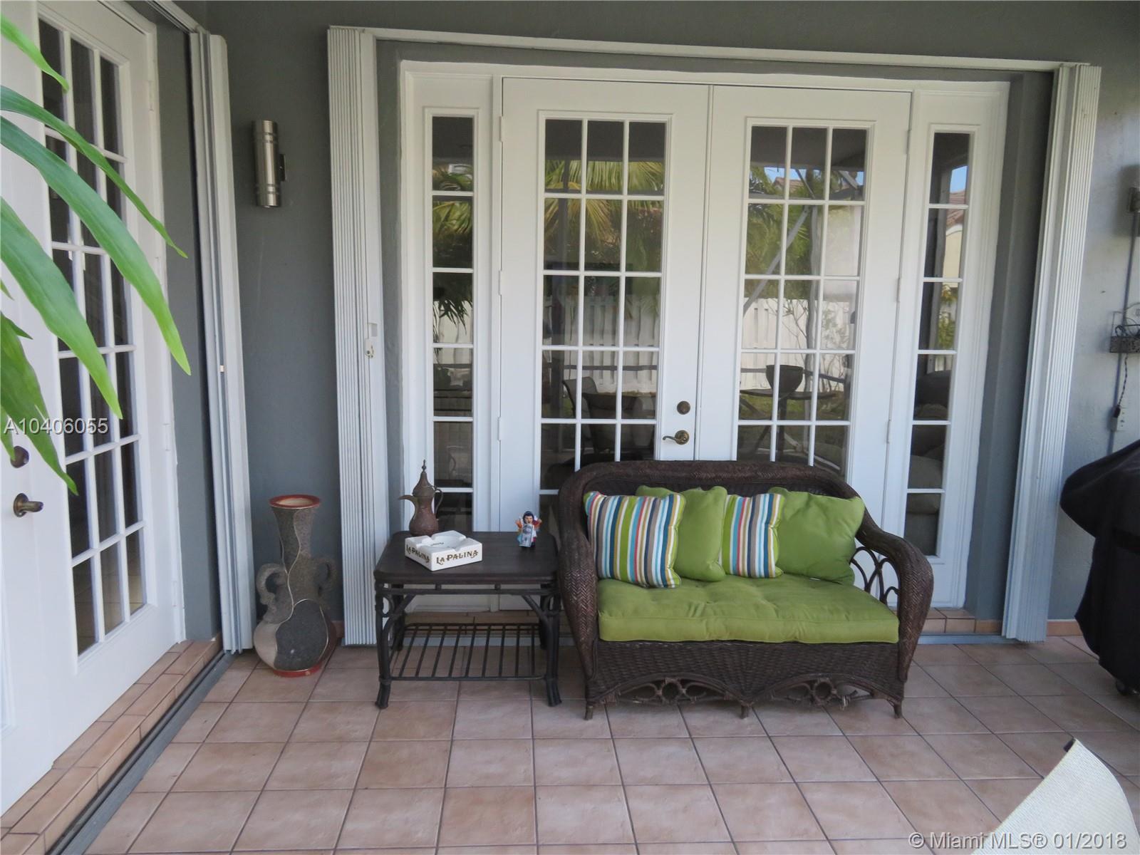 Beautiful single family home, corner unit with a huge backyard fenced. Totally Upgraded kitchen with Granite counter top, chef faucet, wall oven unit, 42 inches cabinets,Vent a hood stainless steel, as well as all the appliances. Screened porch with covered patio area, with two double french doors.Tiled first floor, laminated second floor. Double door entrance. ACCORDION SHUTTERS. High ceilings, separated dinning,living and family room. A+ School walking distance to Eagle Point.... You must see it.