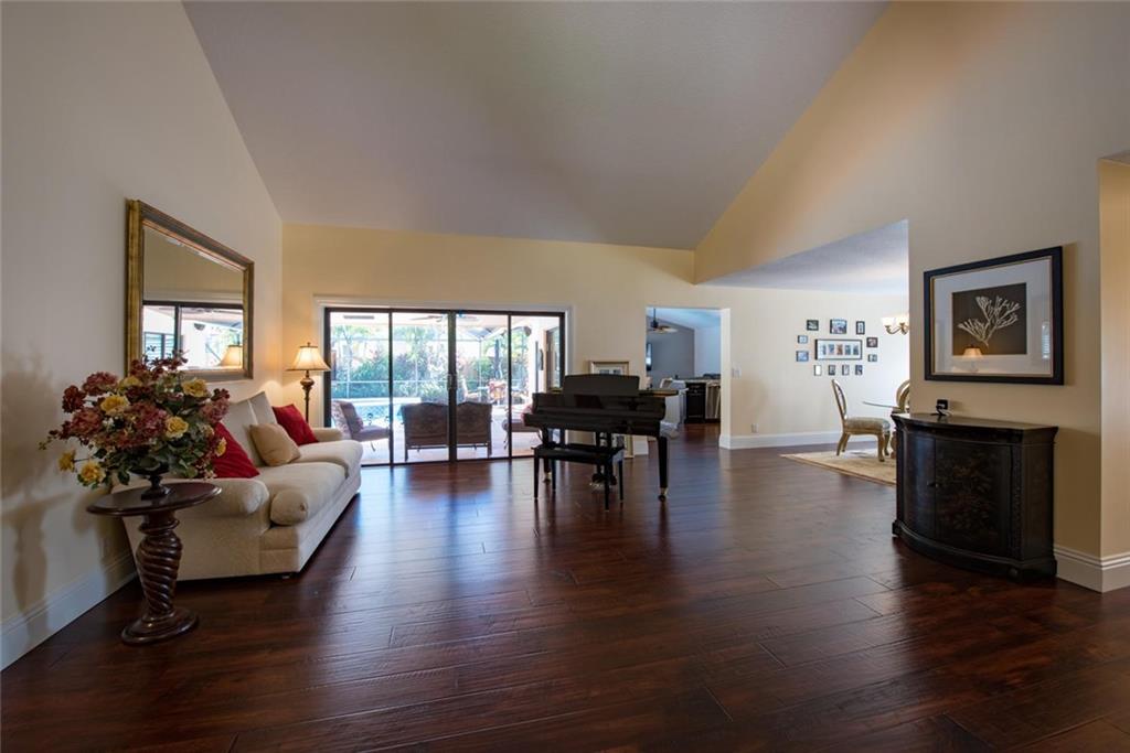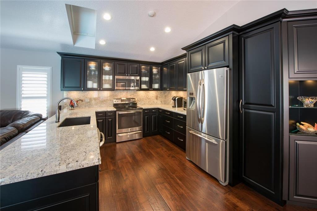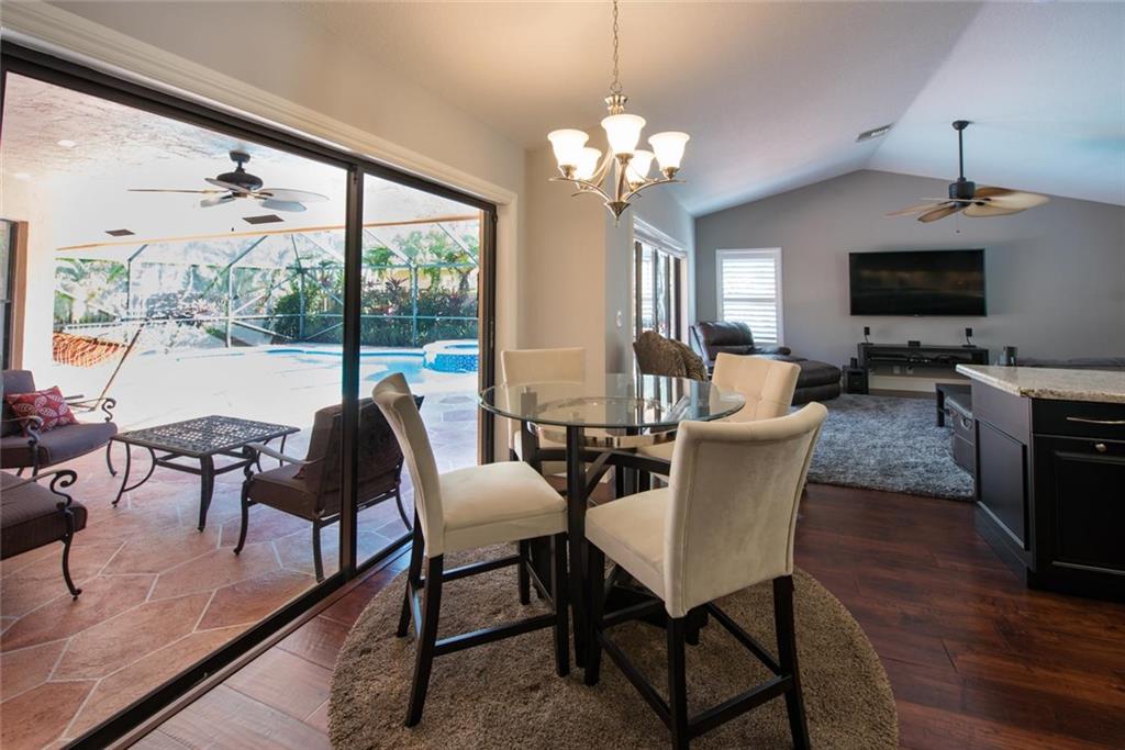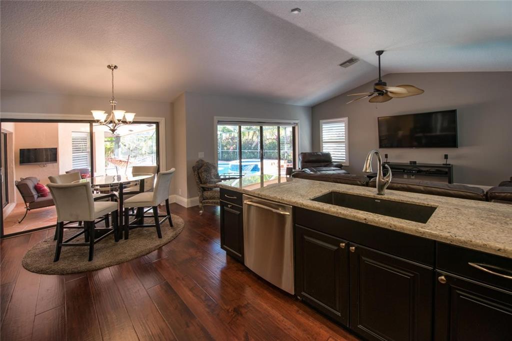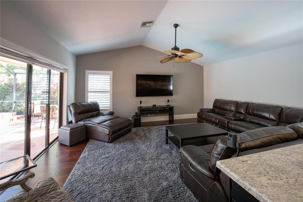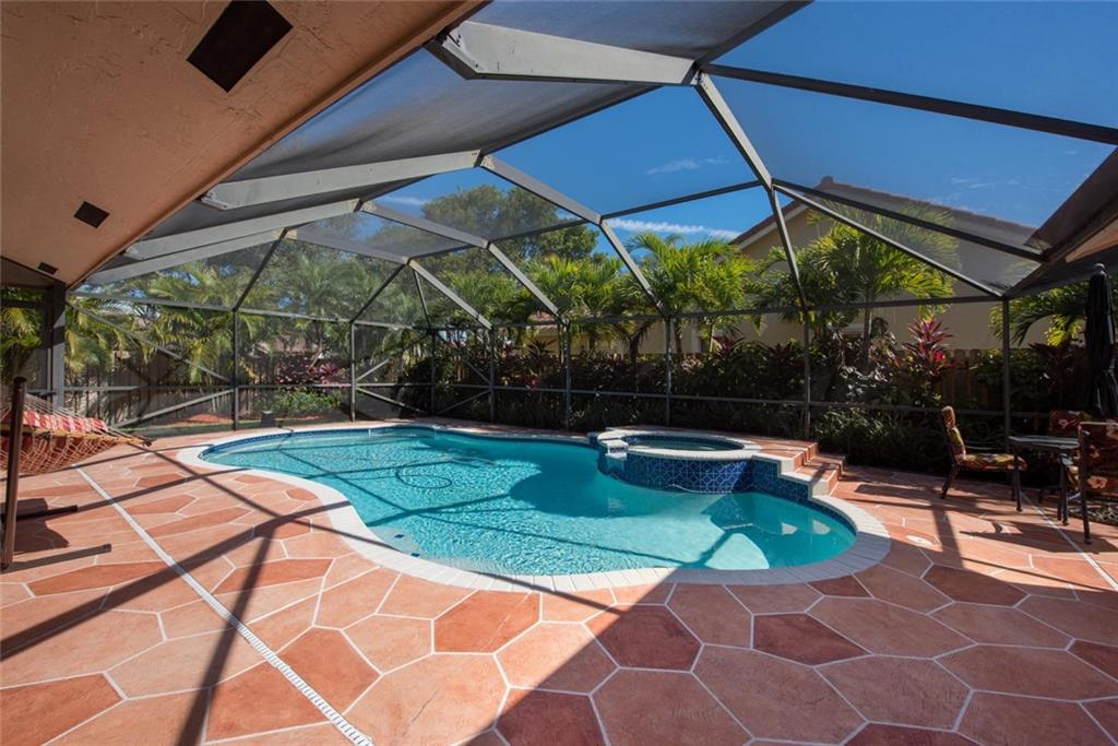 WELCOME HOME TO THIS PRIVATE REMODELED EXECUTIVE HOME LOCATED ON A PRIVATE CORNER LOT! BEAUTIFUL CUSTOM MAPLE KITCHEN CABINETS, EURO GLASS FRONTS, GRANITE COUNTERS, GRANITE COMPOSITE BLANCO SINK & TOUCHLESS DELTA FAUCET. SEPARATE BREAKFAST AREA, OPEN FAMILY ROOM OVERLOOKING THE SCREENED POOL/PATIO & PRIVATE TROPICAL GARDEN AREA. HARDWOOD FLOORS, PLANTATION SHUTTERS, RAISED PANEL INTERIOR DOORS, NEW FENCE TO EXCEED HURRICANE STANDARDS, NEW EXTENDED PAVER DRIVE & WALKWAY.