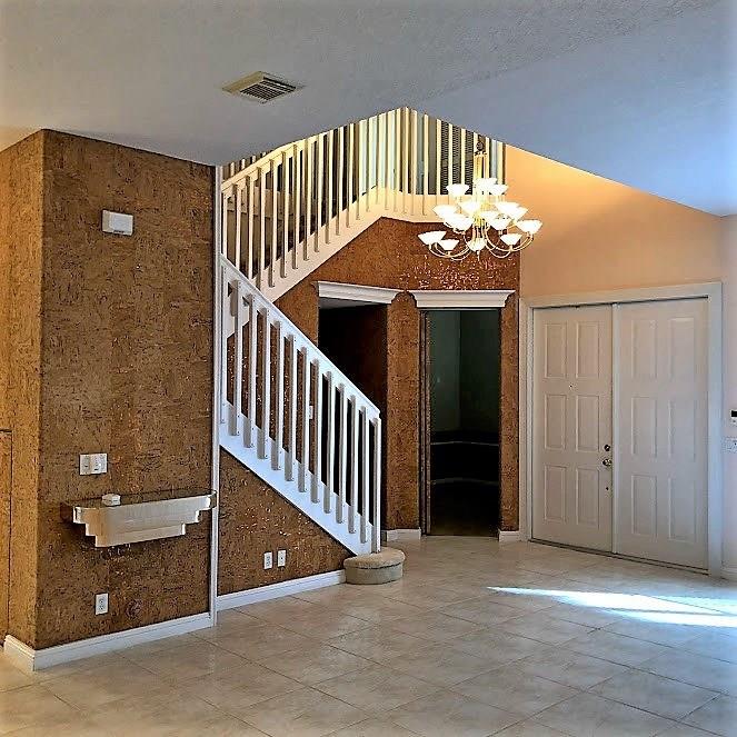 Spacious 3 bedrooms,3 bathrooms,den (Convertible to 4th bedroom),huge master bedroom with 2 walk-in closets with built-ins,large master bathroom with shower & whirlpool tub,2 1/2 car garage with shelves,large great room,eat in kitchen with 2 pantries,dining room, large laundry room,2 zone central A/C,accordion shutters,Hunter Douglas window treatments, plantation shutters,3 chandeliers,burglar alarm, ethernet,DirecTV, Comcast.24/7 security,Close to Publix & houses of worship