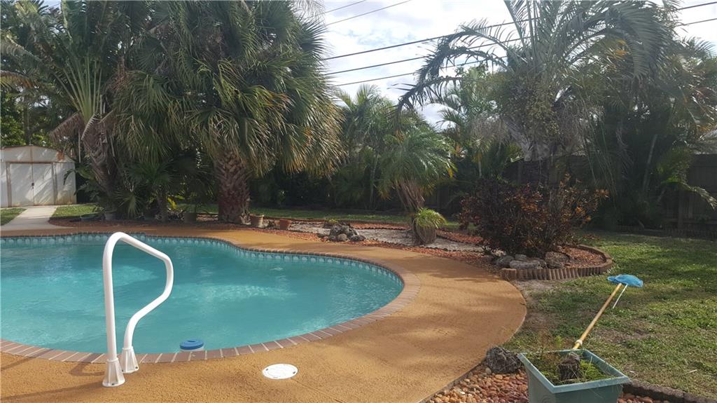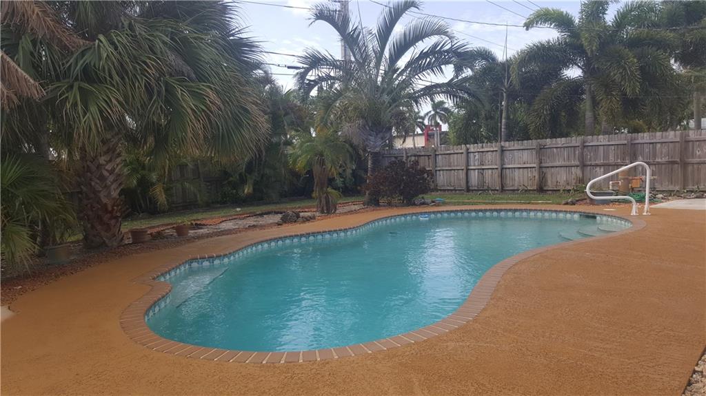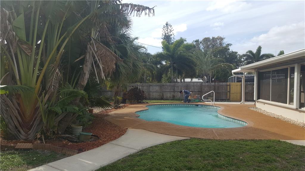 Great single family home with 2 car garage and a pool to enjoy!!!! Across shopping center, close to the beach. Screened patio, renovated kitchen, freshly painted, large lot with extra space to park an RV or a boat. NO HOA.