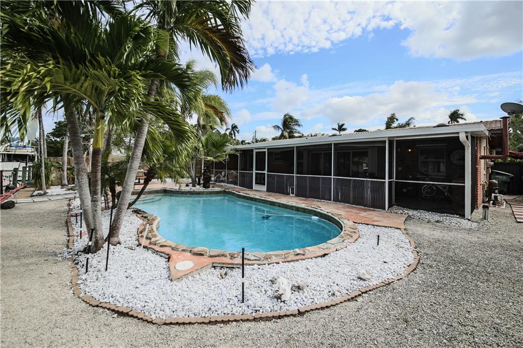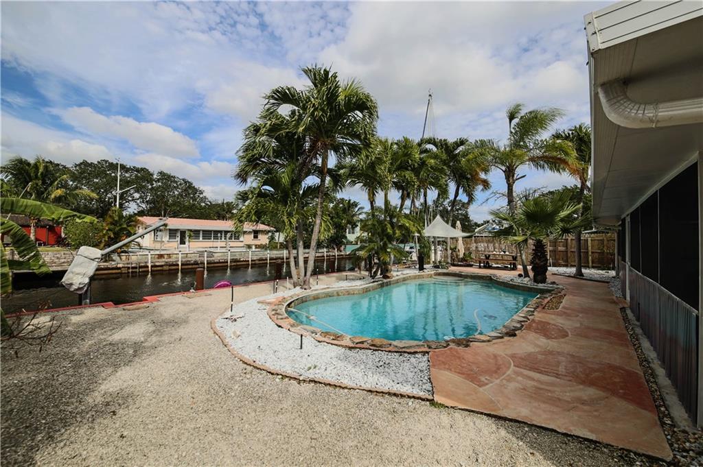 Bring your boat & dock at your beautifully remodeled open floor plan home. 65' on the water! Ocean access & no fixed bridges! A great home for entertaining. Upgraded Stainless Steel appliances w/ gas stove. Beautiful updated bathrooms! Laundry/utility room with desk area. Large screened patio & pool patio! Low maintenance grounds! Central A/C replaced in 2015. New pool pump in 2017. Patio roof replaced in 2015. Generator hook up and 4400 BTU generator included. impeccably kept interior! Cul-de sac street!