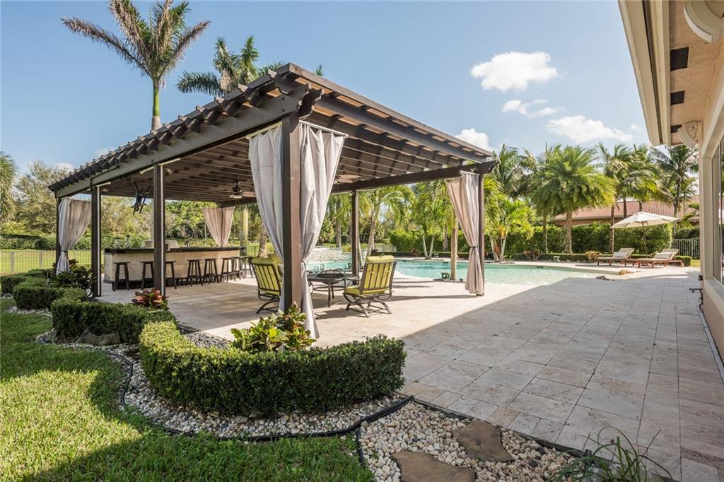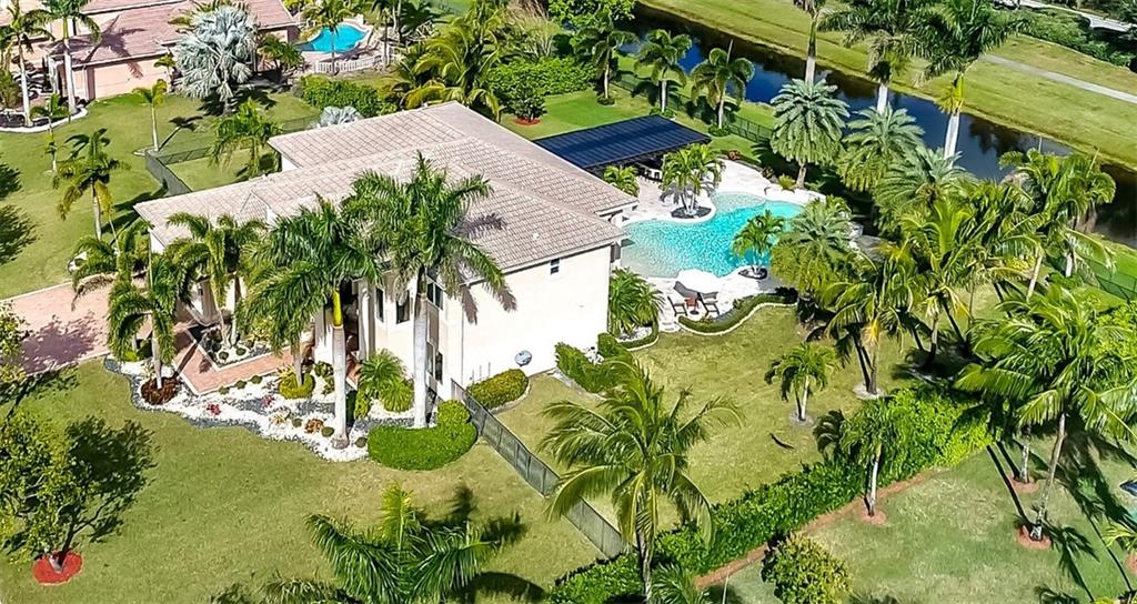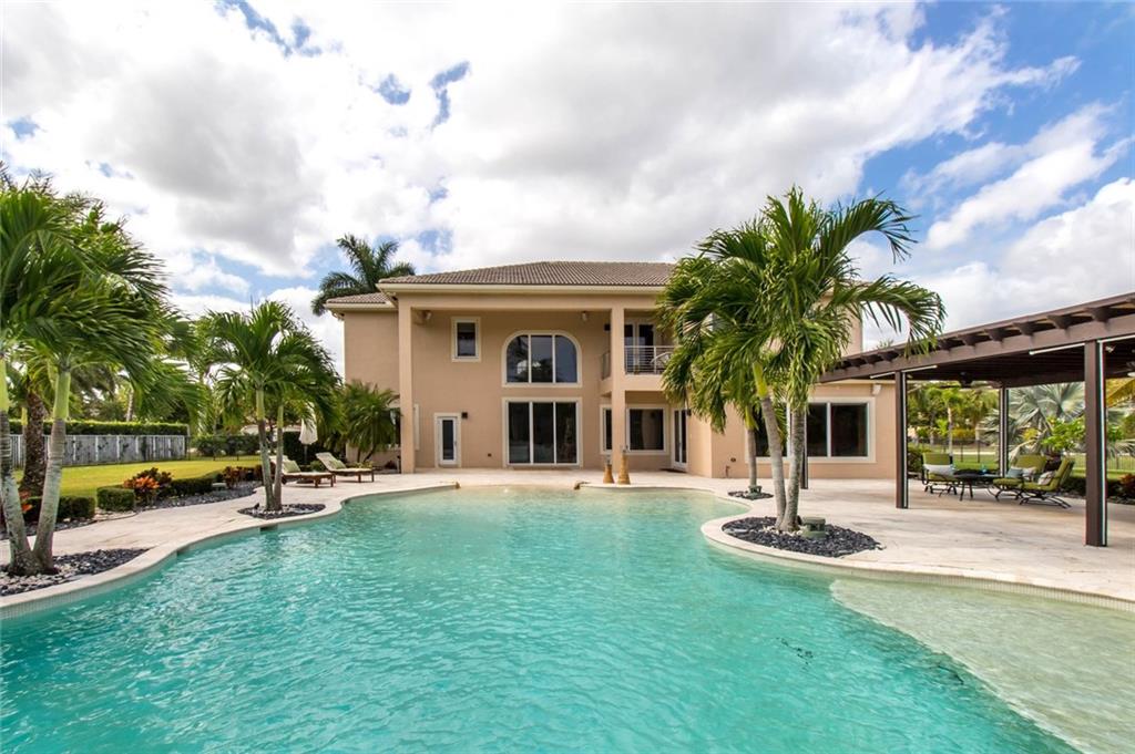 Contemporary appointed builders acre home located in Long Lake Ranches West, tucked within the tranquil setting of West Davie’s most desirable area. 6 bdrm, 4 1/2 ba,w/loft, 3 car gar. free-form style pool, marble flrs, butler's pantry, kitchen bar seats 8 + island, intercom system, mstr w/private terrace, mstr bath: 9' shower & stand alone tub, electric silhouette window coverings thru-out, high-end impact windows/doors, landscaped, fully fenced, covered pergola w/kitchen & bar. 2 bedrooms on 1st floor.