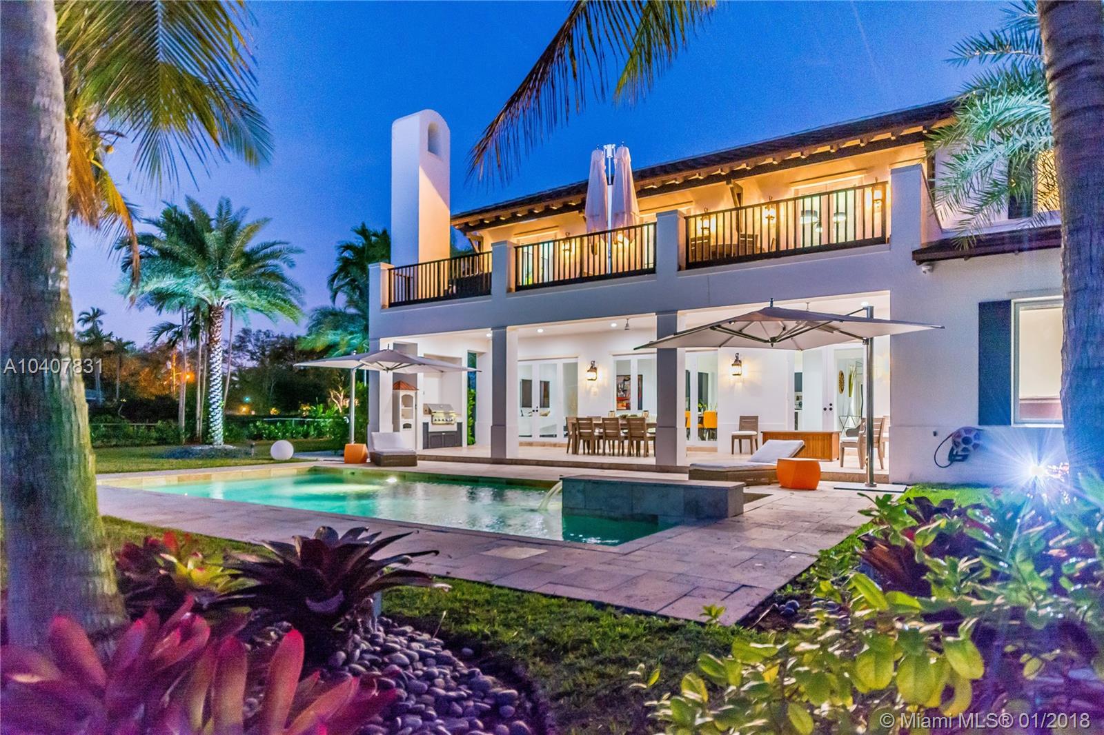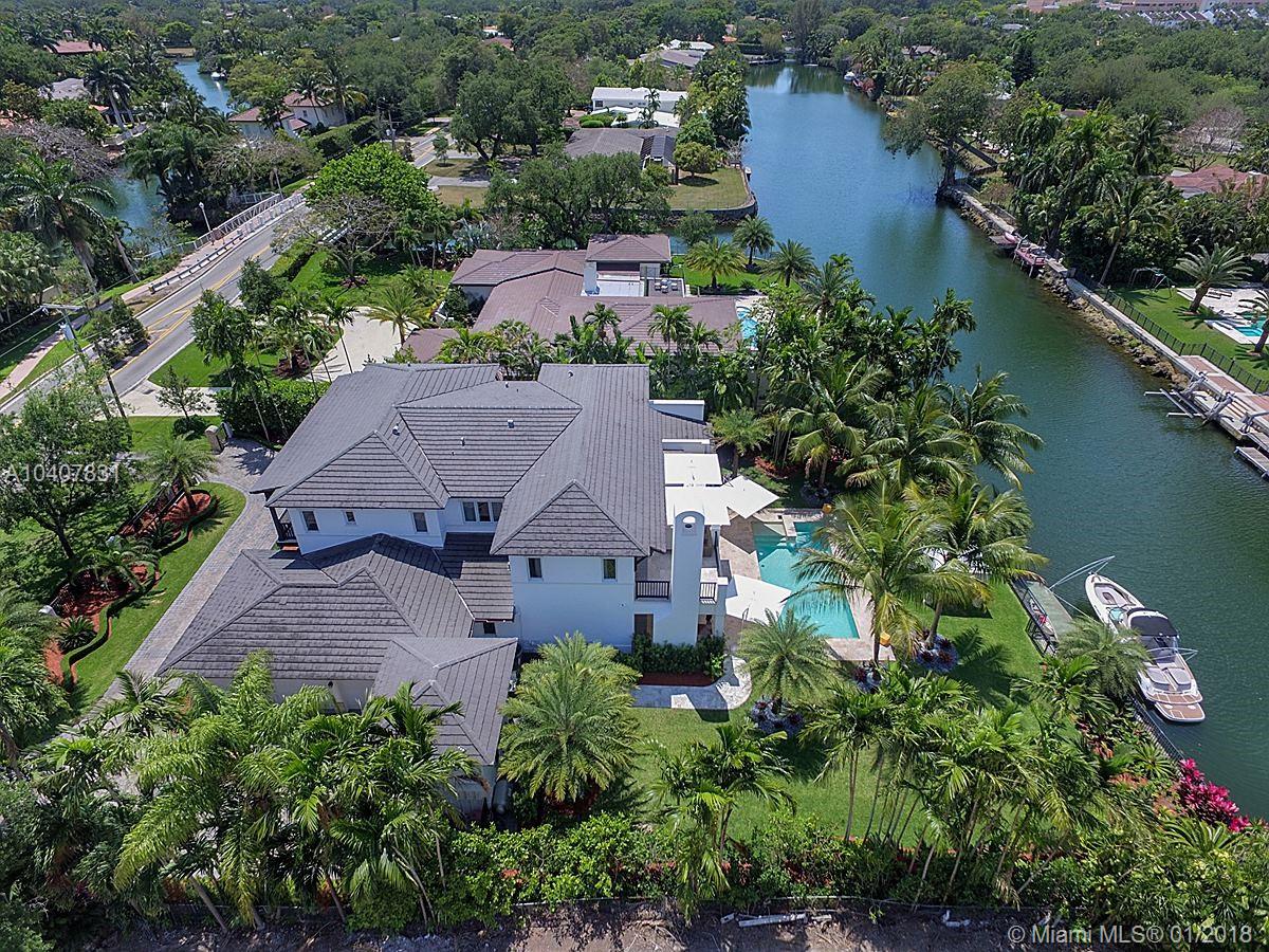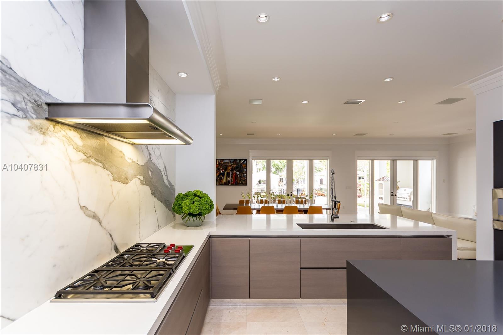 Spacious, gated, contemporary Island–style villa nestled in the heart of Coral Gables, on the Gables Waterway with ocean access. Abundant natural light, expansive verandas and terraces, gorgeous water views from the large entertaining kitchen, which itself boasts a single-slab marble wall. Completely renovated and updated with 6 bedrooms, 7.5 bathrooms (all bathrooms are en suite), 3-car garage, Chicago-brick driveway, impact windows and doors, security cameras and "smart home" features, wine cellar, and lighted tropical landscaping. Formal living and dining areas, plus family room open to the kitchen and facing the pool patio and waterway, all designed for gracious, elegant, yet relaxed tropical living
