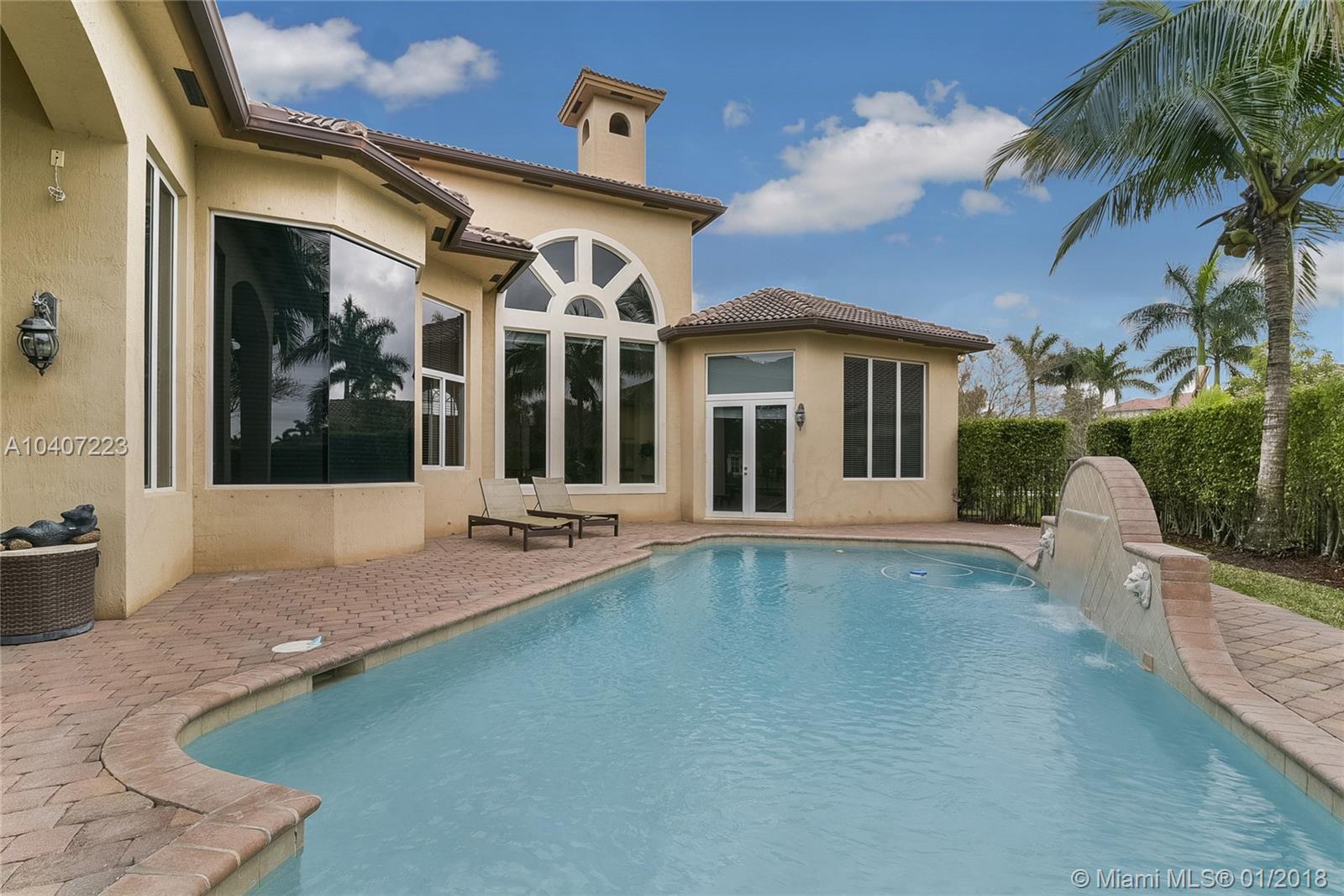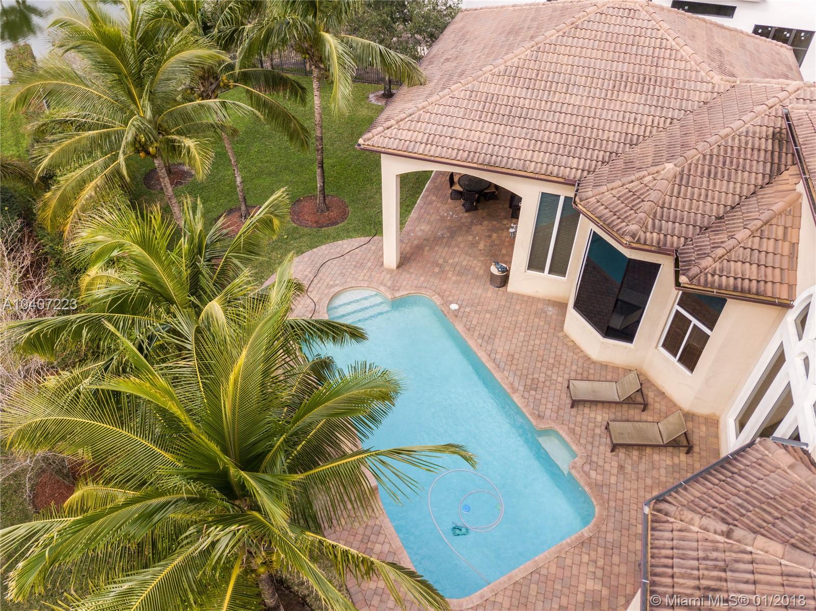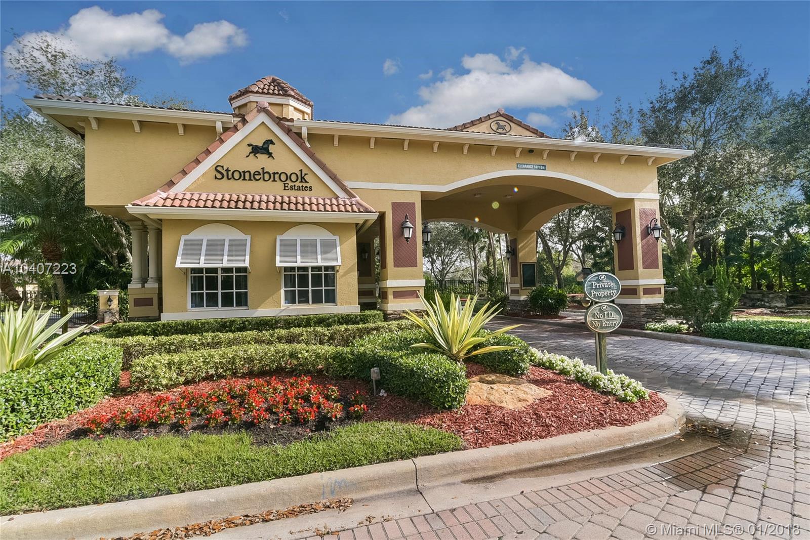 Welcome to the upscale community of Stonebrook estates. You will find luxury living with 24 hour guard gated security. This luxurious Vanderbilt model has 5 bedrooms and 6 baths with a 3 car garage and all impact glass. In addition, there is a media room and an office. The master bedroom is downstairs featuring hardwood floors, a sitting area, a separate vanity area, a jacuzzi tub and a lake view. The chefs kitchen has all Kitchen Aide appliances and a walk in pantry. Marble throughout the living, family, dining and kitchen is polished and stunning. The backyard features a waterfall pool and a lake view. This home with over 6000 SF is priced to sell. Don't miss the opportunity to own this fabulous home in Stonebrook estates.