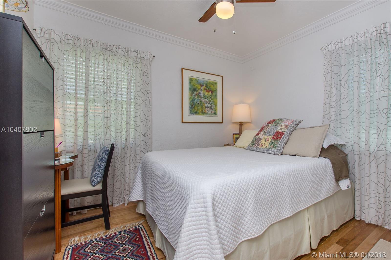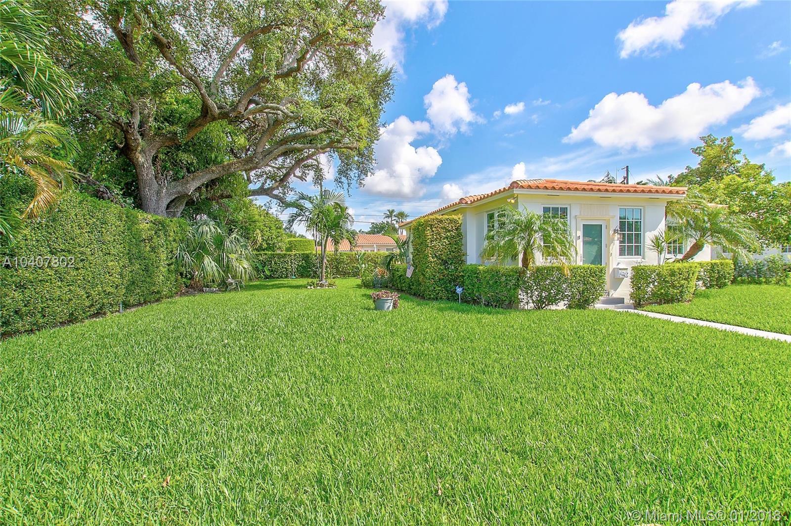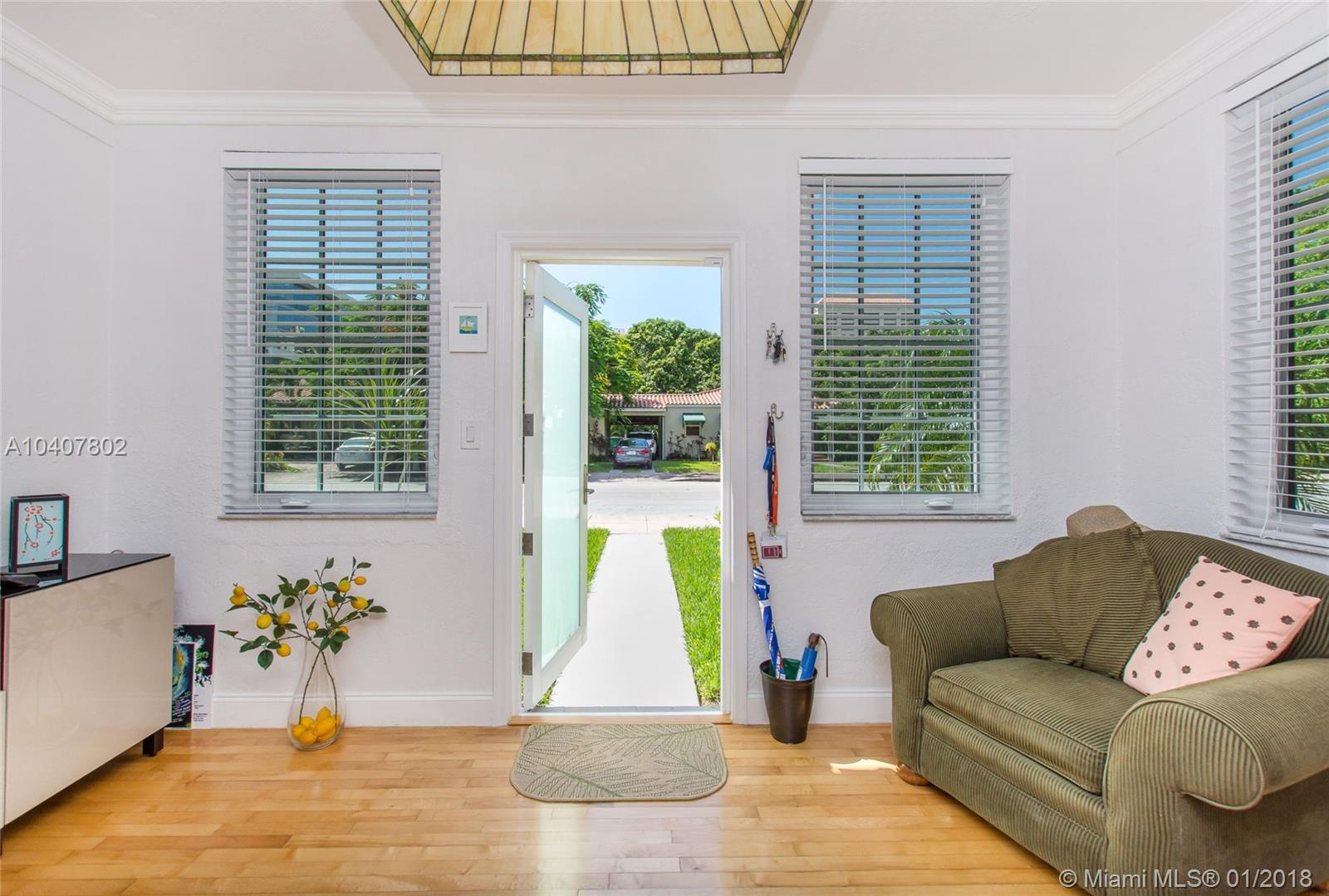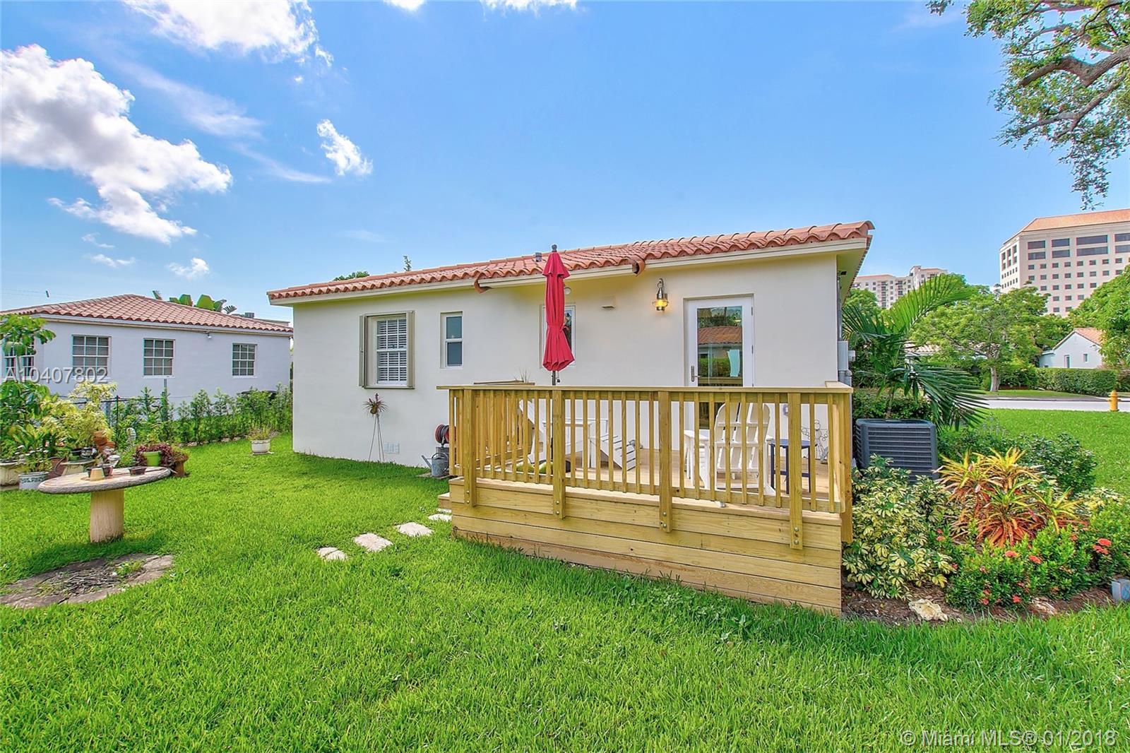 Charm, comfort, updates, and community await the savvy buyer for this three bedroom home set on landscape double lot nestled in a lovely neighborhood. Custom kitchen featuring geostone countertops and chic cabinets and lighting. Sun drenched foyer with maple floor. European style bathroom with porcelain tile shower and marble floor. New electrical 200 amp panel with underground connectivity from FPL. New HVAC unit sized for future home expansion. Oak hardwood floors through out BR, LR/DR. Additional 120 foot deck for entertaining. Impact windows and doors. Short walk to Coral Gables trolley and the Miami trolley stop is at the corner.