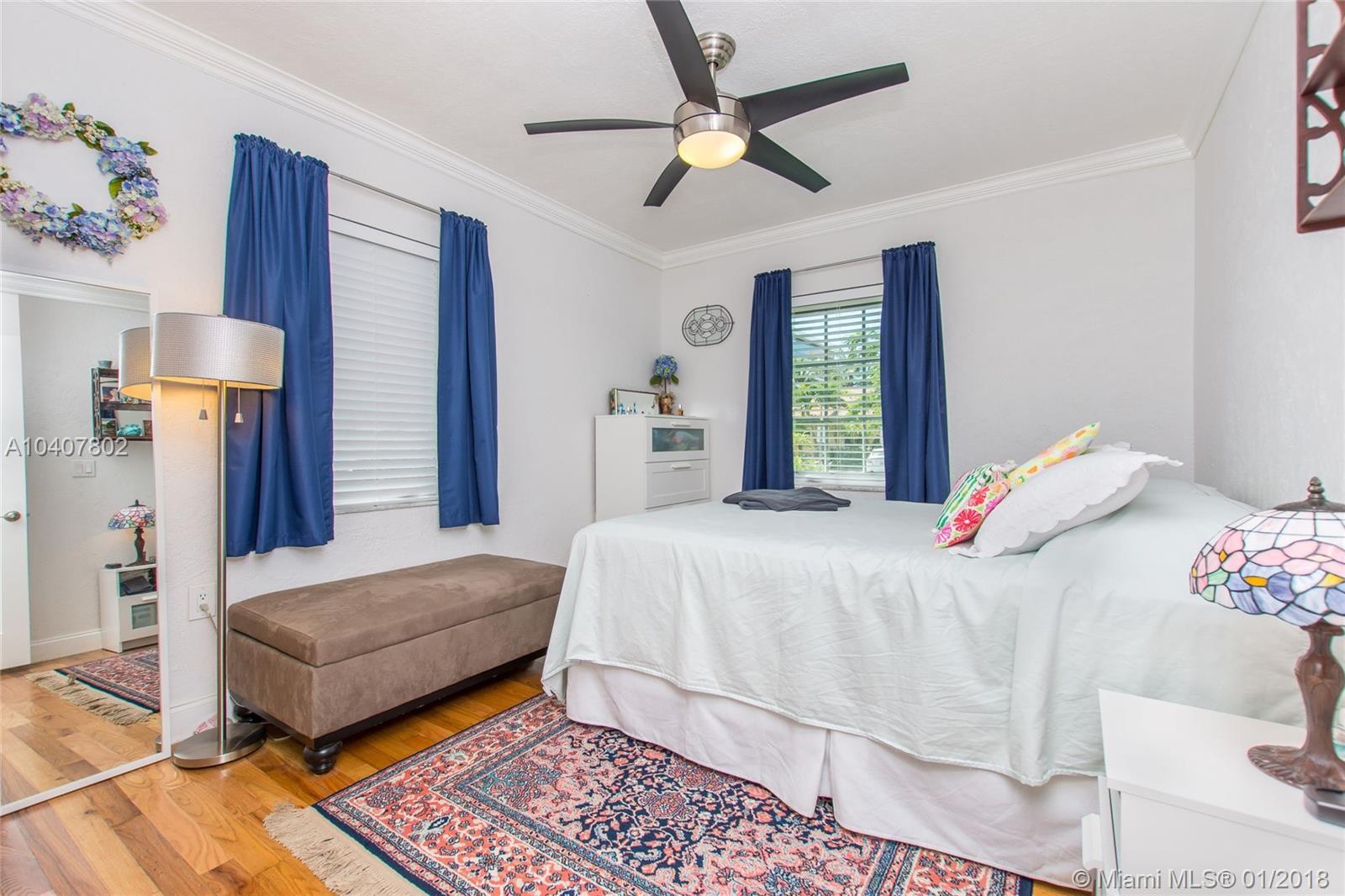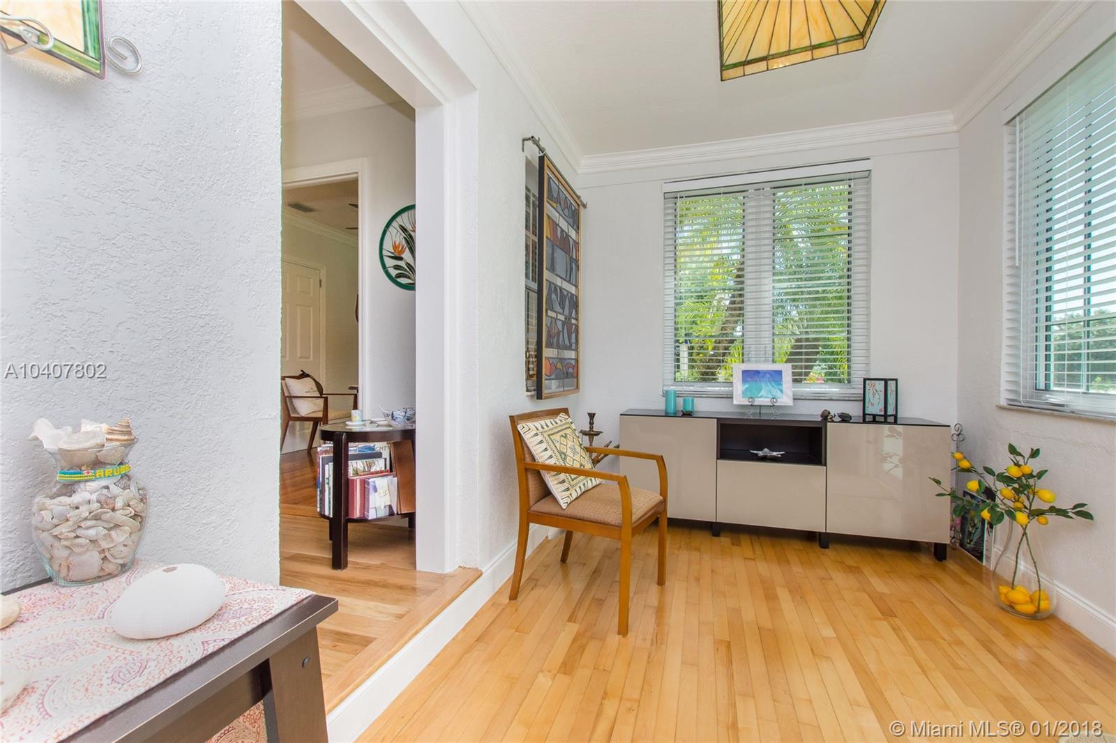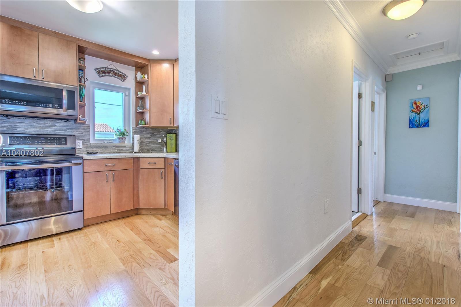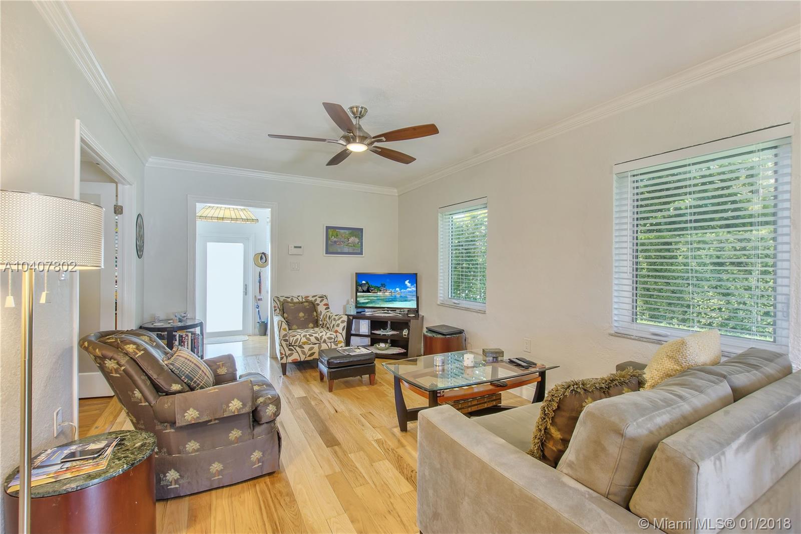 Charm, comfort, updates, and community await the savvy buyer for this three bedroom home set on landscape double lot nestled in a lovely neighborhood. Custom kitchen featuring geostone countertops and chic cabinets and lighting. Sun drenched foyer with maple floor. European style bathroom with porcelain tile shower and marble floor. New electrical 200 amp panel with underground connectivity from FPL. New HVAC unit sized for future home expansion. Oak hardwood floors through out BR, LR/DR. Additional 120 foot deck for entertaining. Impact windows and doors. Short walk to Coral Gables trolley and the Miami trolley stop is at the corner.
