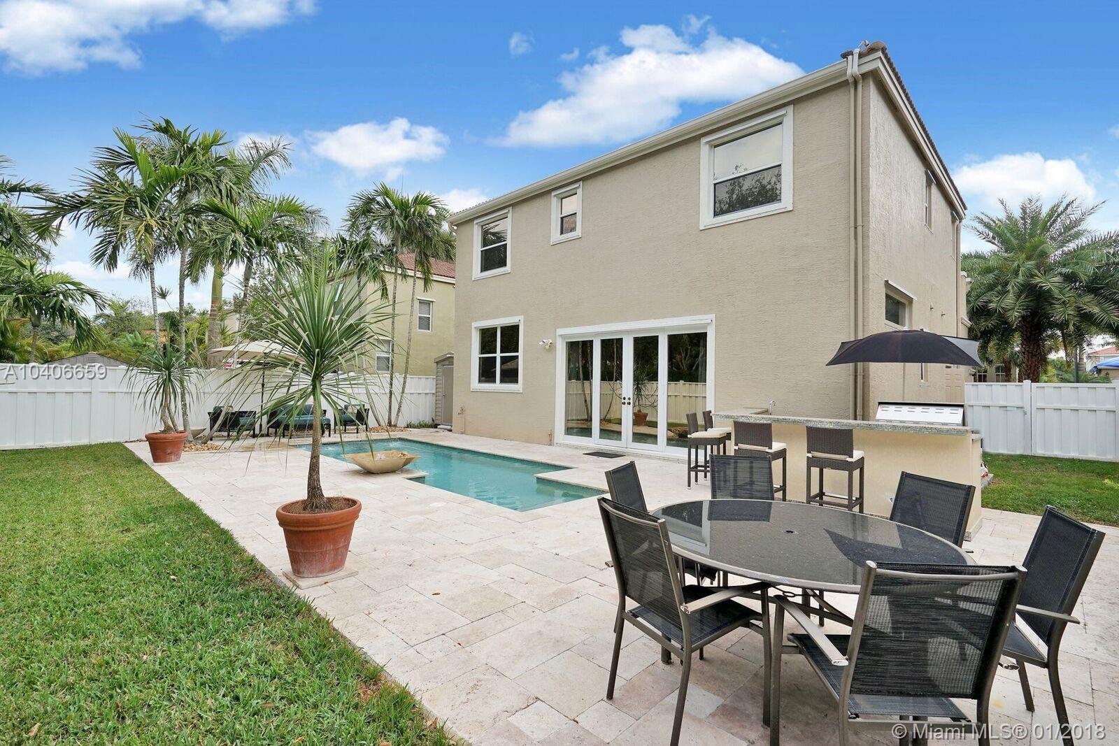 Gorgeous pool home in prestigious Riviera Isles.True pride of ownership with lots of quality upgrades.Large open eat-in kitchen with amazing custom made island Taj Mahal Quartzite countertop, dark chocolate air-brush finish Kitchen-craft cabinets and same countertops as the island in the entire kitchen.Professional Frigidaire Stainless Steel appliances including the wine cooler.Huge master bedroom with sitting area and balcony.All bathrooms are upgraded with Quartzsite countertops.The entire first floor is renovated with wood porcelain tiles the second floor is high-quality dark wood laminate.Quiet relaxing pool area covered by French pattern Travertine.Stylish outdoor kitchen with 5 burner grill, fridge, sink and granite top wet bar.This great house could be your HOME today.