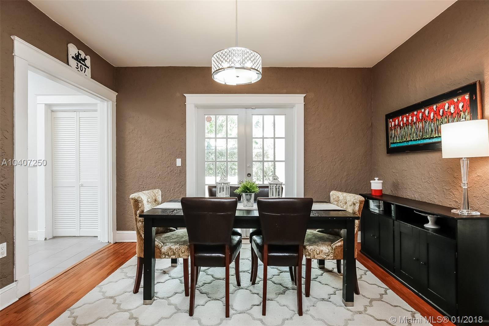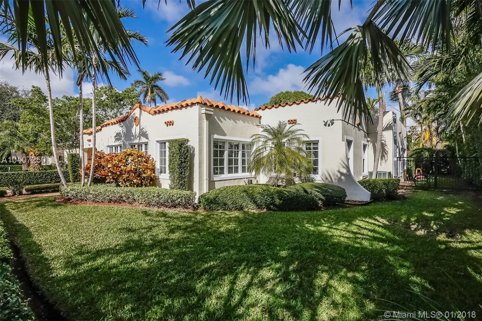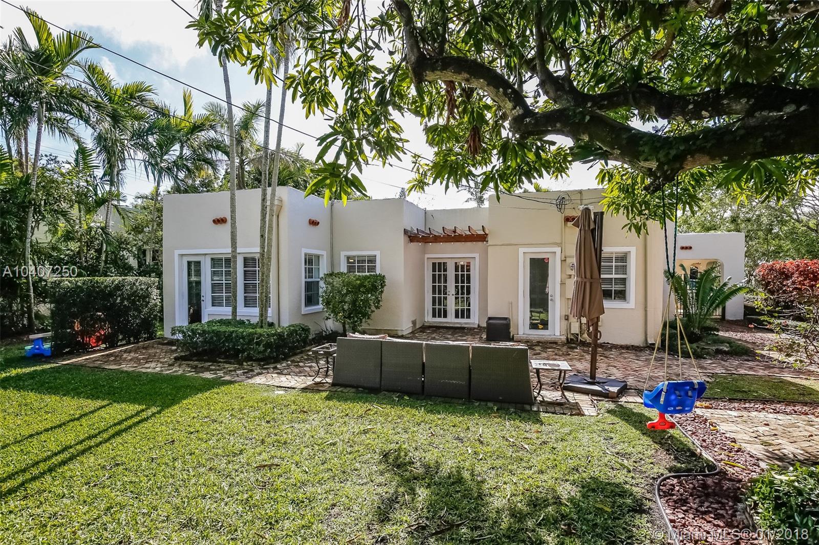 This bright and remodeled old-Spanish home features beautiful 1920s architectural details throughout with all the modern luxuries of today. Updates include reinforced impact windows and doors and a remodeled kitchen with a custom-built eat-in breakfast nook. Main house has 3 bedrooms/one bath, detached cottage/garage has an A/C wall unit with one bathroom. The home has great curb appeal with mature landscaping and lighting on a fenced 7,200 sq. ft. lot. There is plenty of room to expand, build a pool or possibly connect the main house to the back cottage. The neighborhood is very friendly and walkable with close proximity to restaurants & shops, as well as the Coral Gables Trolley making it an ideal starter or empty nester home.