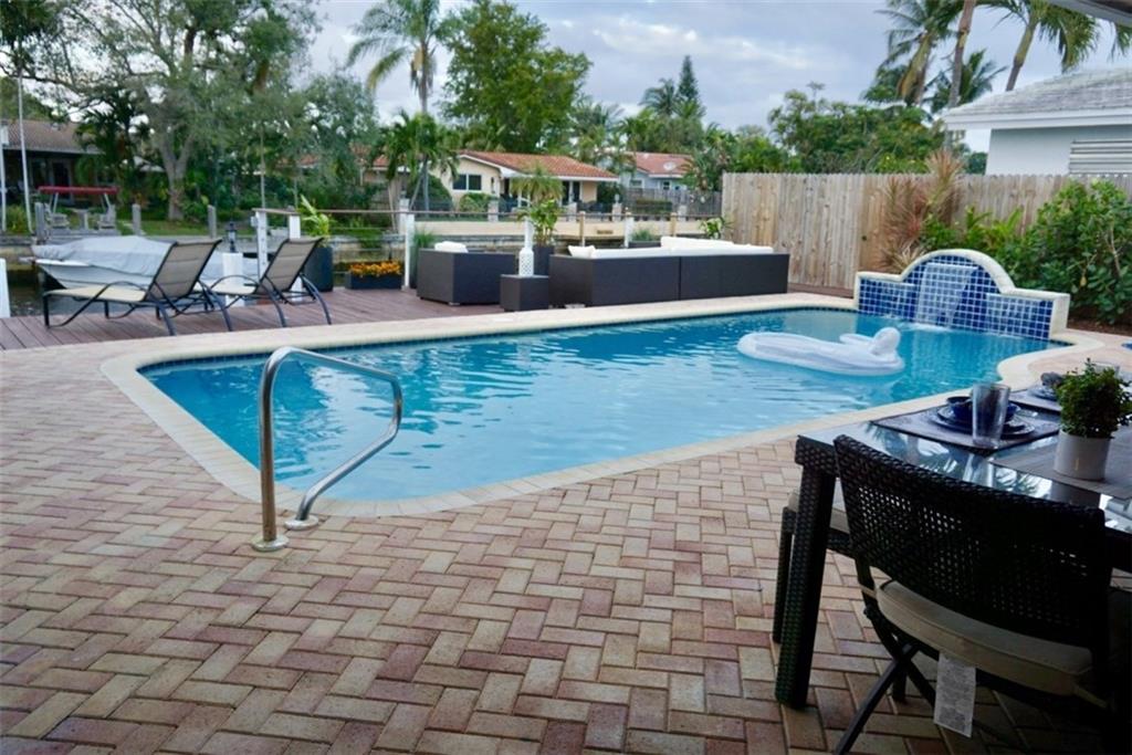 Beautifully upgraded waterfront 3-bed 2-bath home with open concept and modern finishes. Salt water pool, direct ocean access and private dock, porcelain plank flooring throughout, custom designer kitchen with oversized cooking island, impact windows and sliding doors, as well as paver driveway and landscaping. Cabana bath leads to pool. Split bedroom floor plan. Master bedroom has direct access to pool and features huge master bathroom and large walk-in closet. Huge indoor/outdoor entertaining space!