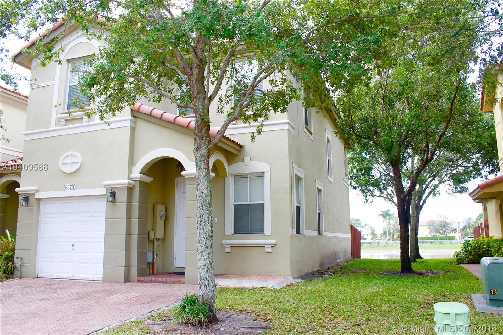 BEAUTIFUL 4 BEDS 2.5 BATHS TOWNHOUSE AT ANTILLES ISLANDS AT DORAL. CORNER UNIT WITH GREAT LAKE VIEW. ONE CAR GARAGE PLUS 2 CARS IN DRIVEWAY. VERY WELL MAINTAINED. COMMUNITY HAS A CLUB HOUSE WITH POOL, JACUZZI, TENNIS COURT, BASKETBALL COURT,PLAYROOM , GREAT "A" SCHOOLS.