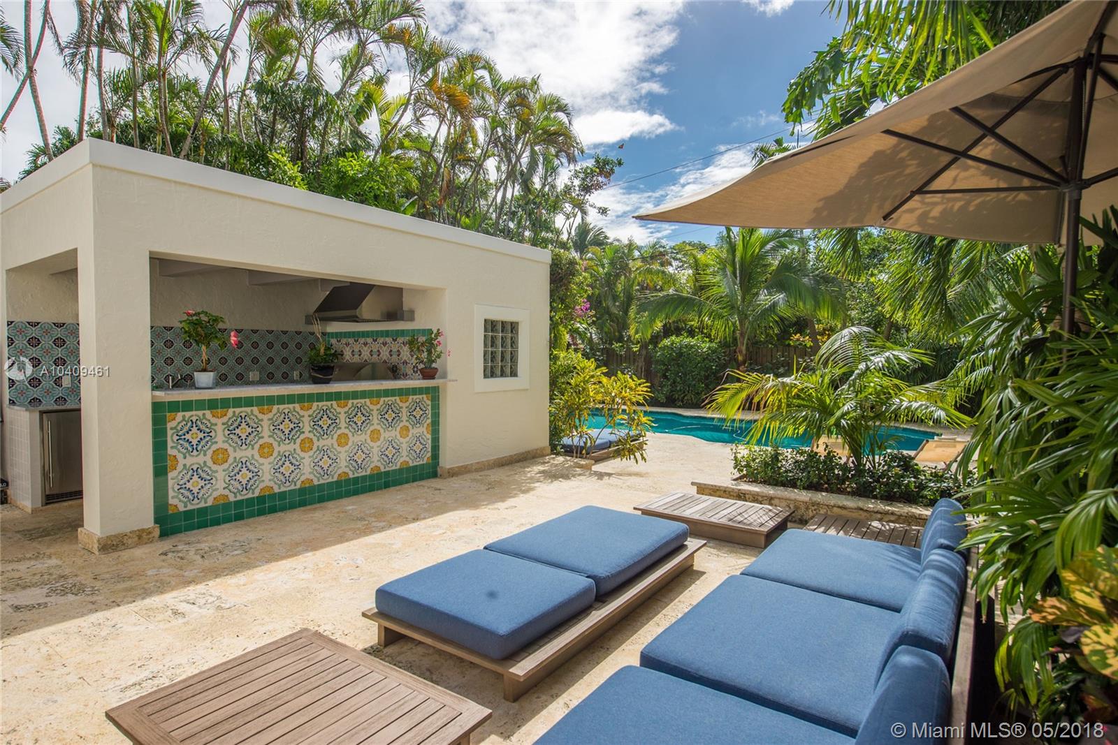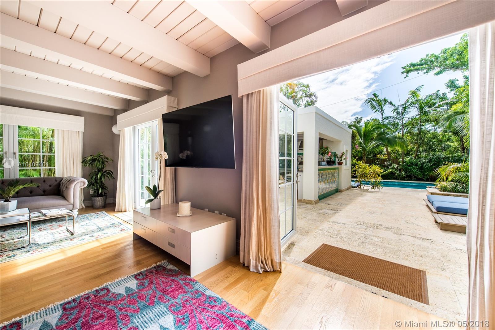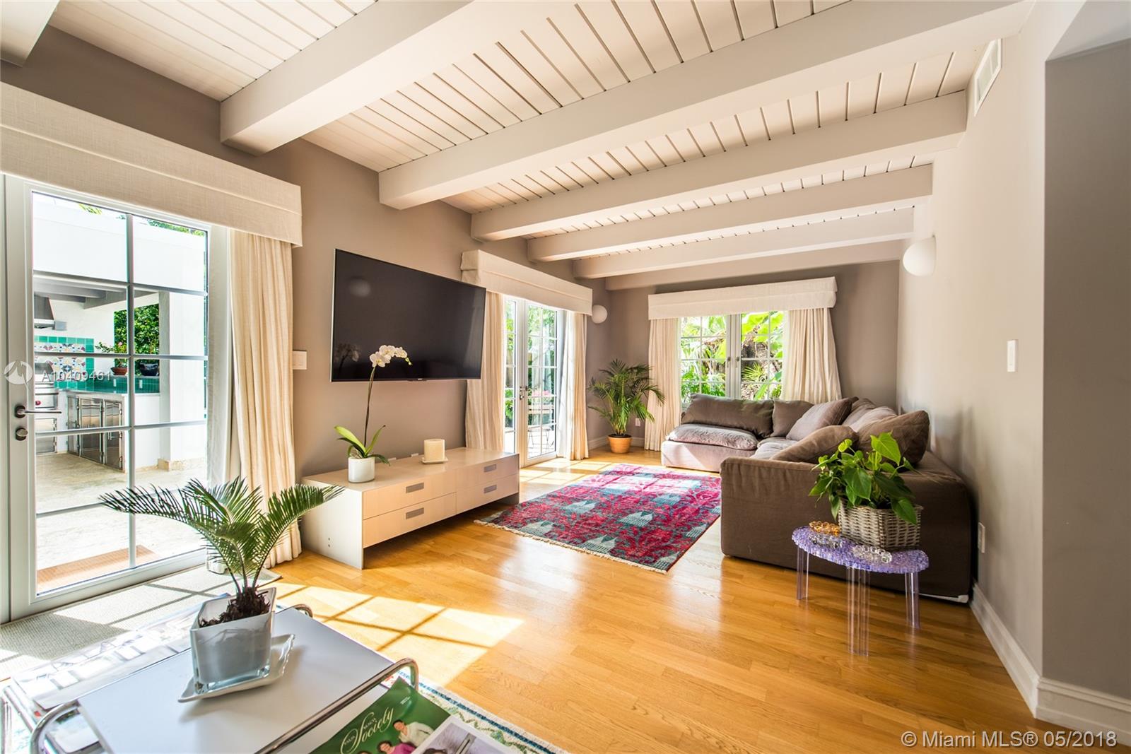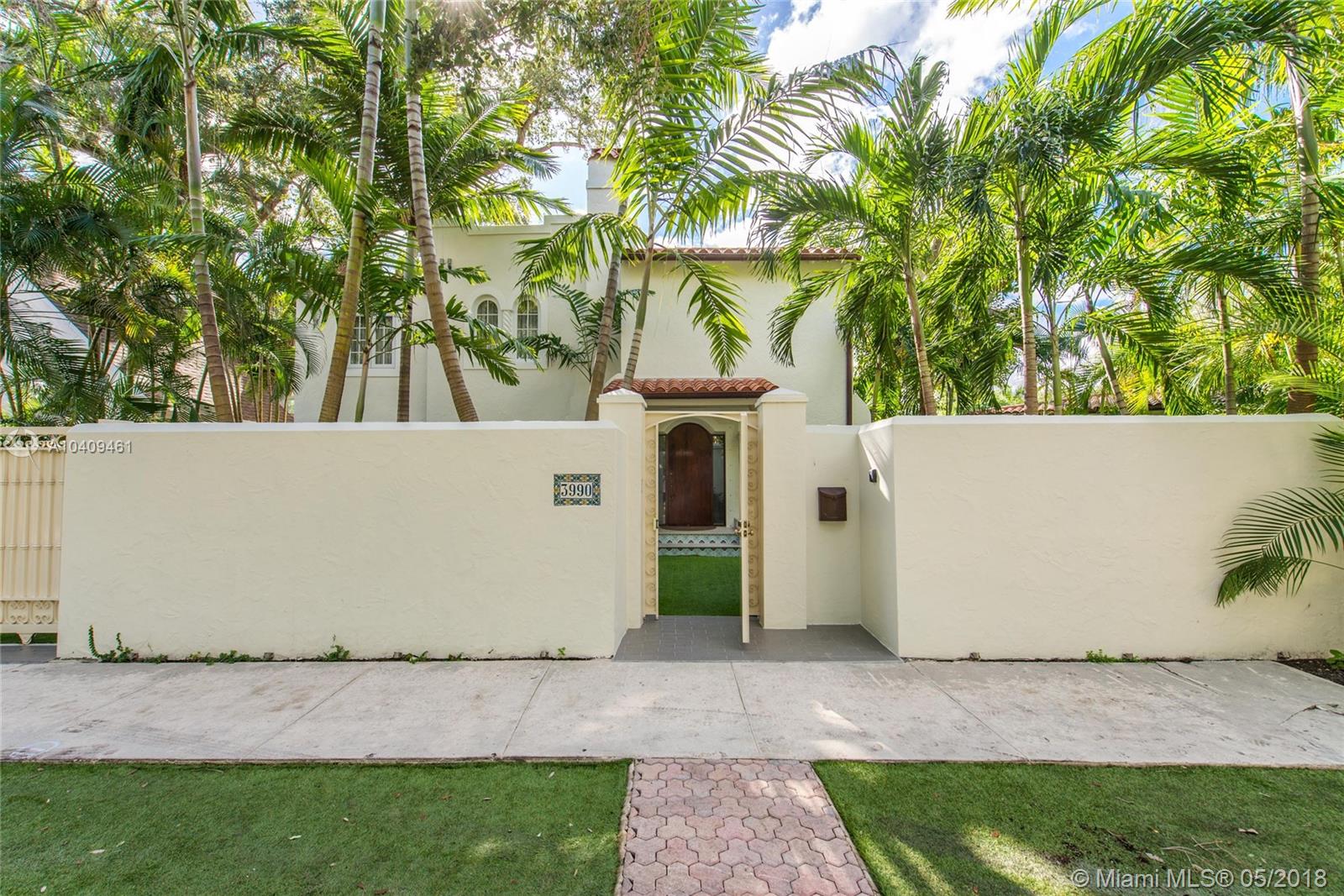 Stunning European-style villa set behind a privacy wall & gate that opens to a lush tropical garden.The home has been artfully restored & completely renovated to a rarely seen level of quality & style. Light-filled living spaces w/ a classic yet relaxed ambiance. Notable features include original fireplace, Berti wood floors, white beamed ceilings & impact glass throughout. Italian designer kitchen w/ Effeti wood cabinetry, Flos lighting and Sub-Zero & Wolf appliances. Luxurious master suite features separate sitting area & spa-like bath w/Antonio Lupi and Villeroy & Boch fixtures. French doors in the large family room, open to a resort-style outdoor space w/oversized pool surrounded by expansive terraces & summer kitchen.Free-standing 1/1 guest quarters complete this spectacular property.