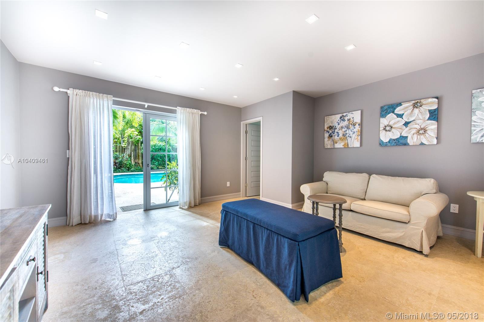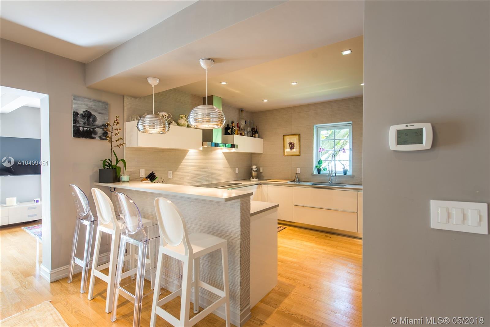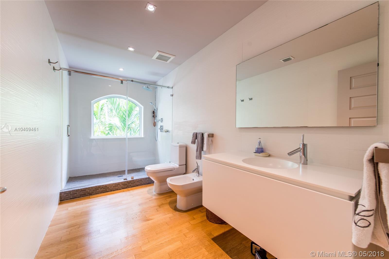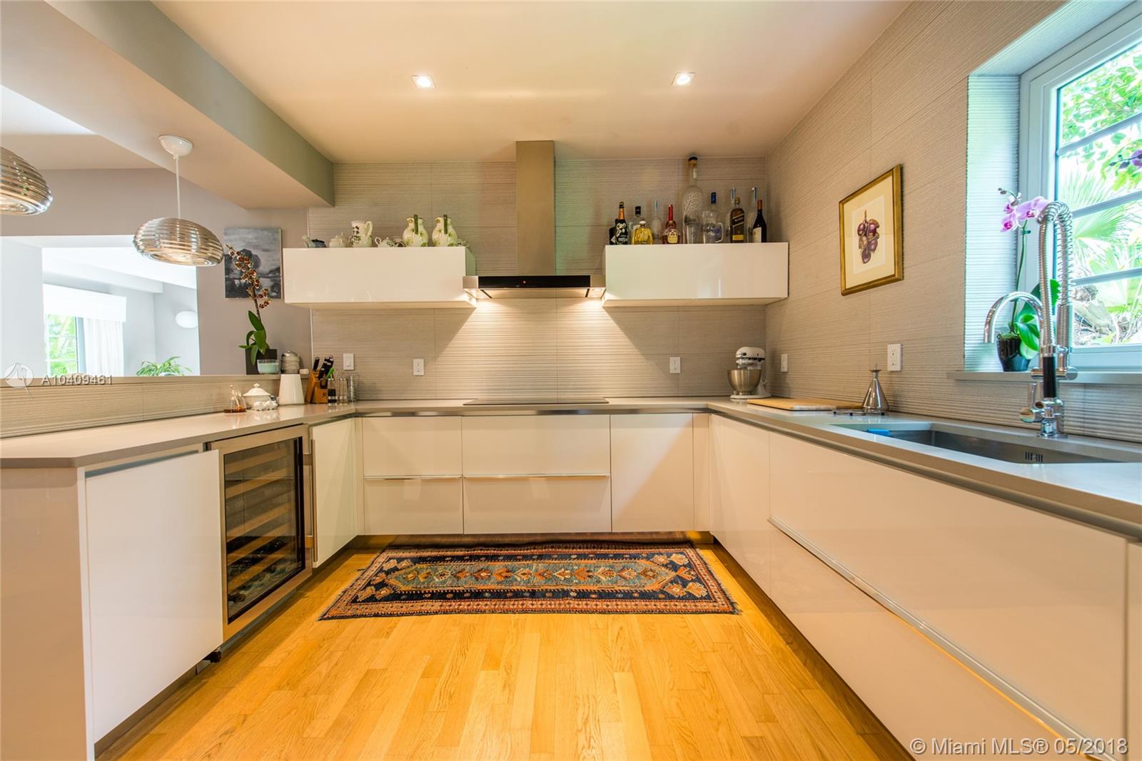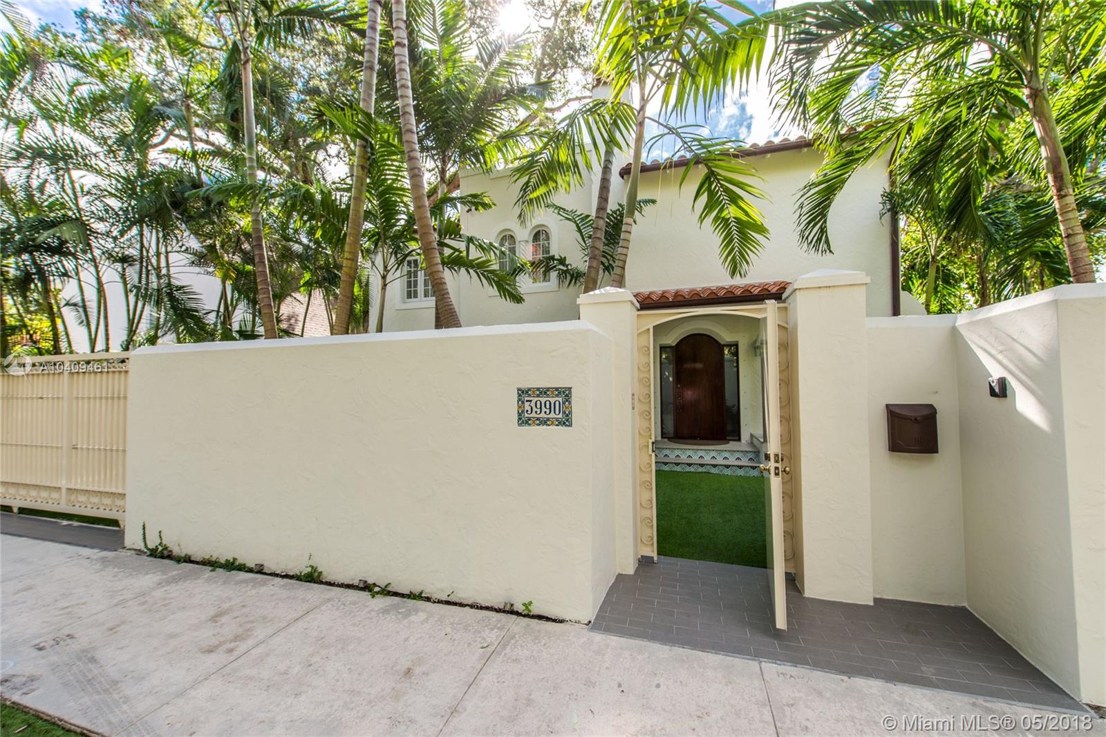 Stunning European-style villa set behind a privacy wall & gate that opens to a lush tropical garden.The home has been artfully restored & completely renovated to a rarely seen level of quality & style. Light-filled living spaces w/ a classic yet relaxed ambiance. Notable features include original fireplace, Berti wood floors, white beamed ceilings & impact glass throughout. Italian designer kitchen w/ Effeti wood cabinetry, Flos lighting and Sub-Zero & Wolf appliances. Luxurious master suite features separate sitting area & spa-like bath w/Antonio Lupi and Villeroy & Boch fixtures. French doors in the large family room, open to a resort-style outdoor space w/oversized pool surrounded by expansive terraces & summer kitchen.Free-standing 1/1 guest quarters complete this spectacular property.
