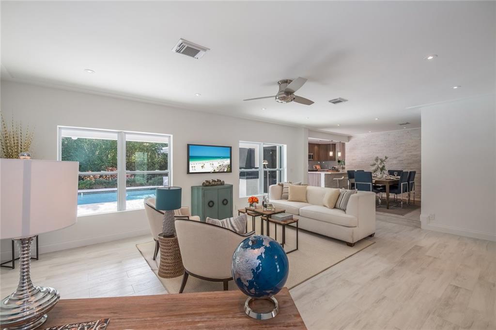 HUGE PRICE REDUCTION!! Completely remodeled luxury 4 bedroom, 3 bath pool home on an interior lot in prestigious Sunrise Intracoastal! New porcelain plank style wood floors throughout, open family room, formal dinning room & kitchen w/ breakfast bar. Designer kitchen with new custom cabinetry, SS appliances, quartz countertops & glass subway tile backsplash. Each bedroom features a walk-in closet and spacious room. Separate laundry room. Enjoy the outdoor Summer kitchen & private pool. Bayview Elementary!