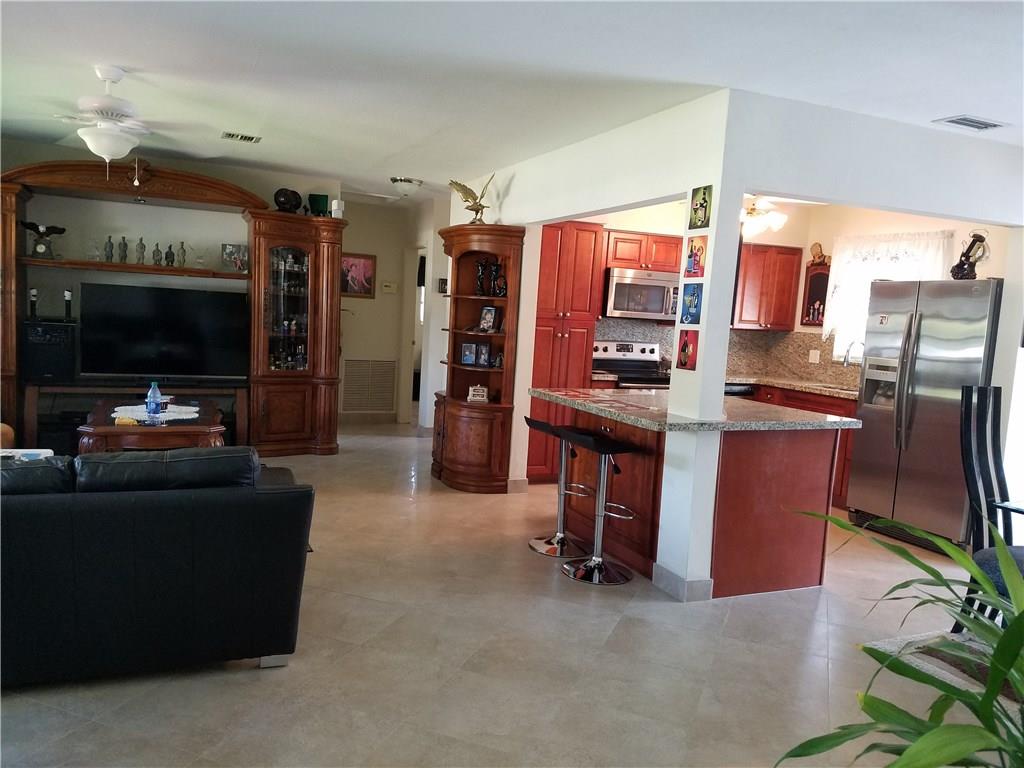 3/2 pool home with an open floor plan Great family oriented neighborhood with New Roof installed Oct. 2017. Beautifully remodeled open bright kitchen features Granite countertops/backslashes, Custom made Cabinets plus Extra large island witch provides a nice eating area. New Rectified tile floors throughout.Ceiling fans in all rooms. Big utility / laundry room with extra storage. Spacious screened patio overlooks the pool. Over sized stamped concrete driveway parks your Boat / RV. Minutes from beach.