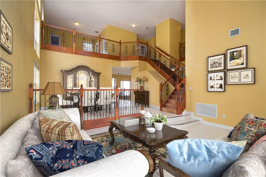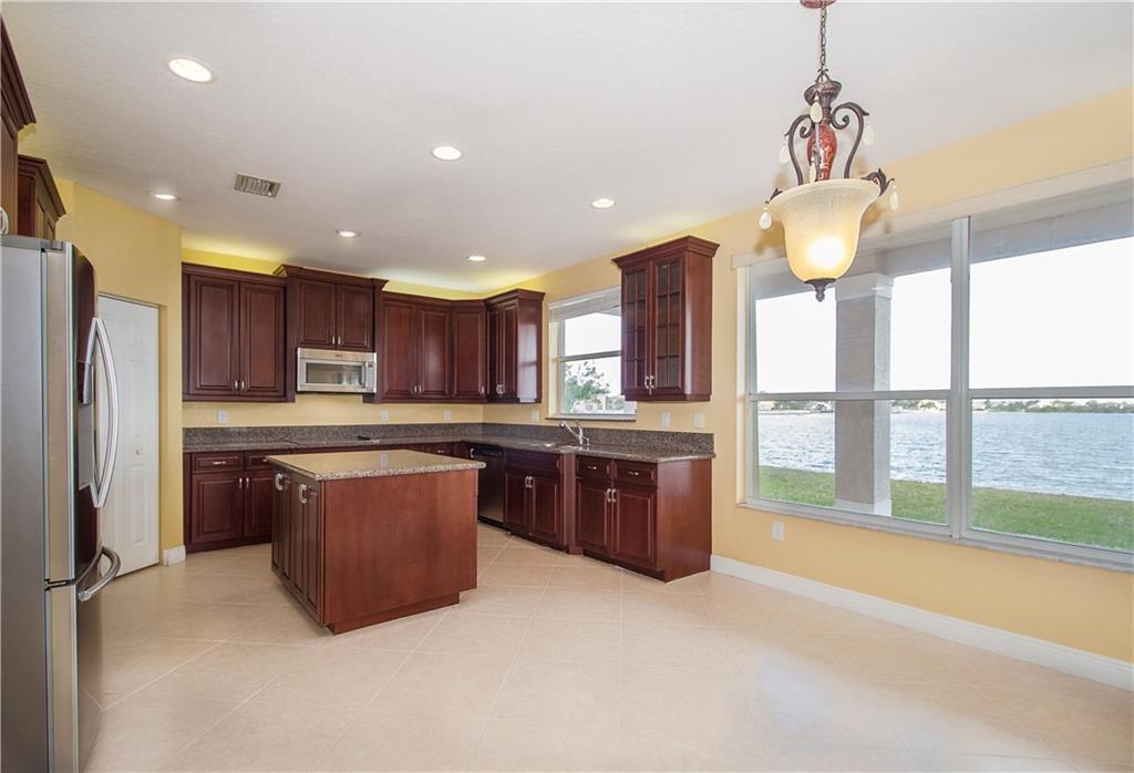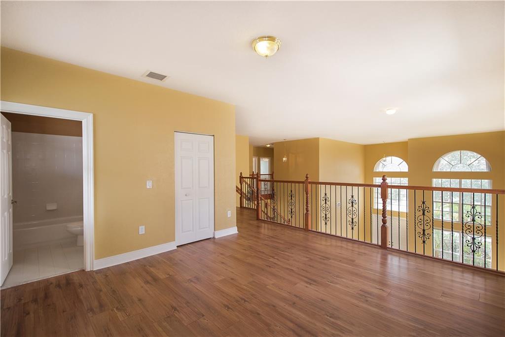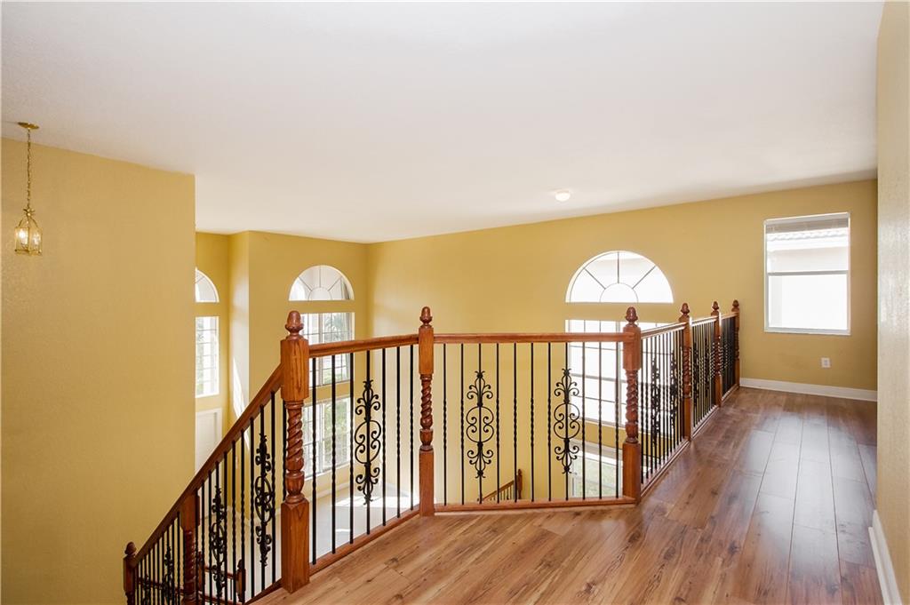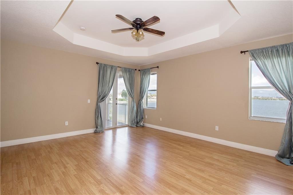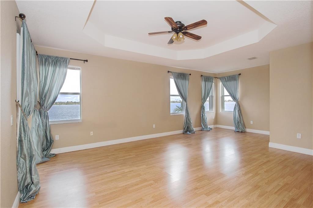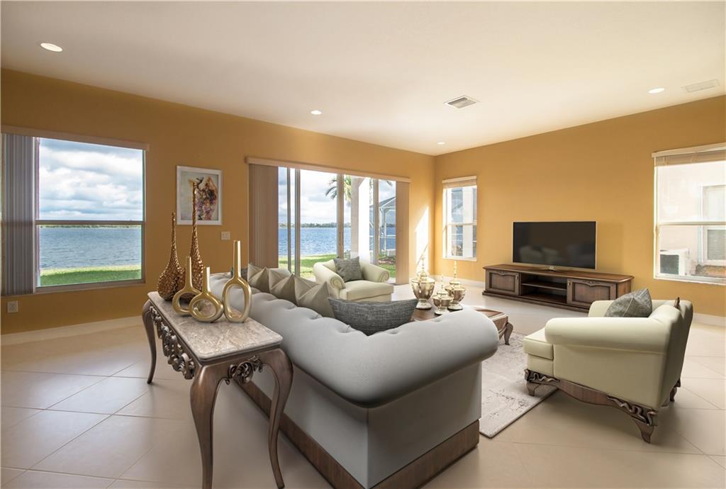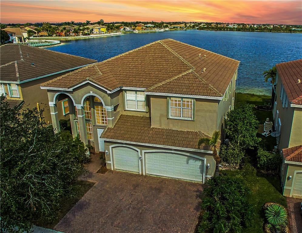 Breathtaking mile wide lake views! You will be amazed as you enter the home to soaring two-story high ceilings! Home is completely upgraded 5 beds 4 full baths plus an open loft. Huge master bedroom with sitting area, two walk-in closets, and a balcony!! Gorgeous wrought iron railings. Gourmet kitchen with stainless steel appliances, granite countertops, real wood cabinetry and center island. All new wood laminate flooring on stairs and upper level. Home is protected by accordion shutters and home security system.