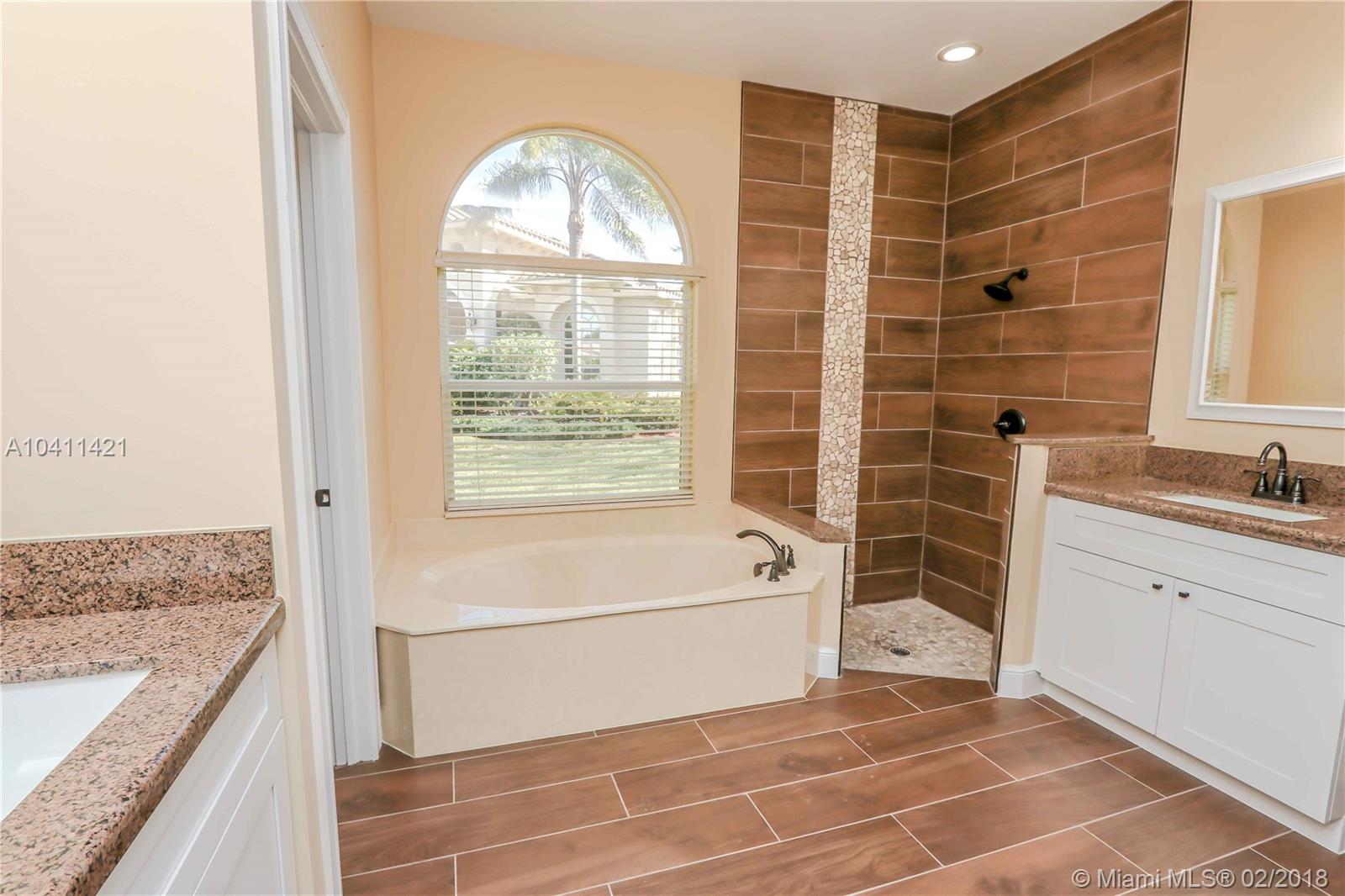 This totally renovated Courtyard model Pool home in Prestigious Weston Hills Country Club is a dream home for a golfer or for anyone looking for a turn key remolded home with a 1 bedroom 1 bathroom guest house. 3 Bedrooms 2 bathrooms on 1st floor including master. 3 Bedrooms 2 bathrooms upstairs. New marble floors New Kitchen New appliances. Central Vac Hurricane Protection. Property also has both backyard lake view and private courtyard pool area great for entertaining. Home is located in the prestigious subdivision "Montclaire" which only has 53 homes. Close to Weston Town Center Great restaurants and shopping. A RATED WESTON SCHOOLS a +...