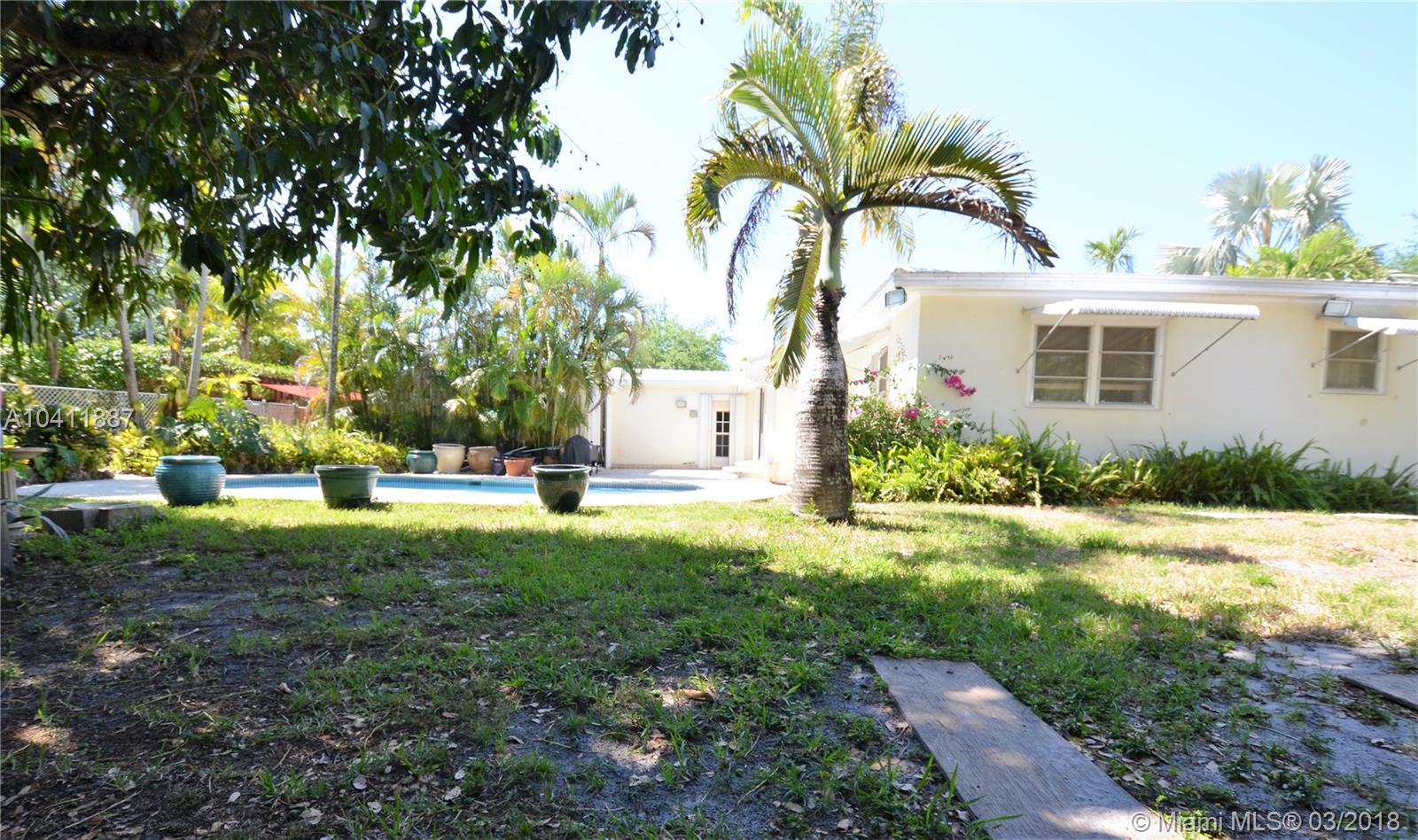 Wonderful pool home nestled on a large corner lot in the heart of Central Miami Shores! Featuring a vaulted wood ceiling in the family room that overlooks a large backyard and newly resurfaced pool. Added features include two master suites, hardwood floors, gas range and an expansive utility room which can easily be converted to a fourth bedroom or large gourmet kitchen. Two car garage, large fruit trees. Walk to downtown shops, farmer's market and restaurants. Newer concrete roof and A/C. Adjusted Sq.Ft. is 2,295 per tax roll.