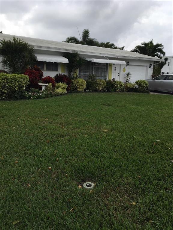 Well maintained 2/1 on large corner lot. Screened in porch opens to tropical backyard setting. The original retro kitchen and appliances and vintage bath are in new condition, the on-trend look and tropical feel throughout makes this house move-in ready. Room for 2nd bathroom. 55+ Community, Association fee includes, lawn maintenance, house painting, 2 pools, golf course, club house, courtesy bus, water/sewer + more