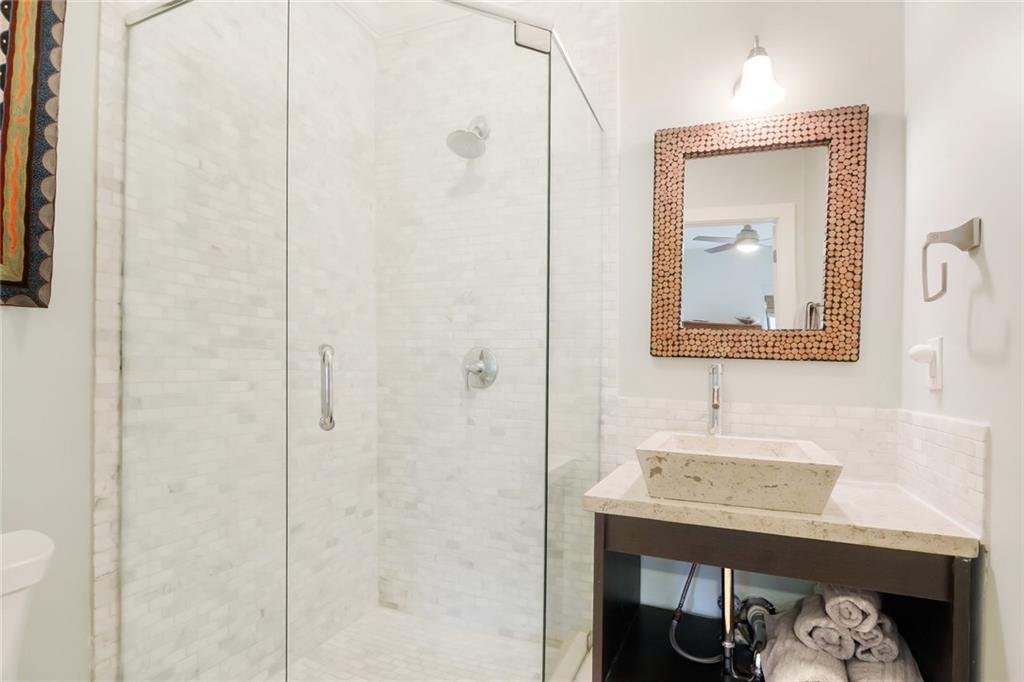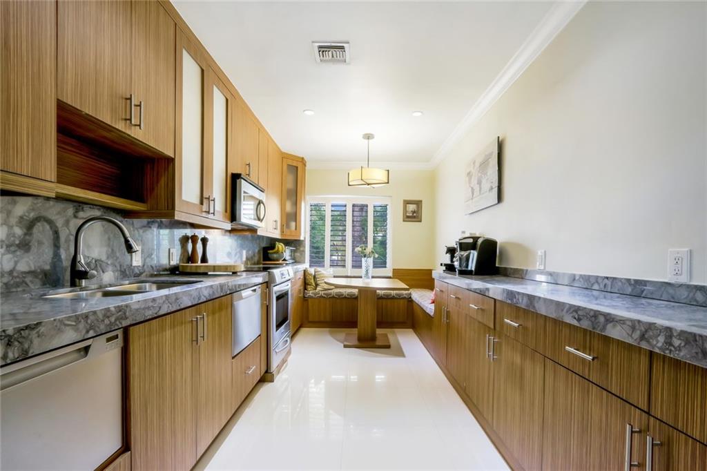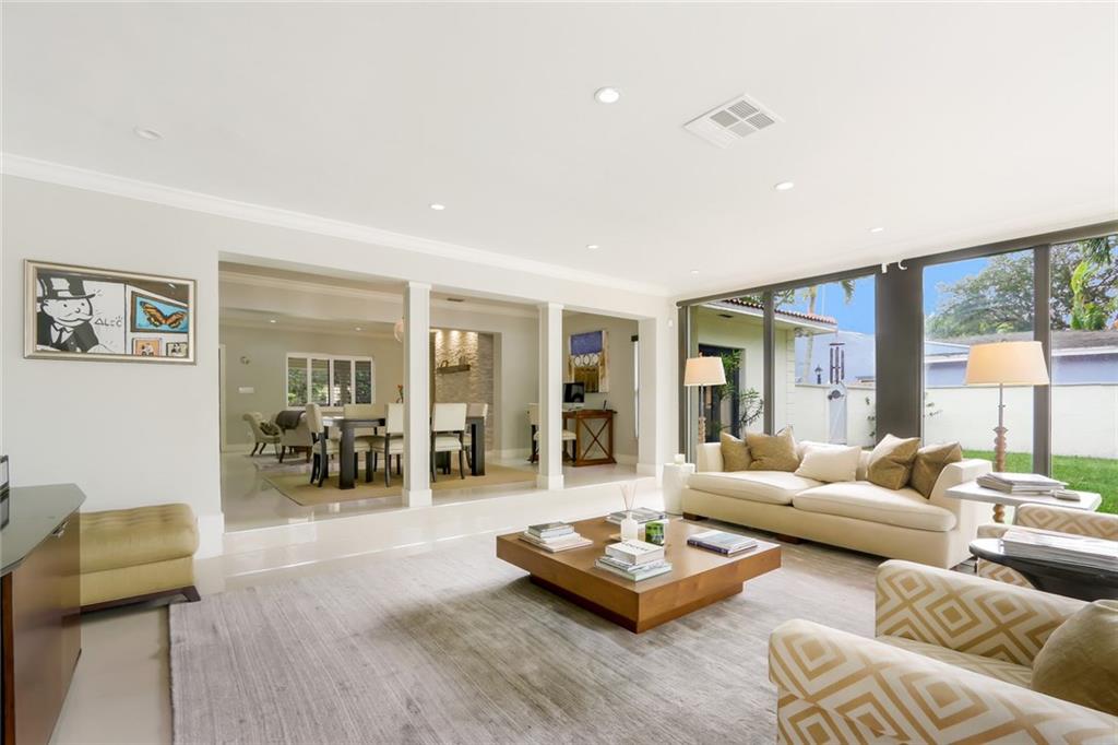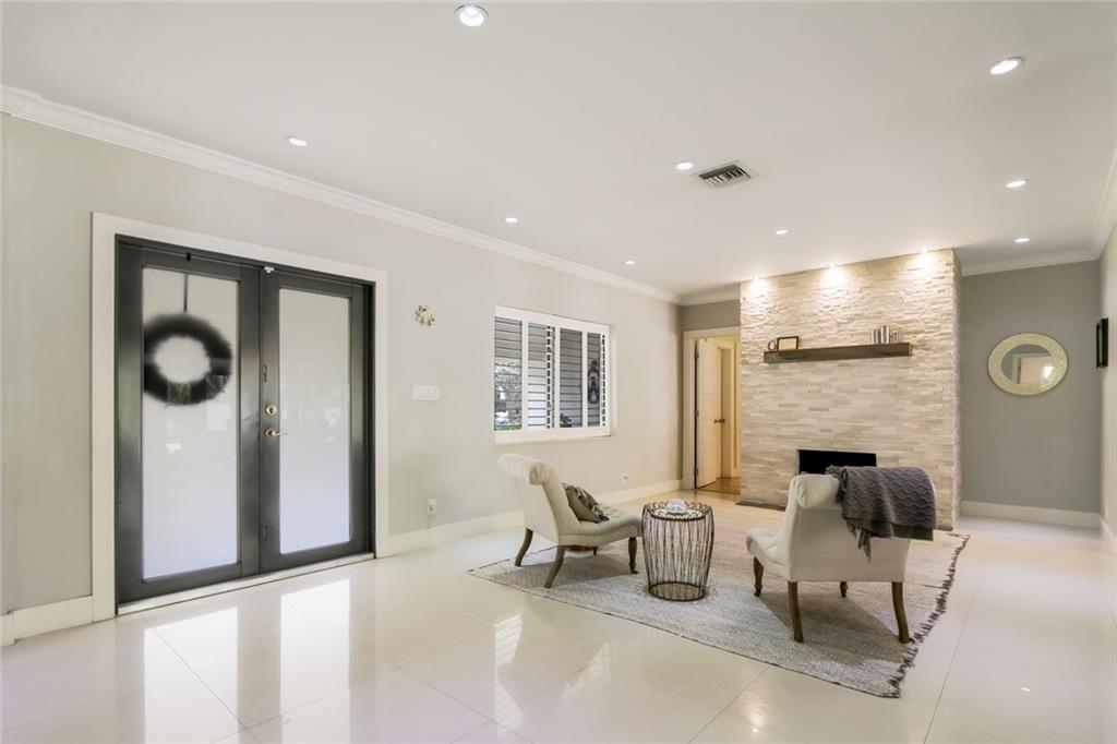 Stunning Victoria Park 4BR/4BA pool home on double lot. Welcoming front porch overlooks tree-lined street. Outdoor retreat with solar-heated saltwater pool, patio for entertaining, and green space. Contemporary open floor plan features floor-to-ceiling impact windows (with electric solar shades), LED lighting, stacked stone fireplace, split bedrooms. Well-appointed kitchen with banquette seating. Walking distance to shopping and dining.