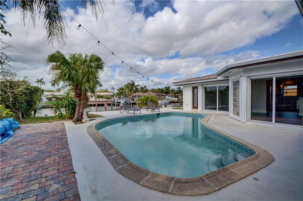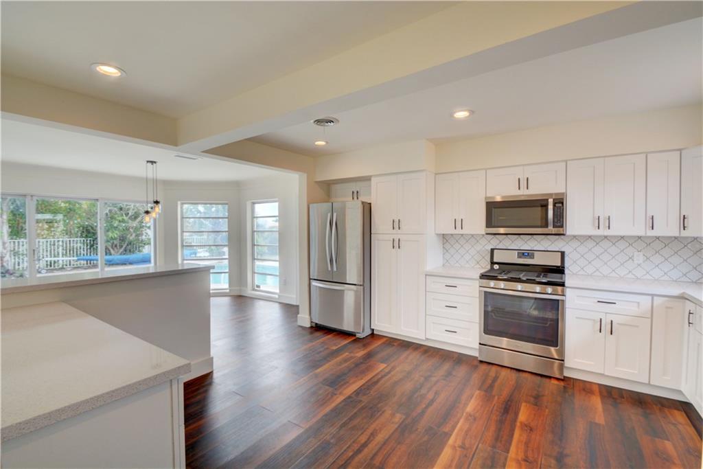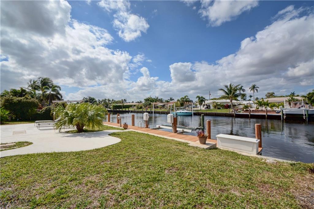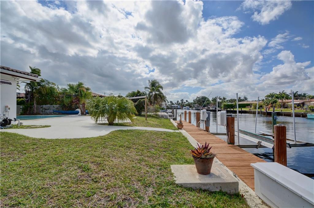 PRICED AT APPRAISED VALUE View the pool & waterfront from every room NEW kitchen with quartz counter tops, NEW Whirlpool s/s appliances 4 burner gas stove,NEW LG washer and dryer,BRAND NEW water heater, a/c unit w UV cleaning system & nest thermostat NEW bathrooms w/quartz counter tops, master bath is also pool cabana bath.New vinyl wood flooring throughout, hurricane impact garage door and shutters.Pool area drilled for child gate.Dock you boat, put up your hammock,plug in your spa and enjoy the view!