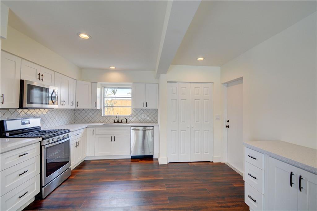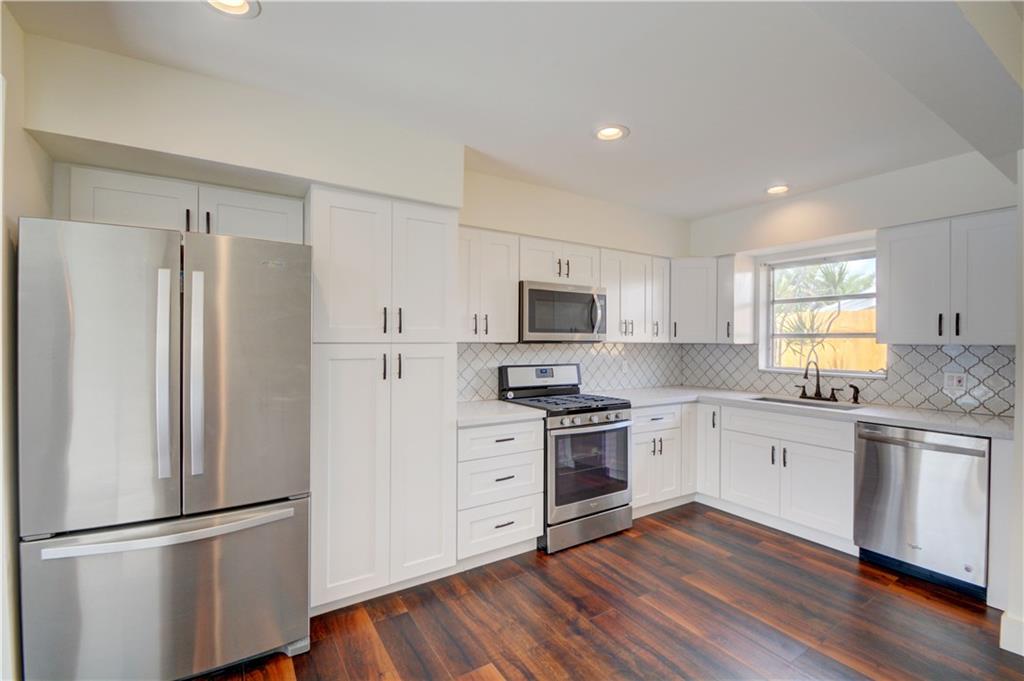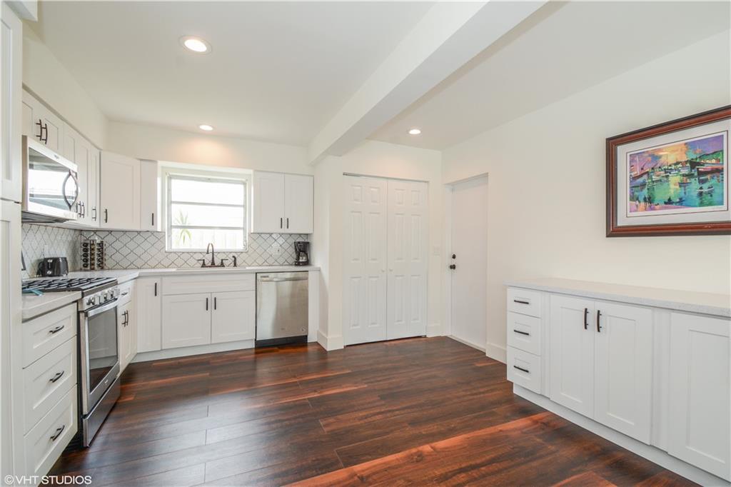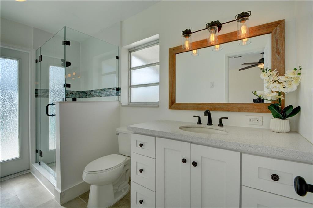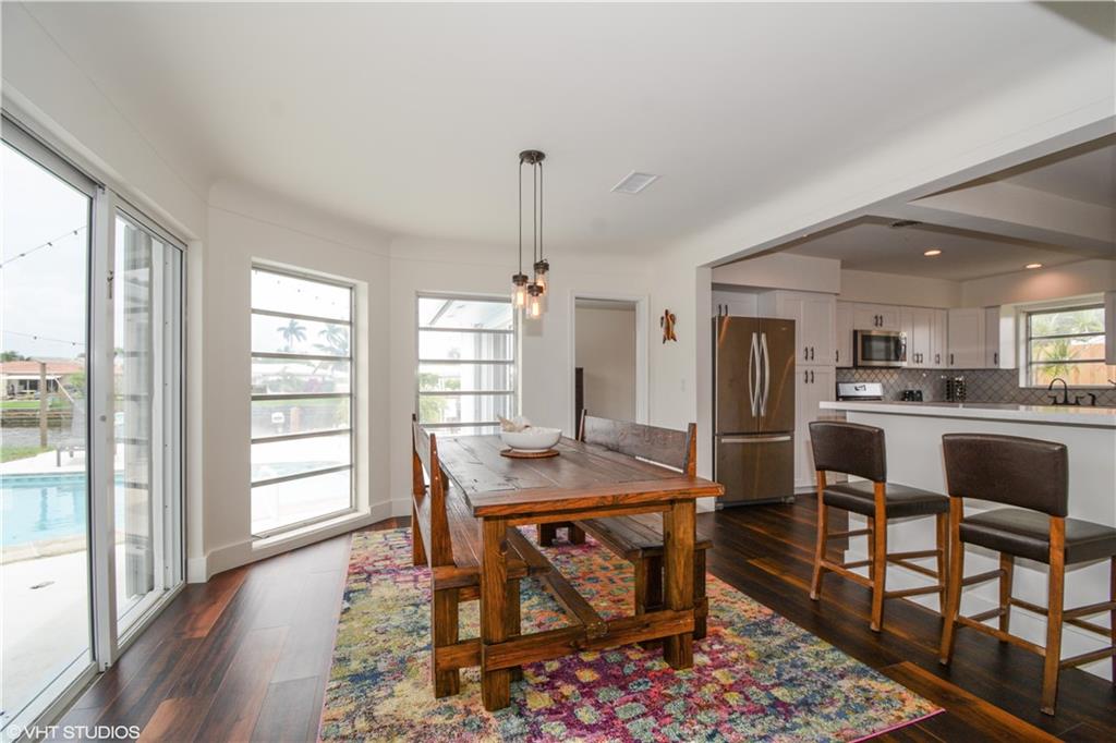 PRICED AT APPRAISED VALUE View the pool & waterfront from every room NEW kitchen with quartz counter tops, NEW Whirlpool s/s appliances 4 burner gas stove,NEW LG washer and dryer,BRAND NEW water heater, a/c unit w UV cleaning system & nest thermostat NEW bathrooms w/quartz counter tops, master bath is also pool cabana bath.New vinyl wood flooring throughout, hurricane impact garage door and shutters.Pool area drilled for child gate.Dock you boat, put up your hammock,plug in your spa and enjoy the view!