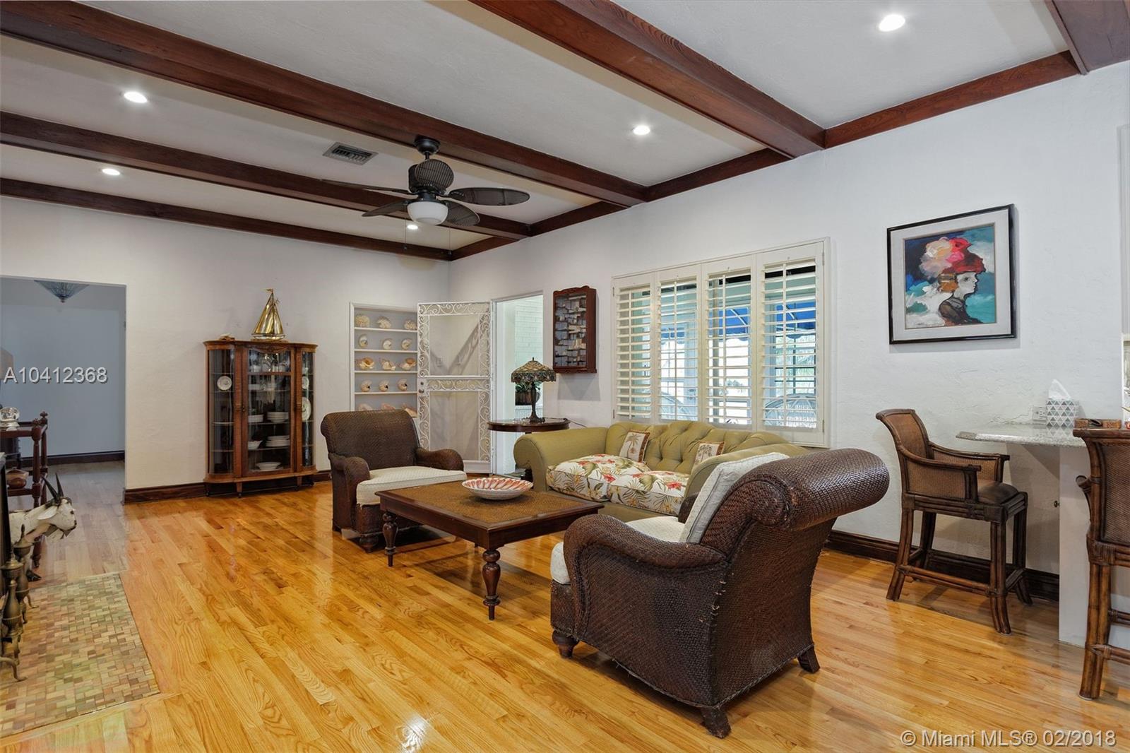 4 BEDROOMS & 3 FULL BATHS IN MIAMI SHORES; HUGE LOT, MORE THAN 20,000 SQ FEET. AMAZING LOCATION, WALK TO COMMUNITY CENTER, GOLF COURSE & KIDS WATERPARK. BIG OUTDOOR SPACES WITH BUILT-IN BBQ, POOL & KOI POND. COVERED FRONT PORCH, BIG LIVING AREA THAT IS OPEN TO THE KITCHEN. LIVING ROOM HAS FIREPLACE & WOOD BEAMED CEILINGS; ORIGINAL HARDWOOD FLOORS. FAMILY ROOM HAS WOOD CEILINGS & OVERLOOKS POOL & KOI POND. UPDATED KITCHEN WITH QUARTZ COUNTER TOPS, GAS COOKTOP, WINE COOLER & DINING BAR. NATURAL GAS, INSIDE LAUNDRY AND STORAGE AREA, DEN AND GREAT STORAGE.