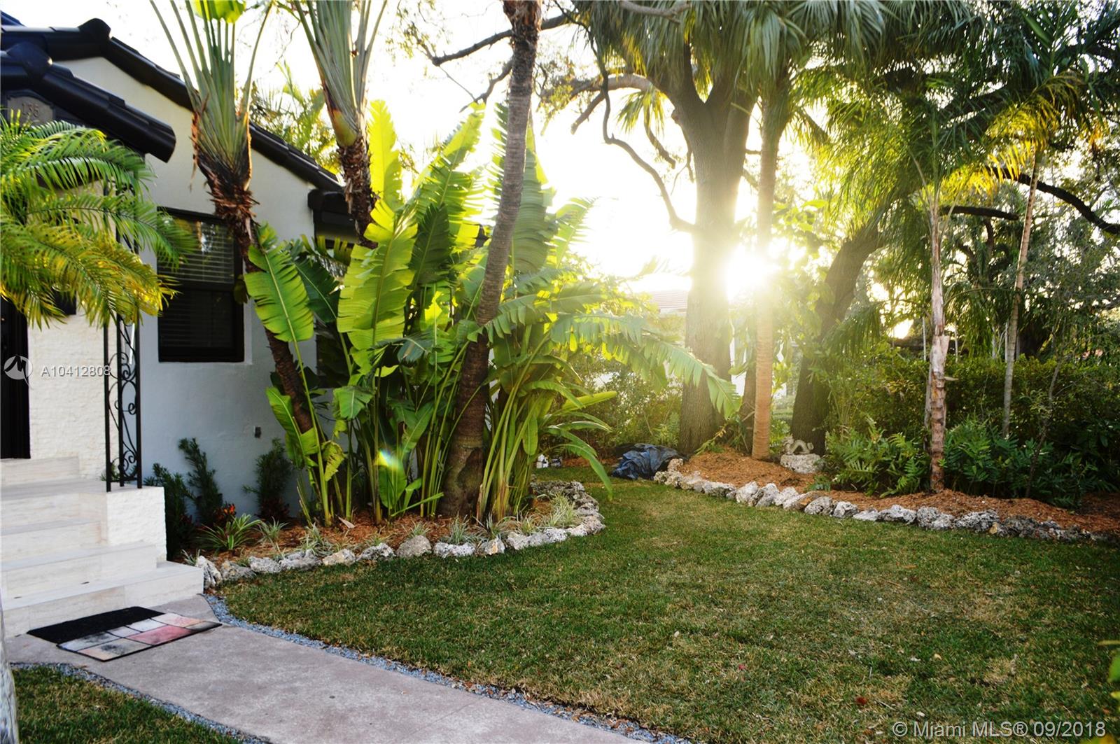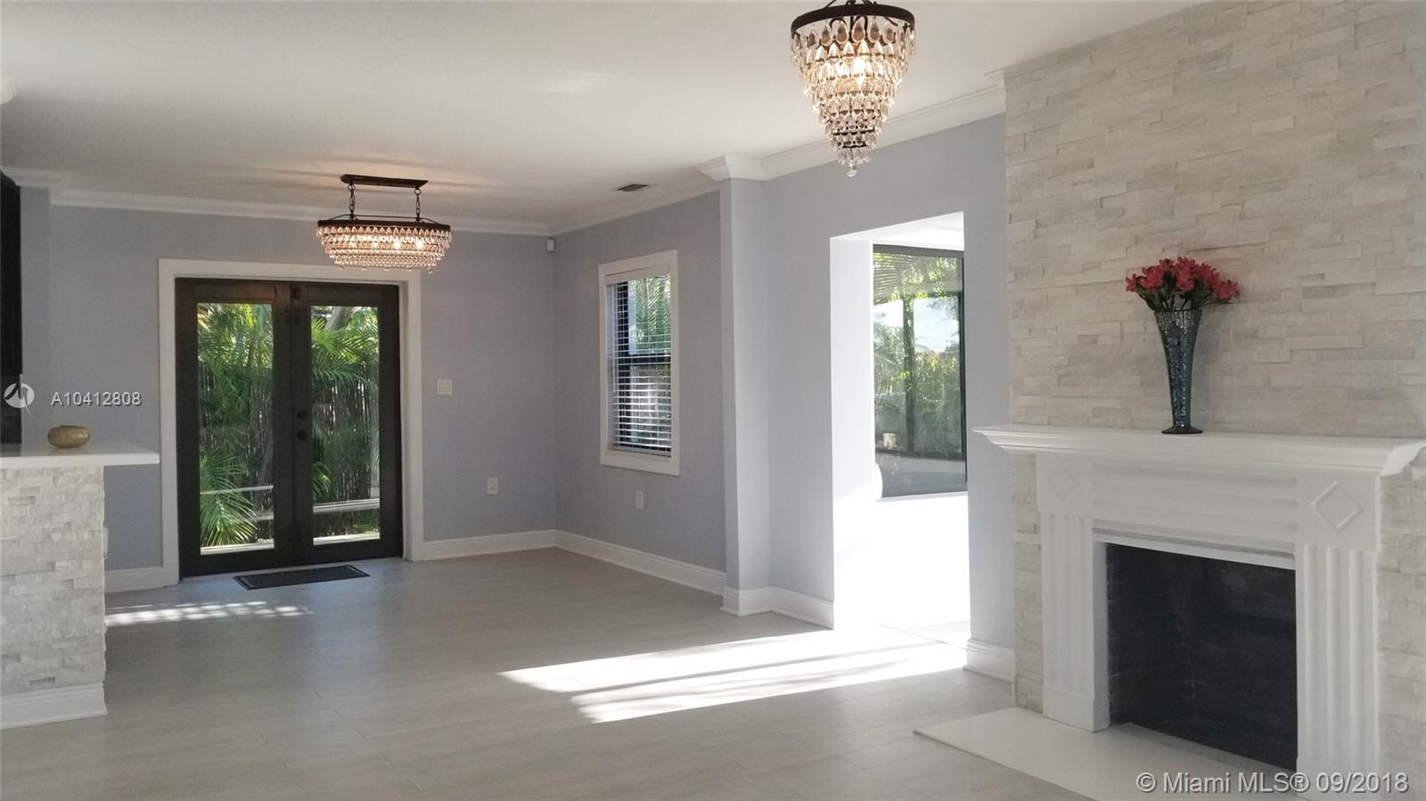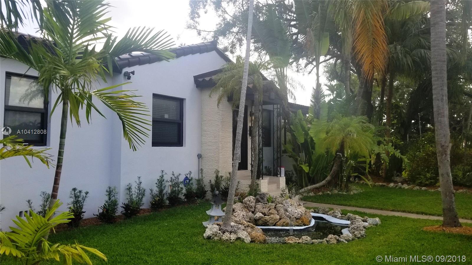 Best Priced home in Coral Gables! Beautiful, bright, spacious, & elegant living areas with quartz fireplace & chandeliers. Fully remodeled & upgraded home! Features: Open kitchen w solid wood cabinets, stainless steel appliances & quartz counters. Aqua Guard wood floors throughout in light gray hues, finished with white base boards & crown moldings. Home has hurricane impact windows & doors overlooking lush gardens all around & large deck for entertainment. Plenty of room for pool or expansion up to 12 feet on East side. Prior proposed addition plans available in attachments & also included in photos. Please note: Parking in front allowable or use existing driveway on Douglas Side. Too many upgrades to mention as no expenses were spared! Truly fabulous home you will love. Don't miss it!