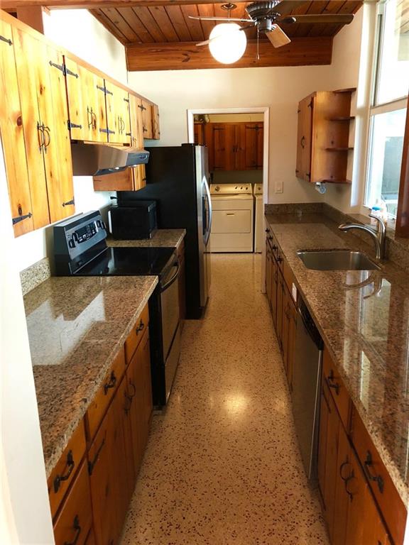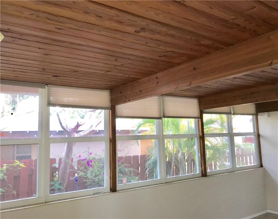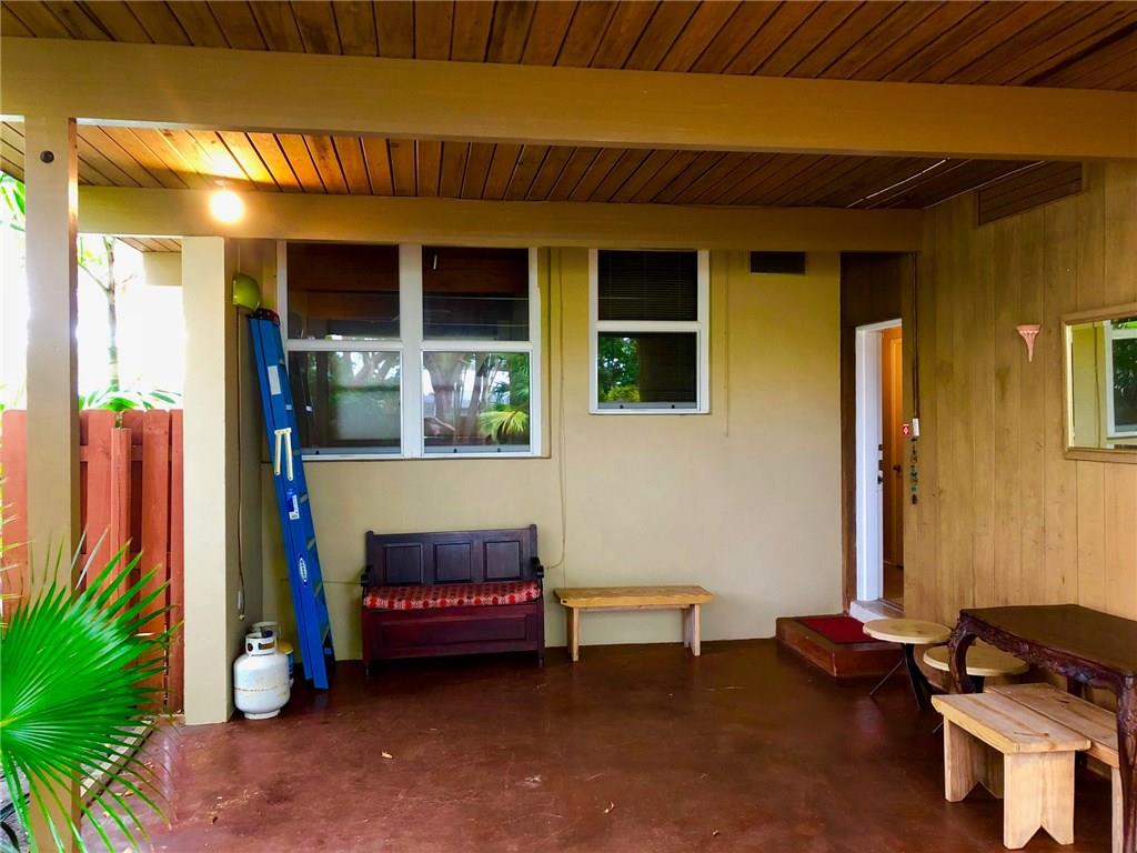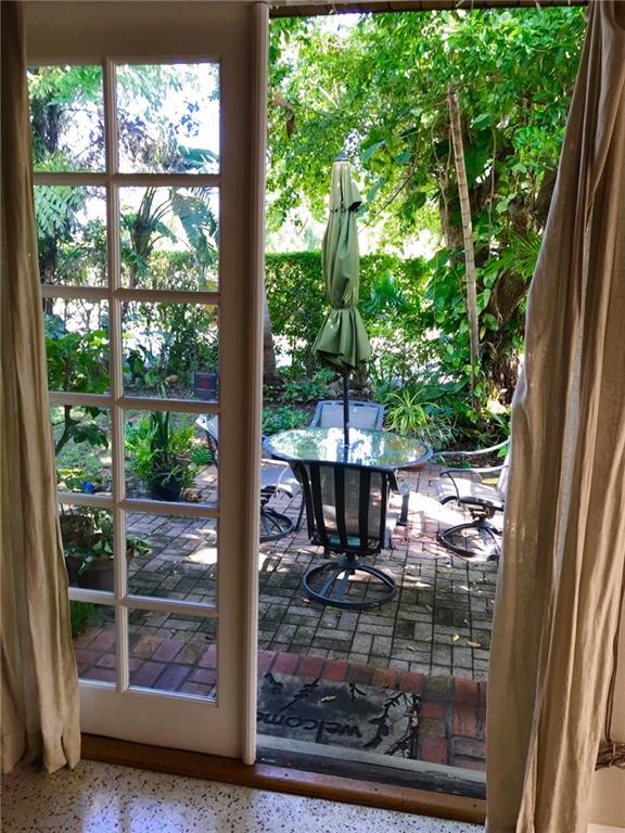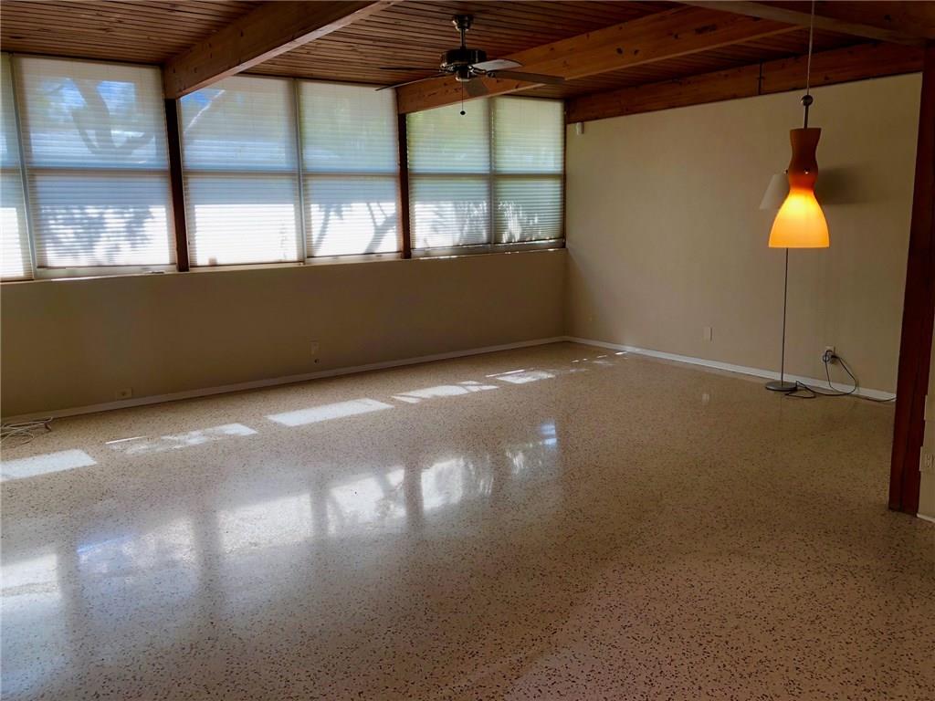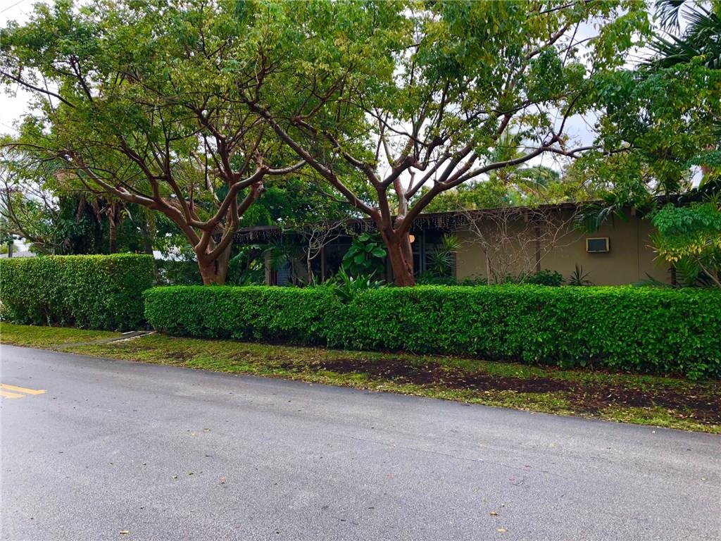 Charming mid century at its best! Corner lot, spacious 2/2 with an office, designed by legendary William Vaughn. Featuring terrazzo floors, granite counters, impact glass, pine woodwork, many great out door areas, covered parking, pavers all in a gardner like setting. This home has a new roof and is turn key! Don't let the thick vegetation fool you! Truly a rare find!