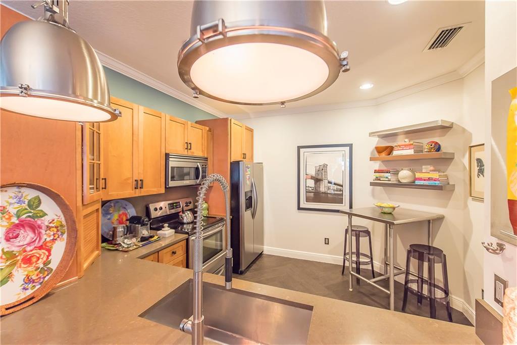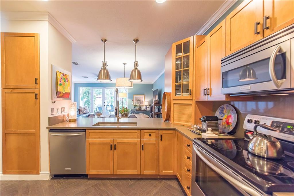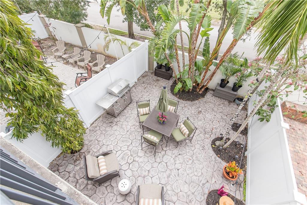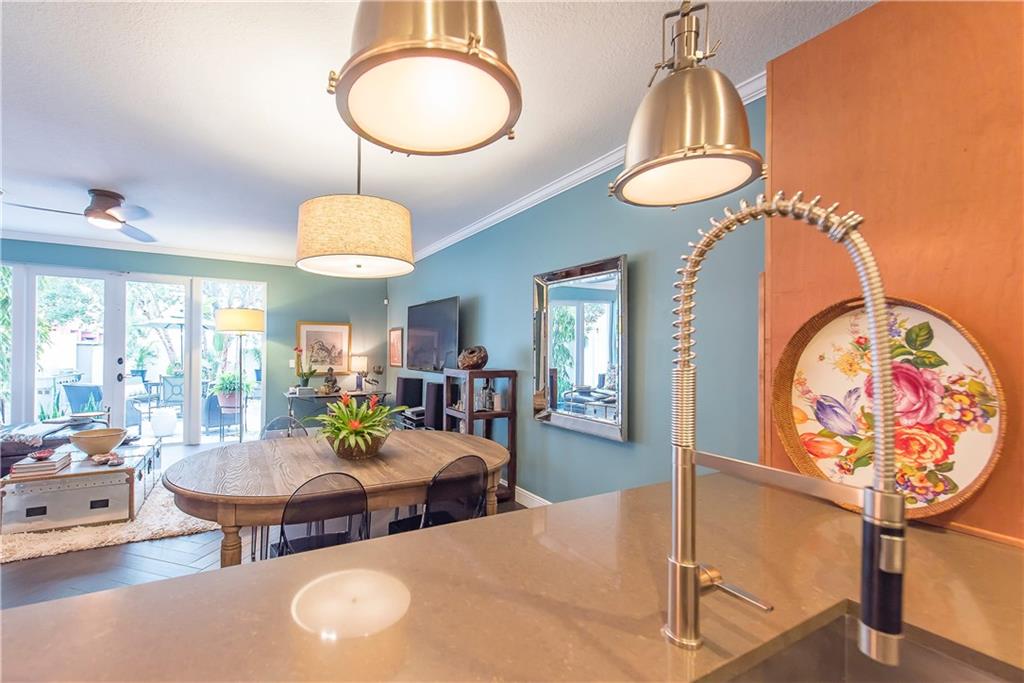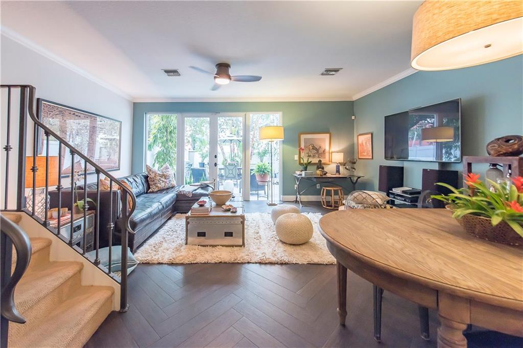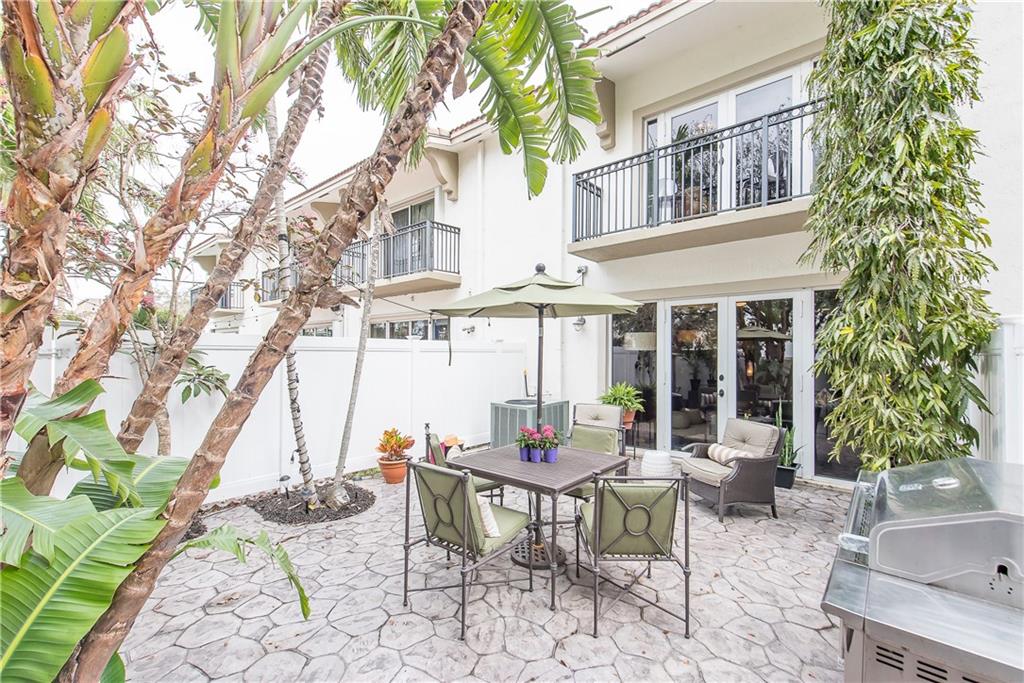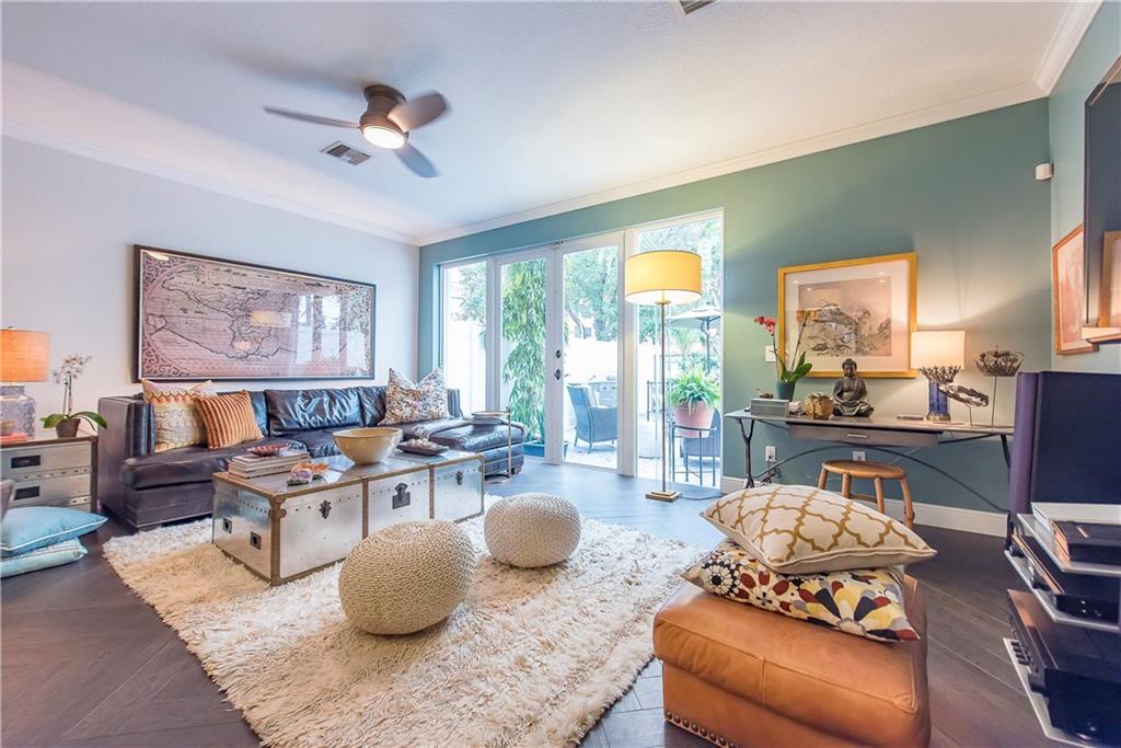 Intimate gated community steps from Las Olas Blvd 1 Garage & 1 Carport space plus community pool. Exquisite designer renovations featuring ceramic plank flooring laid in herringbone pattern; Carrera marble design in half-bath. Kitchen has hardwood; Caesar-stone surfaces and stainless appliances. Living area opens to spacious private patio perfect for entertaining. Custom stair rail leads to spacious master suite w/ balcony plus 2 guest BR's & bath ondo Assoc. Maintenance pays insurance and most utilities.