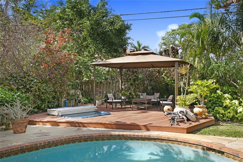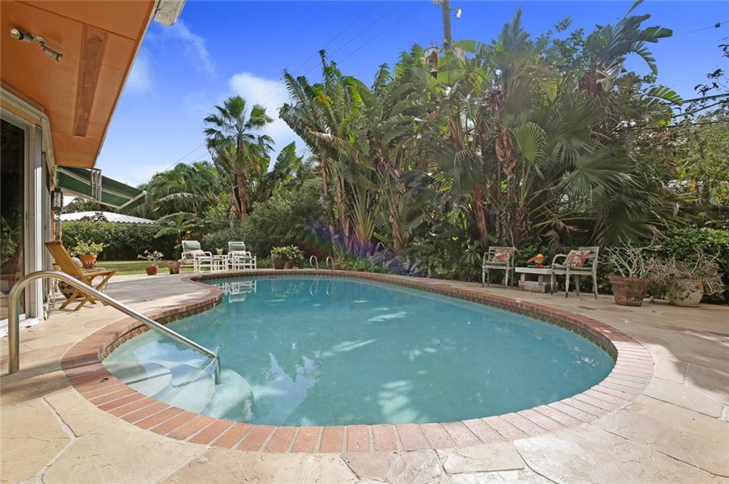 Charming home located in Coral Ridge on a desirable over-sized corner lot! Spanish style with bleached Mexican tile flooring, 2 bedrooms, den/family room and 2 full baths. Large living room with wood burning fireplace, separate dining area with 2 sets of French doors leading to a private, spacious backyard with sparkling pool. Tropical landscaping, large deck with spa and room to expand! Lovely tiled kitchen, separate laundry room, impact windows and one-car garage. Top rated Bayview School District.