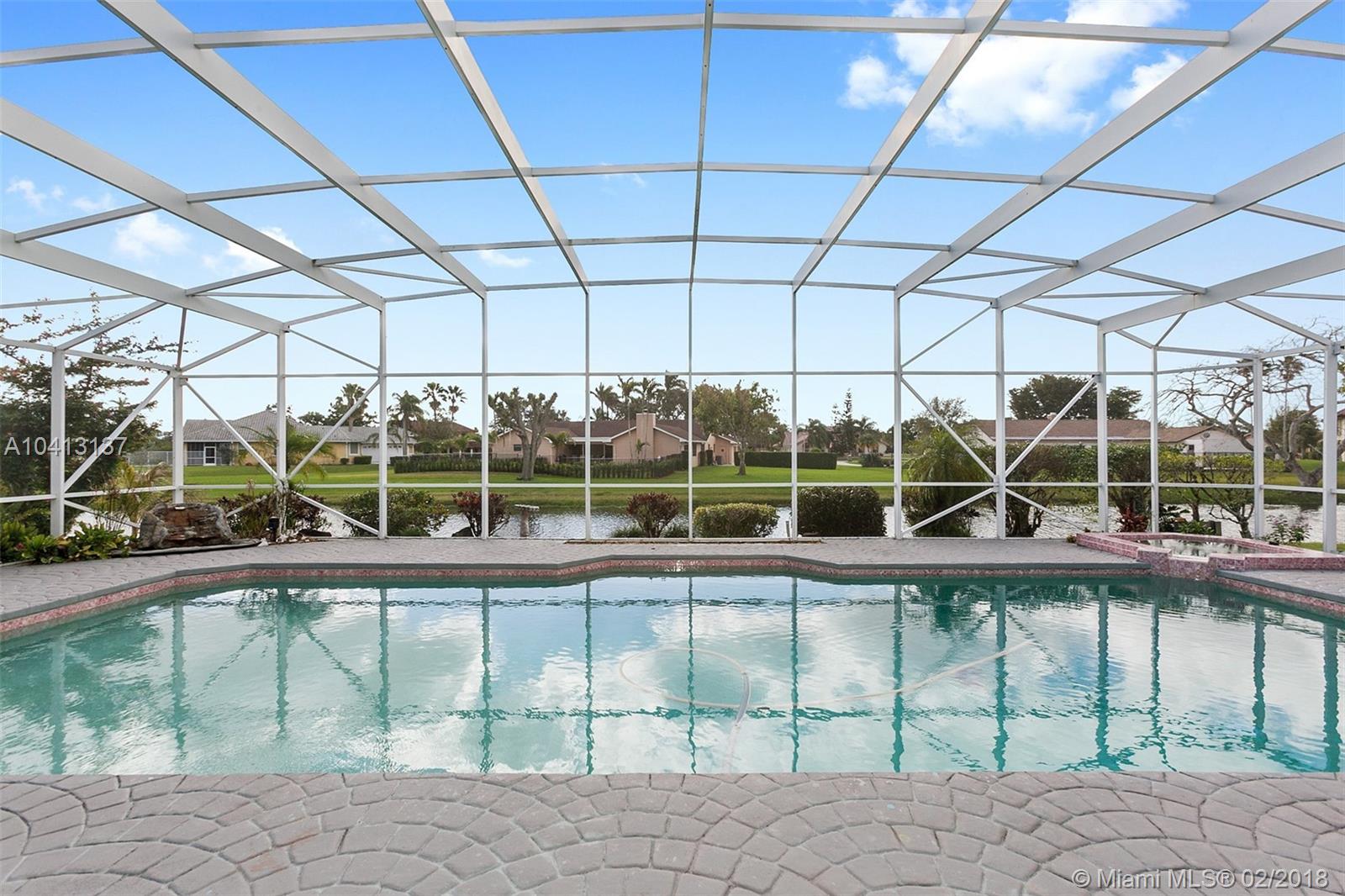 Wonderful custom one story home with serene water views is set on a quiet cul-de-sac builder's acre. The stunning screened 40x20 pool and spa are surrounded by a spacious 50x40 foot stamped concrete patio with outdoor grill for your outdoor enjoyment. This home emits warmth and comfort the minute you walk thru the front door. Interior boasts 19 ft peak ceiling offering lots of natural light, wood burning fireplace, kitchen with granite counter tops, 2 ovens, Sub-Zero refrigerator and cozy breakfast nook overlooking the pool and patio. Master suite includes large separate sitting area, two walk-in closets and master bath with spa like tub. 3 car garage is side entry and long driveway has lots of room for additional parking. Great value for what this home has to offer!