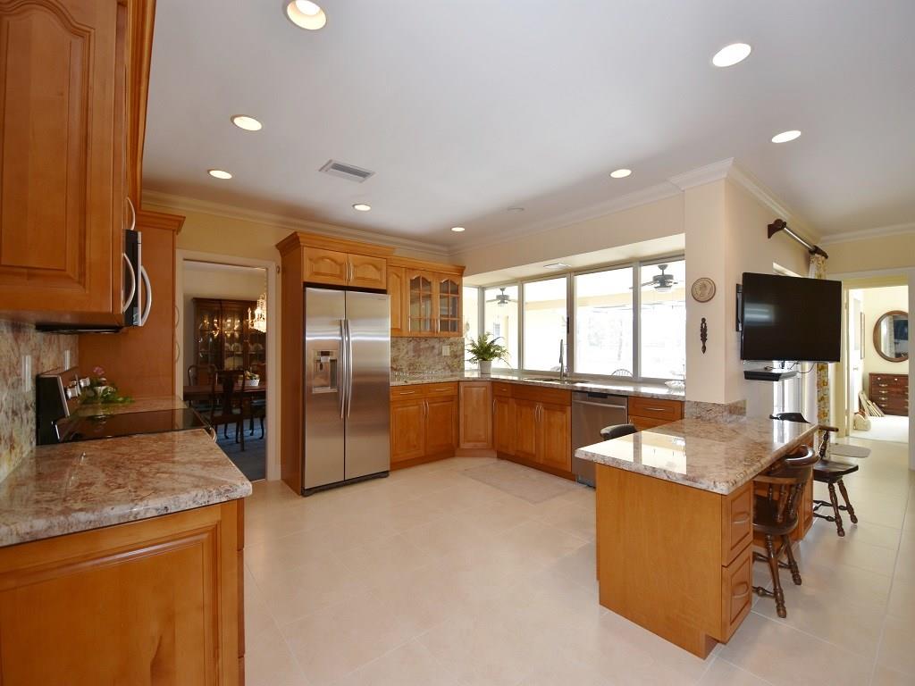 Beautiful golf course & water view. Large rooms, newer wood/granite/stainless kitchen open to huge family room with wet bar & built-ins, great for entertaining large groups. Lots of closets, big laundry room, large screened patio, 2 car garage. Walk to house of worship, 10 minutes to International Airport & Port Everglades, 5 minutes to shops & restaurants. Ready for your personal touches.