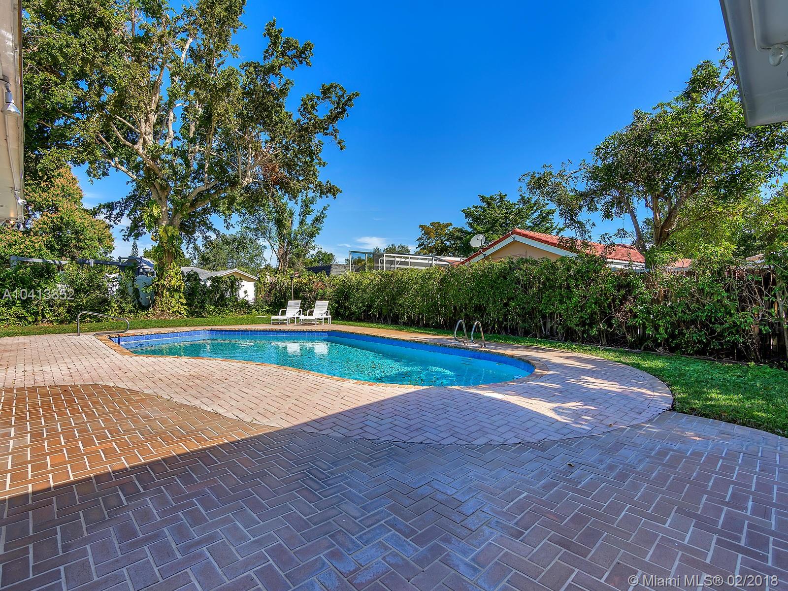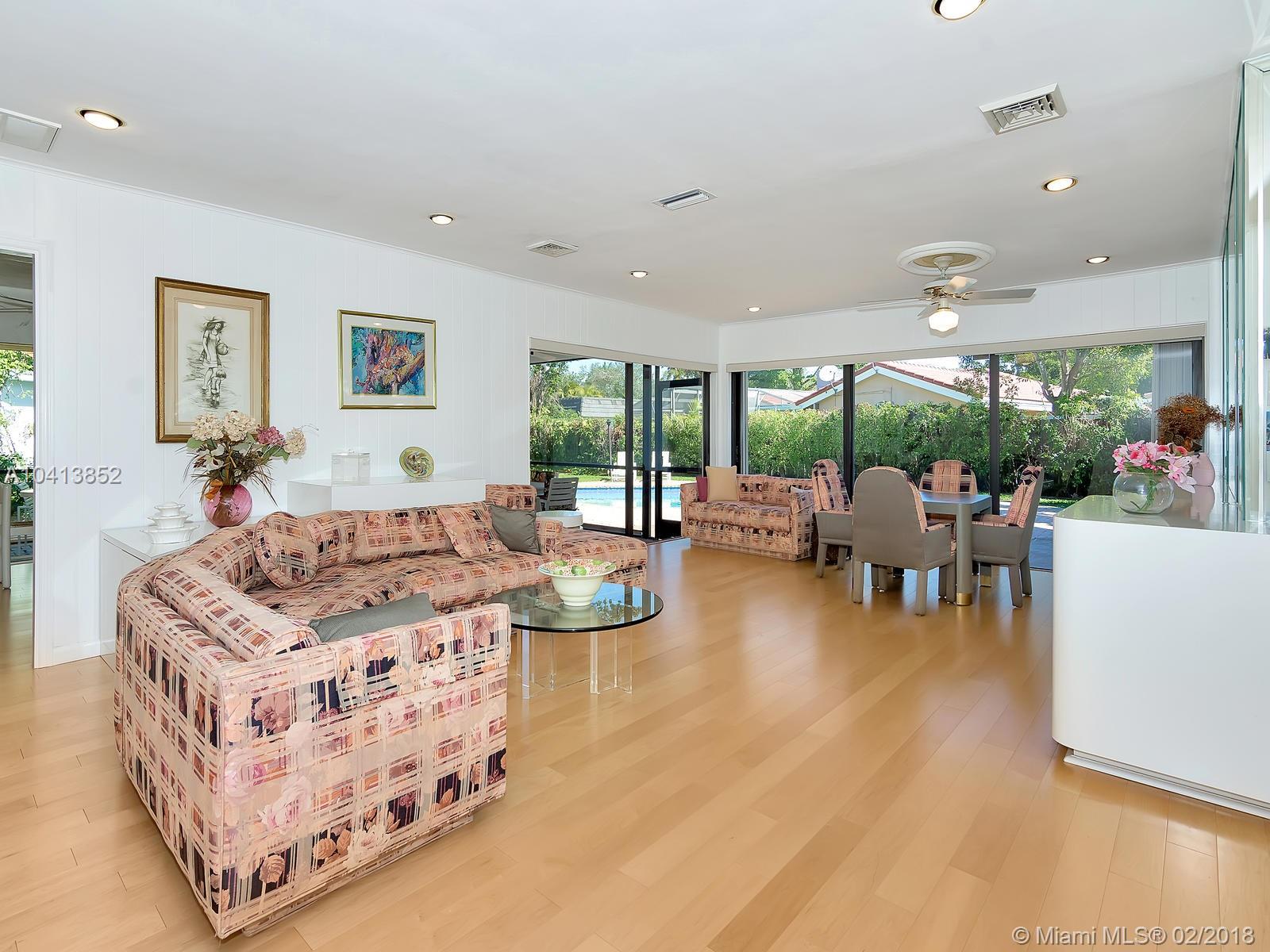 Elegant architectural arches greet you as you walk up the paved circular driveway and on through the pathway leading up to the front door. Enter into the foyer which opens into the formal living & dining rooms allowing options to customizing the layout of your new home. Enjoy upgrades such as all engineered wood floors, impact glass windows in front, new bathrooms and new roof with warranty. Other features include large walk in closet in master + second bonus closet, large bedrooms, HUGE family room, wrap around screened patio, over-sized pie shaped lot with very large pool. Convenient location near highways, airport, beaches, shopping, restaurants, nightlife & walking distance to houses of worship,