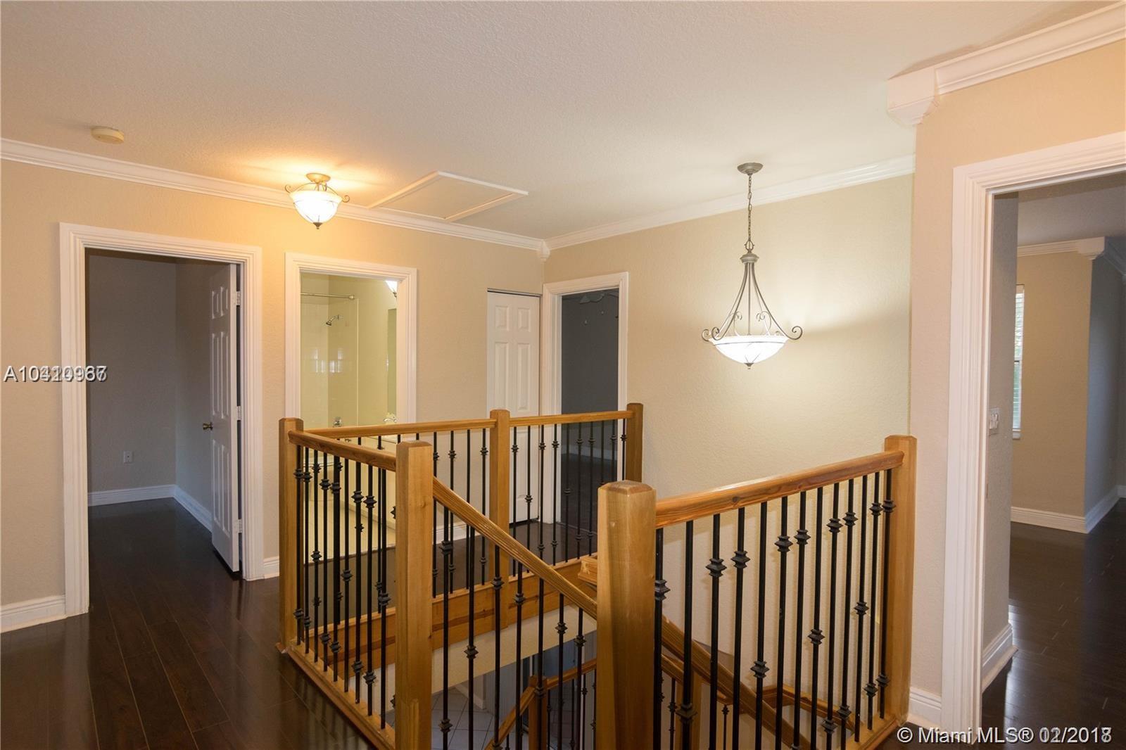 Gorgeous 5/3 home with beautiful and private pool/spa area, perfect for entertainment, fenced yard.Great floor plan, gourmet kitchen with 42'' wood cabinet, granite countertop, title floors downstairs, laminate floors upstairs and stairway.Large master w/sitting area, master bathroom with double sinks, separate shower/tub spacious and bright unit. Great community offers gym, pool, basketball and many others amenities.