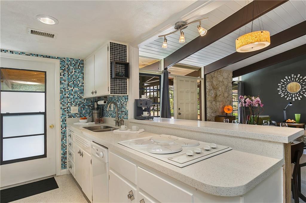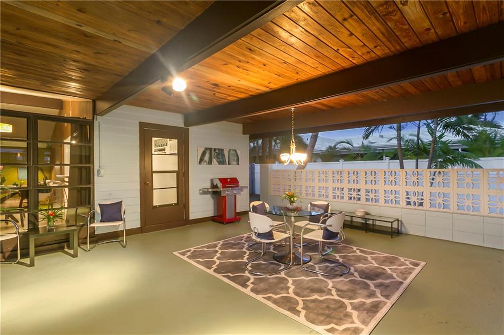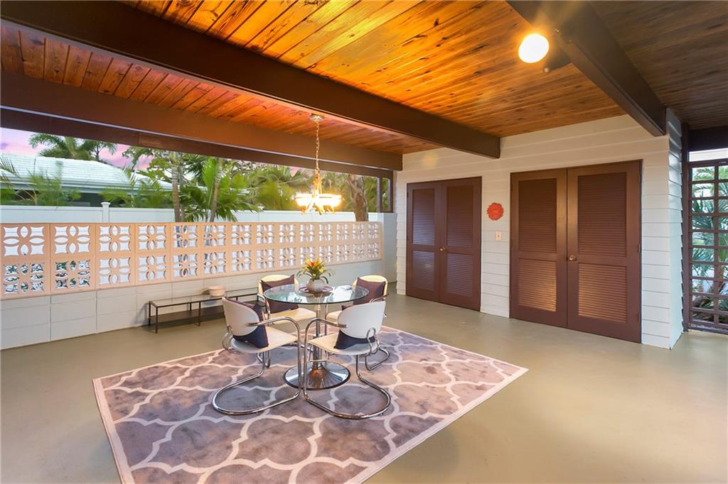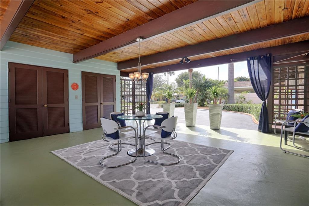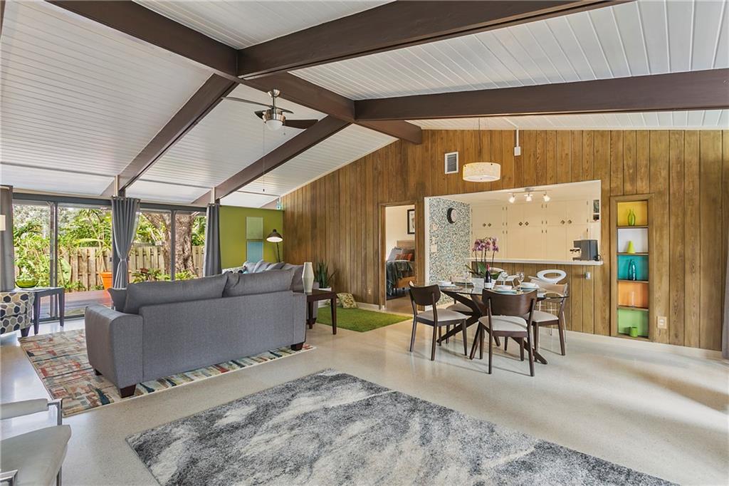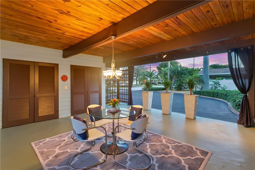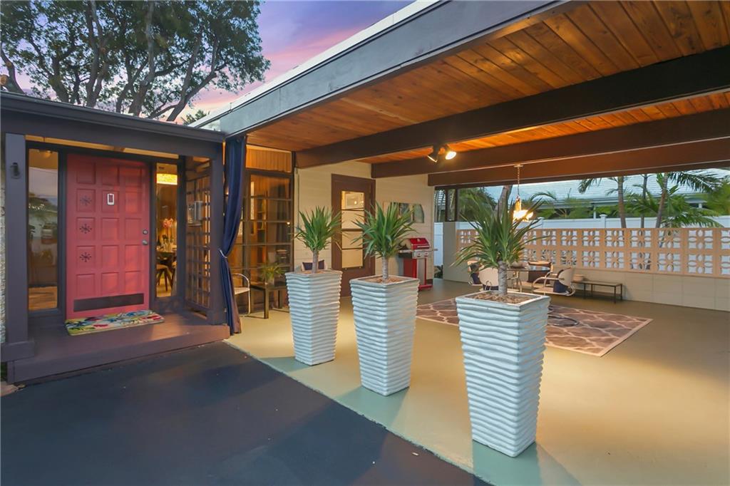 Outstanding mid century modern worthy of Architectural Digest located in exclusive, gated, and East of US 1 BAL HARBOUR. New roof, large outdoor private deck for entertaining, fully fenced backyard, open kitchen with new quartz countertops, polished terrazzo floors throughout, coral rock wall, wood beamed vaulted ceilings, floor to ceiling windows to allow great natural lighting. Large circular driveway with 2 car carport and additional storage. Seconds to Whole Foods, Trader Joes, Pottery Barn etc..