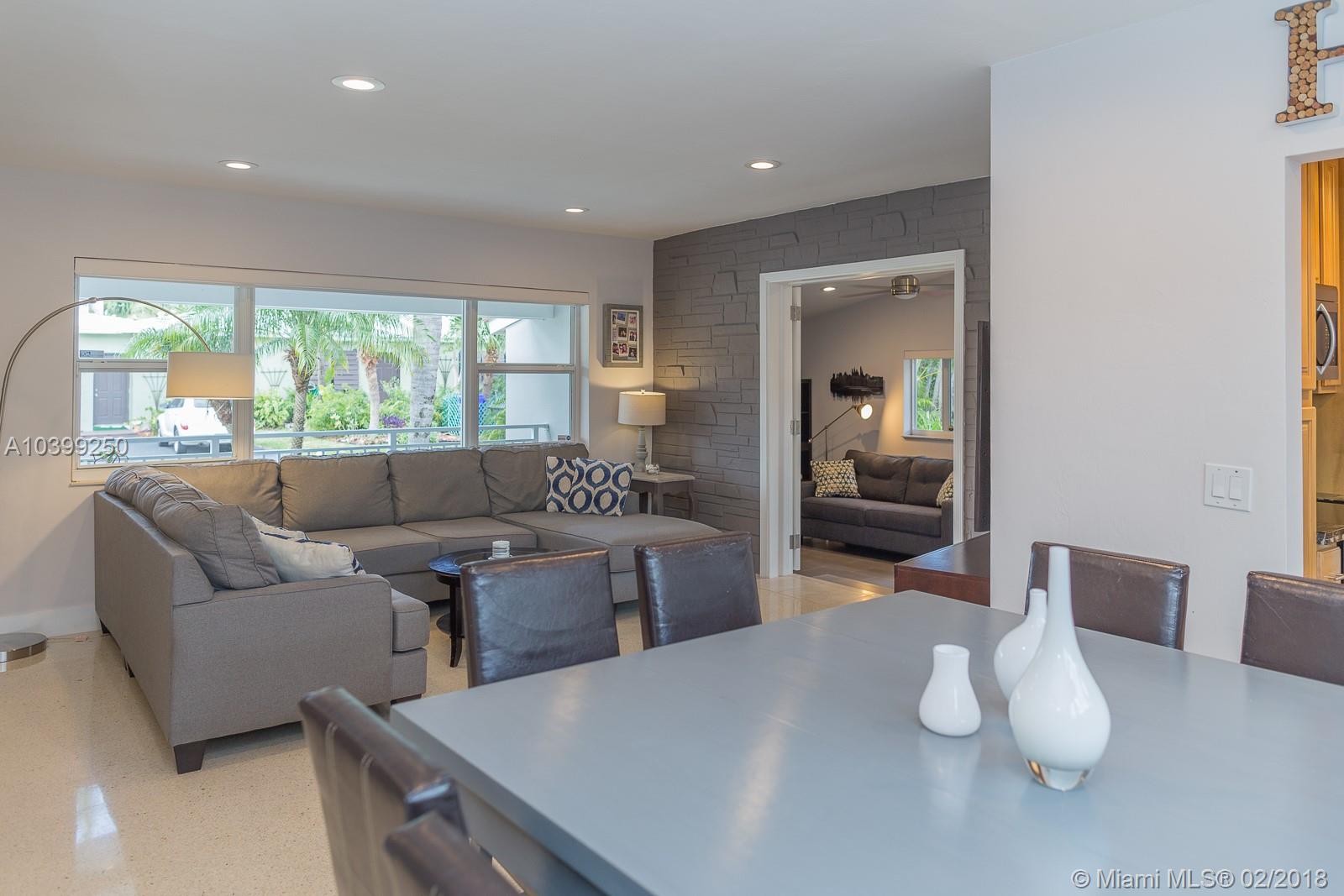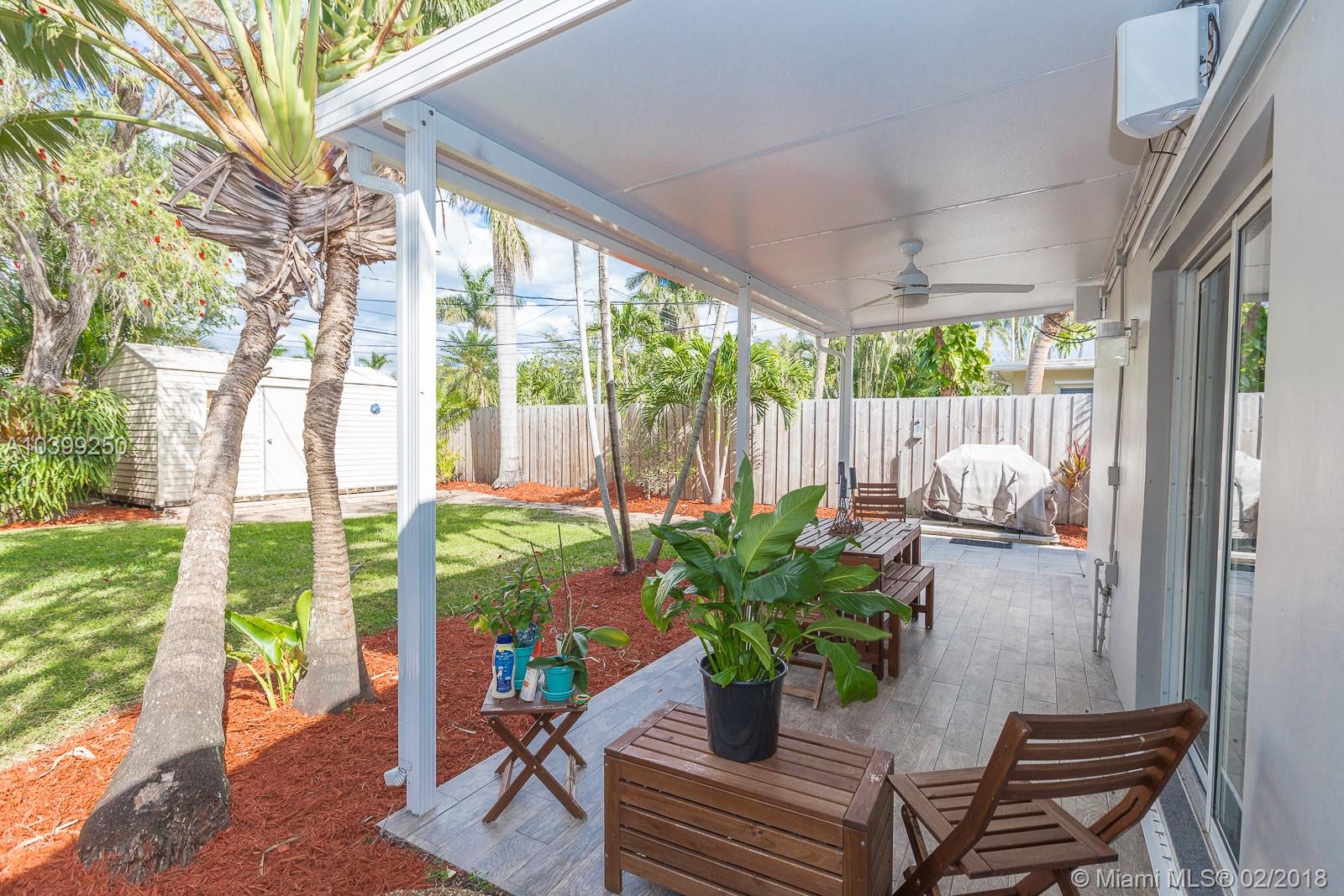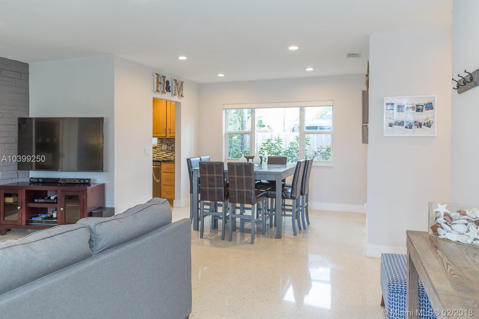 HAPPINESS IS WHERE YOU FIND IT… BEST KEPT SECRET IN EAST HOLLYWOOD. As you are welcomed into this home, the warmth shines through with abundant natural light in every room. It delivers the modern and trending looks buyers seek, with light gray painted walls, white trim, Alexandria base moulding, recessed lights throughout the home and RESTORED POLISHED TERRAZZO FLOORS. Magazine picture kitchen recently updated with GRANITE COUNTERS, WOOD CABINETS, glass backsplash and HIGH-END STAINLESS STEEL APPLIANCES. In addition, storm ready with HIGH IMPACT WINDOWS, 2016 TILE ROOF, 2017 TANKLESS WATER HEATER, office/den (possible 3rd bedroom), circular driveway, open porch, COVERED PATIO, tool shed with power and shelves, NEW LANDSCAPING, privacy fence and LARGE BACKYARD.A HOME YOU’LL BE PROUD TO OWN!