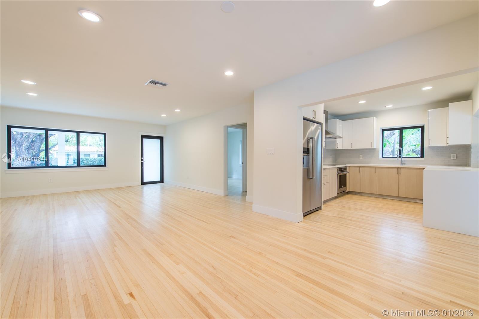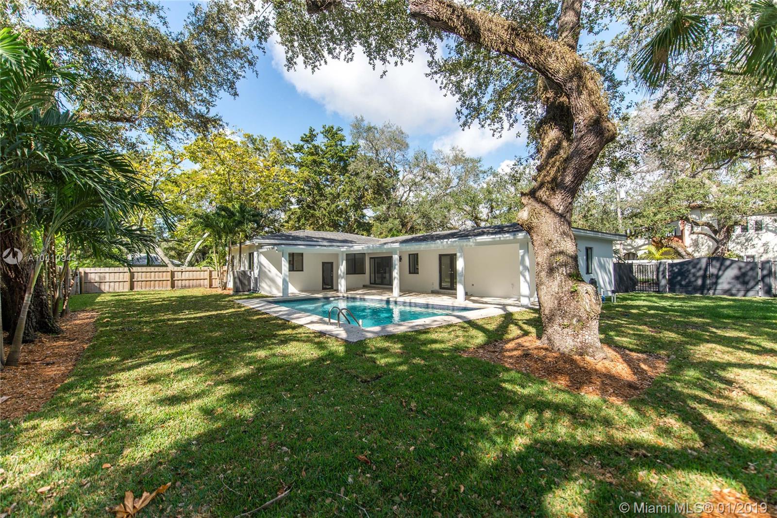 Gorgeously remodeled 4 BR/3BA home on a large 12,600 SF corner lot in highly desirable Coconut Grove. Completely renovated in 2017, this spectacular 2,488 Sq.Ft. home features a spacious open floor plan w/ large impact windows & doors, brand new kitchen, hardwood floors, oversized master bedroom w/ walk-in closets & more. Light filled family room leads out to the homes expansive & private tropical backyard /pool area. Your own private paradise!